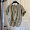 Camisa de manga corta con lazo y tirantes divididos estilo francés estilo coreano holgado informal de Design Sense Niche para mujer