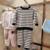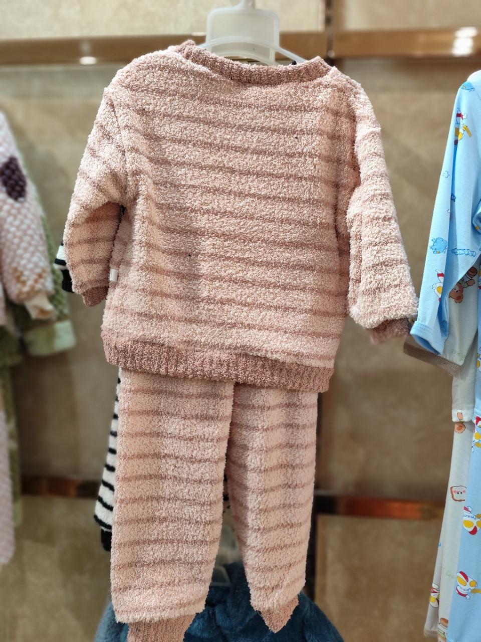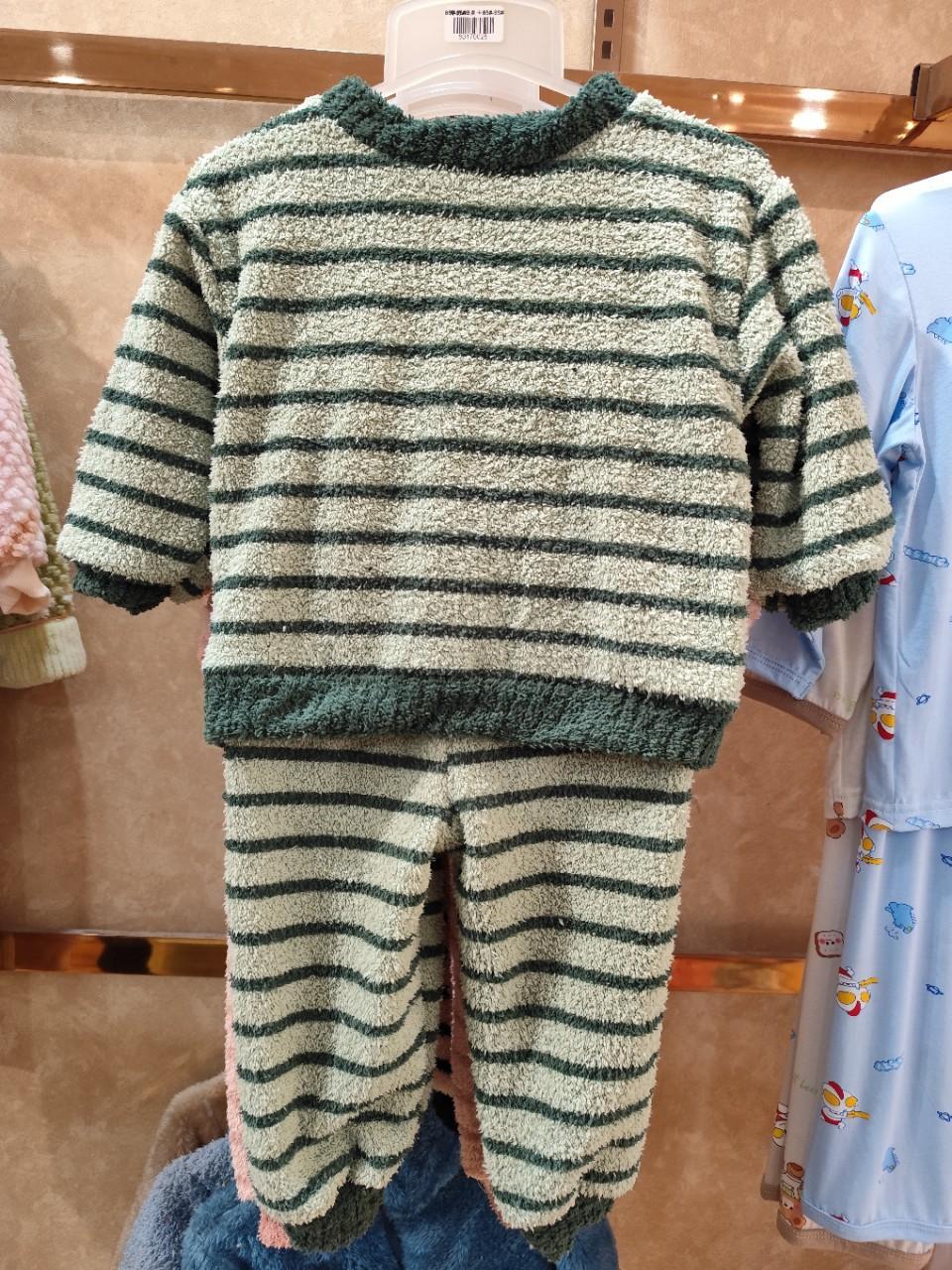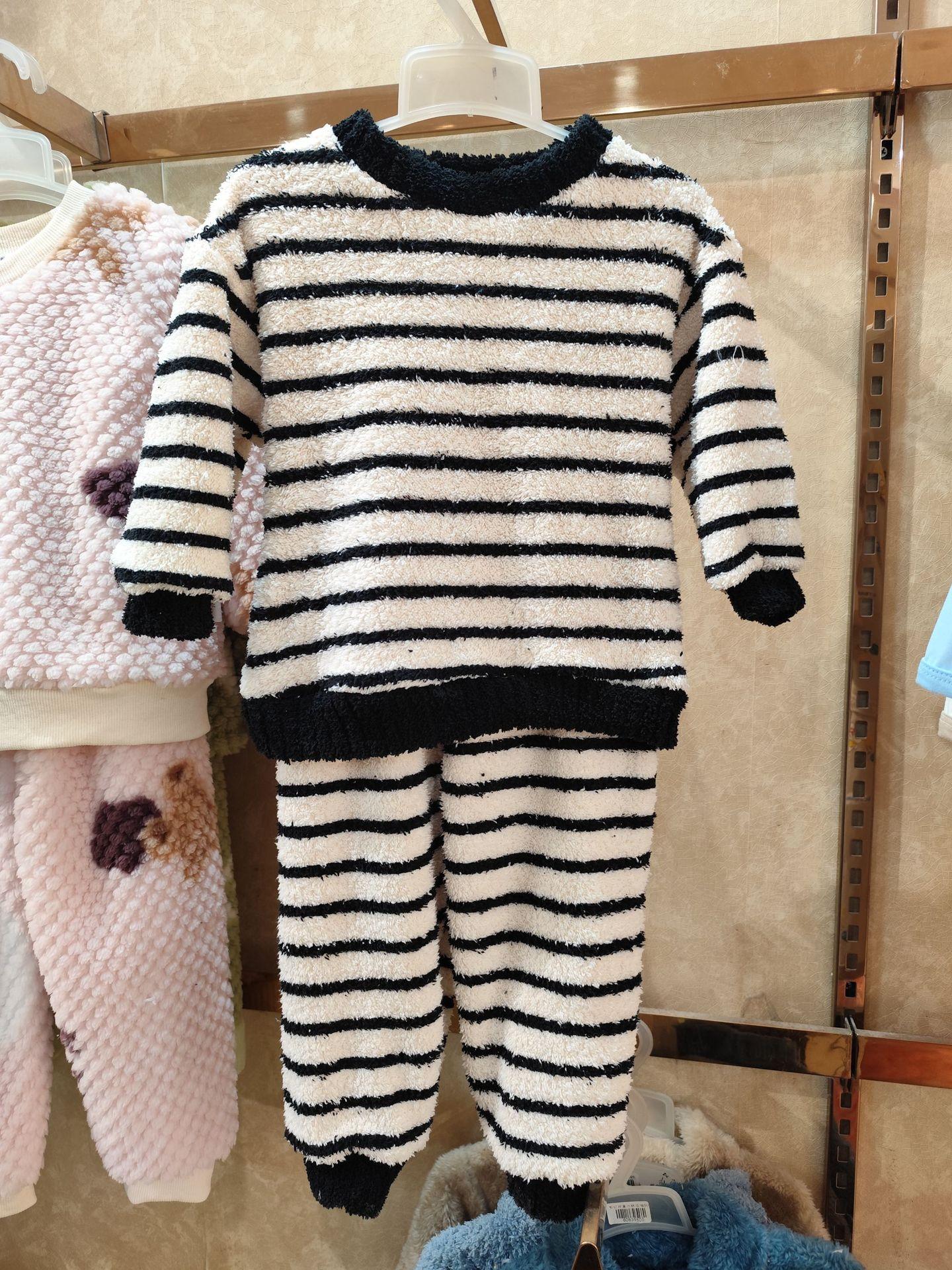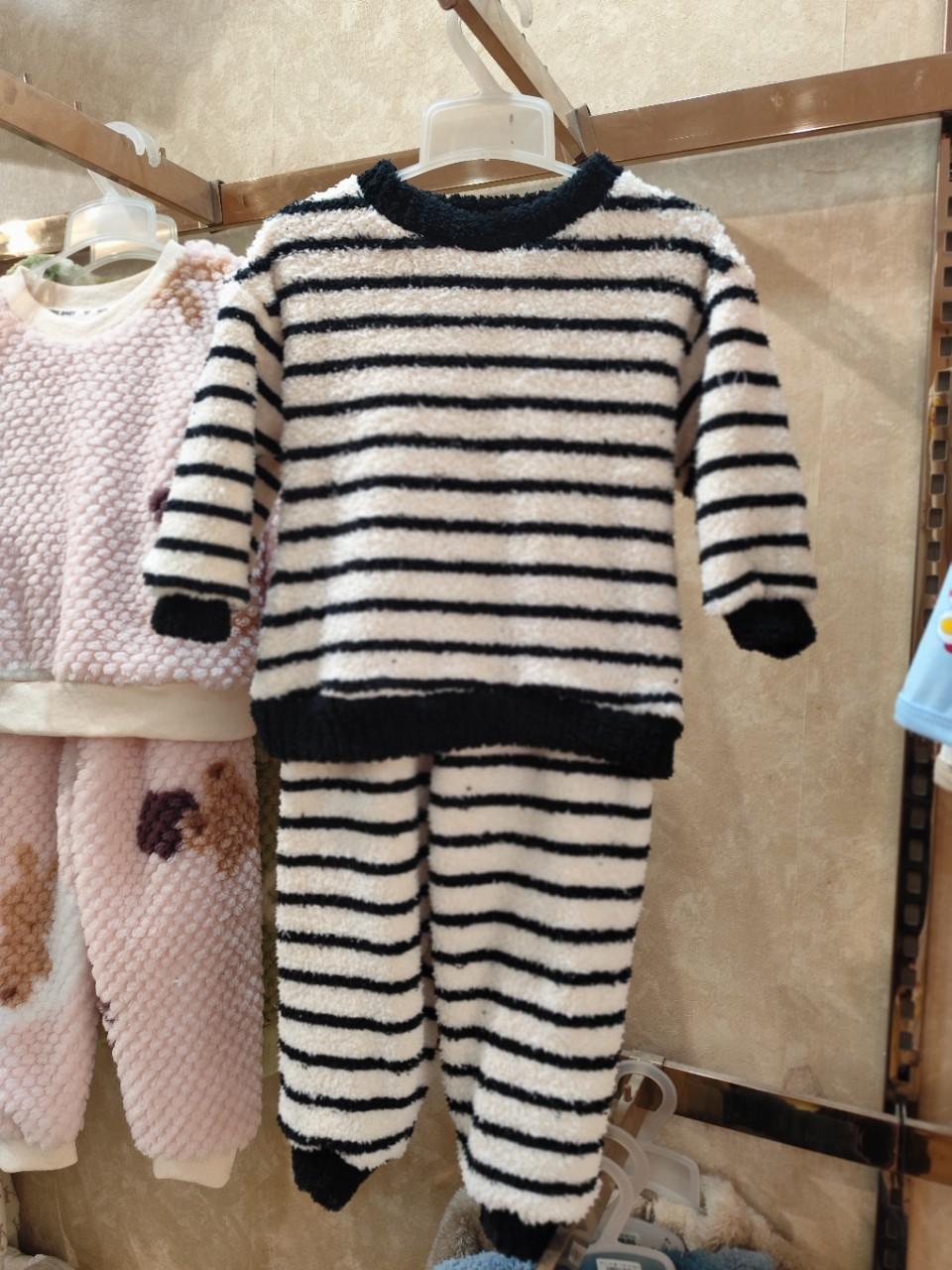 Ropa de Casa para Niños Invierno Engrosado Estilo Coreano Nuevo Traje de Pijama de Terciopelo de un Lado Juego de Dos Piezas para Niños Medianos y Grandes
