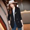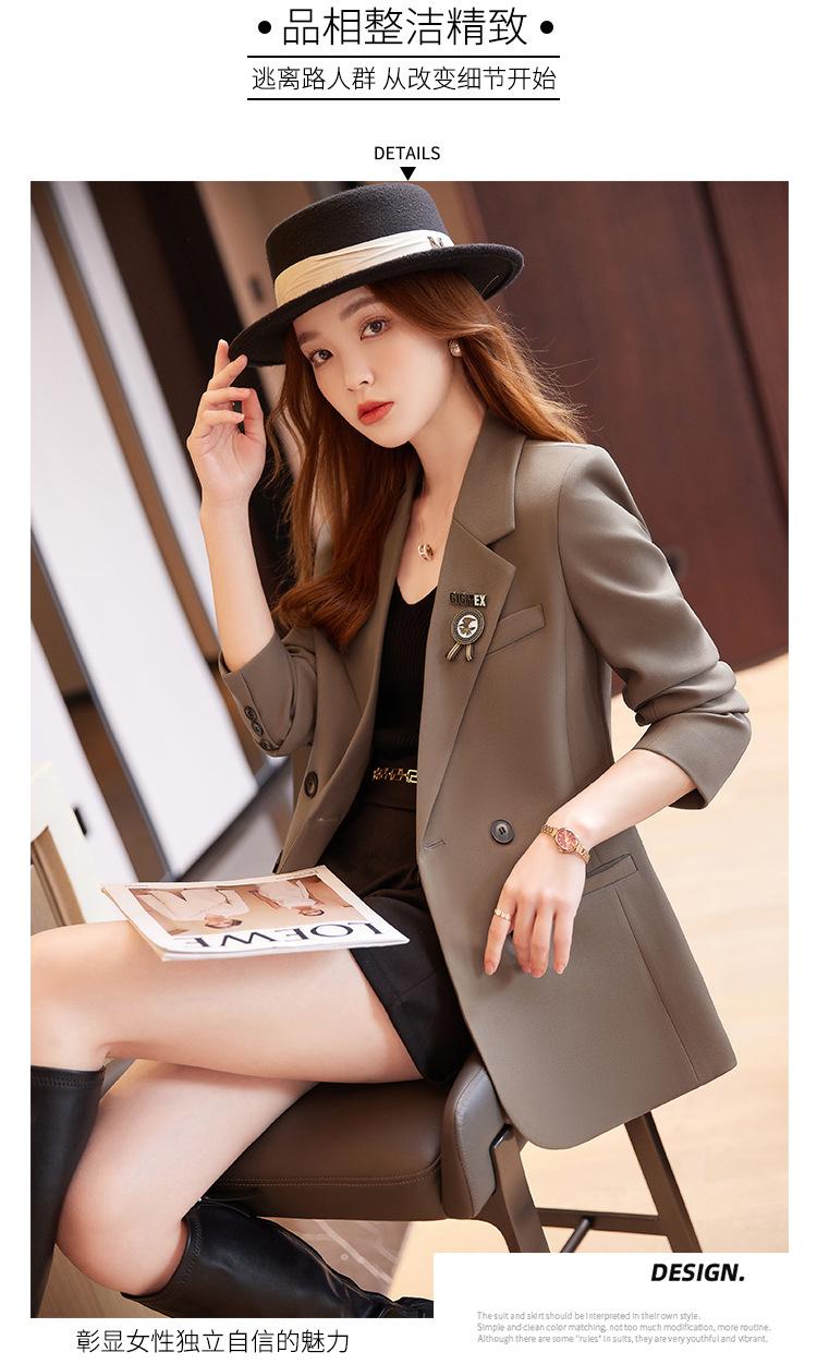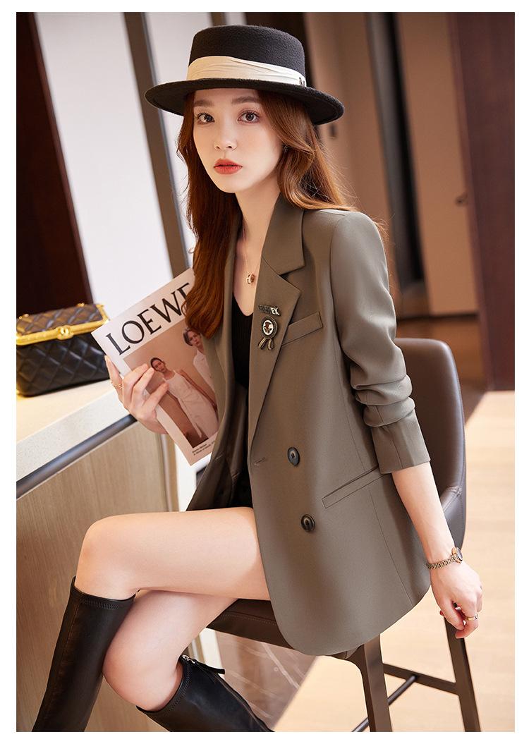 Chaqueta de Traje Color Curry para Mujer Otoño Manga Larga Moda Elegante Pequeño Casual Otoño e Invierno Sensación de Alta Gama Traje de Calle Frito