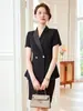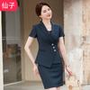 Vestido Profesional de Verano de Alta Gama de Dos Piezas Falsas para Mujer Ventas Recepción Esteticista Ropa de Trabajo Falda Ropa de Trabajo para Tienda de Joyería