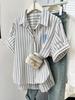 Camisa de Manga Corta Bordada a Rayas Azules para Mujer 2025 Nueva Temporada de Verano Camisa Top Holgada con Hombro Derecho Descubierto