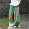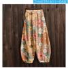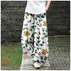 2024 Nuevo Verano y Otoño Transfronterizo Pantalones de Pierna Ancha con Elemento Floral y Cintura Elástica para Casa Estilo Europeo y Americano