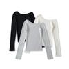 Algodón Puro Estilo Hong Kong Camiseta Básica de Manga Larga con Mangas Raglán con Bloques de Color Blanco y Negro Empalmada Primavera, Otoño e Invierno Ins Suelta