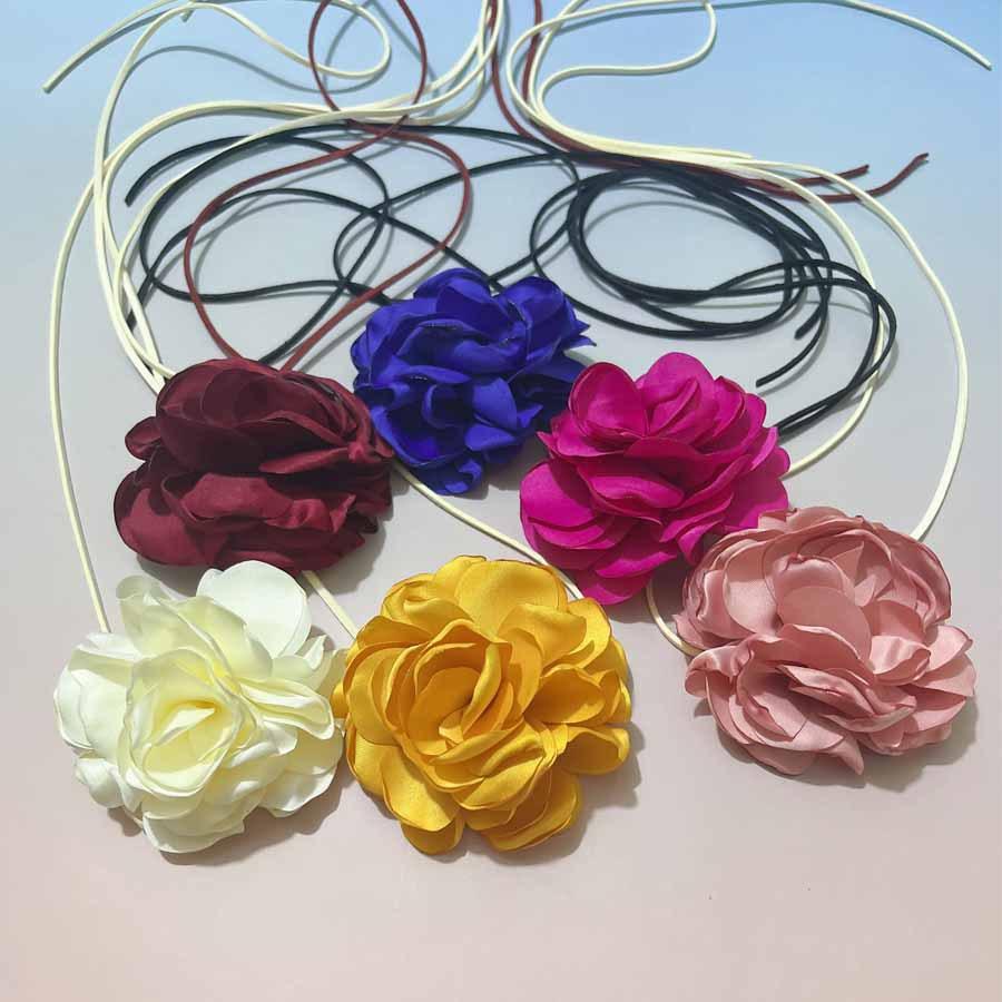 Gargantilla de Flores Multicolor Gargantilla de Flor Rosa Collar de Flor para el Cuello Correa para el Cuello de Flor Cadena para la Clavícula de Camelia Collarín para el Cuello de Mujer