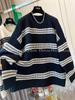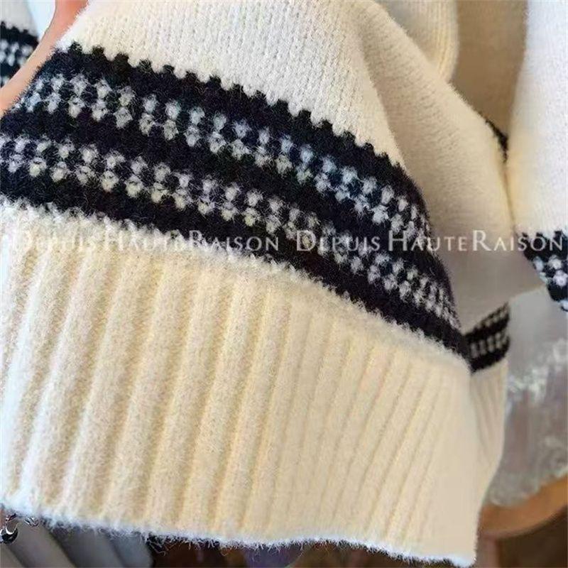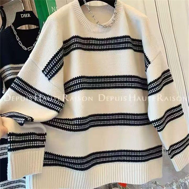 Suéter de Cachemira a Rayas de Moda Nueva Transfronteriza 2025 Suéter Pulóver de Cuello Redondo Top