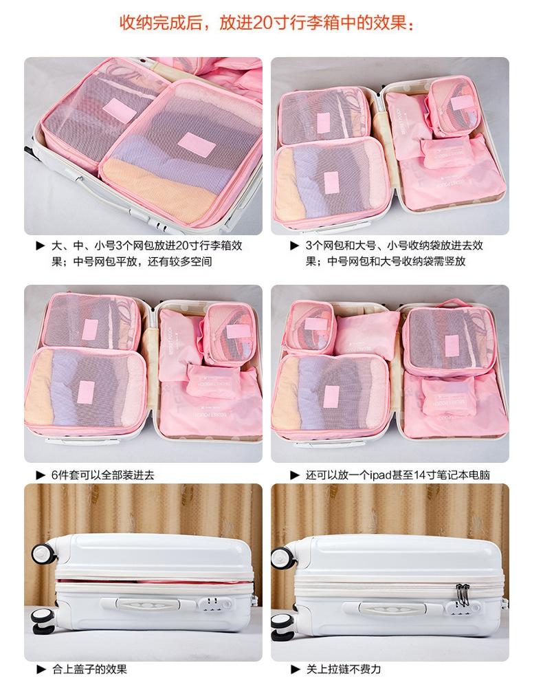 Nuestro juego de almacenamiento de viaje de seis piezas está hecho de tela gruesa de alta calidad. El diseño de doble borde interior y exterior lo hace sin costuras, lo que evita que la línea se desprenda, prolongando su vida útil y haciéndolo más hermoso.