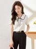 Top de Verano para Mujer Cuello de Muñeca Manga Corta Estilo Coreano Diseño con Sentido de Reducción de Edad Nicho Estilo Occidental Camisa Elegante Camisa OL Color en Contraste