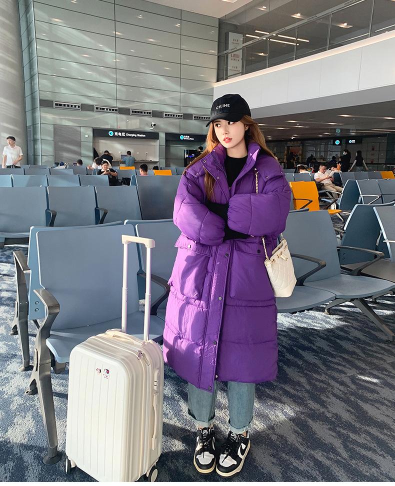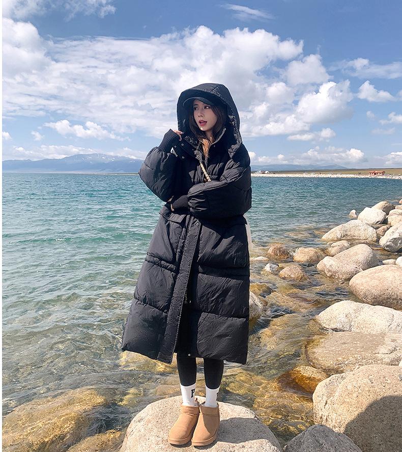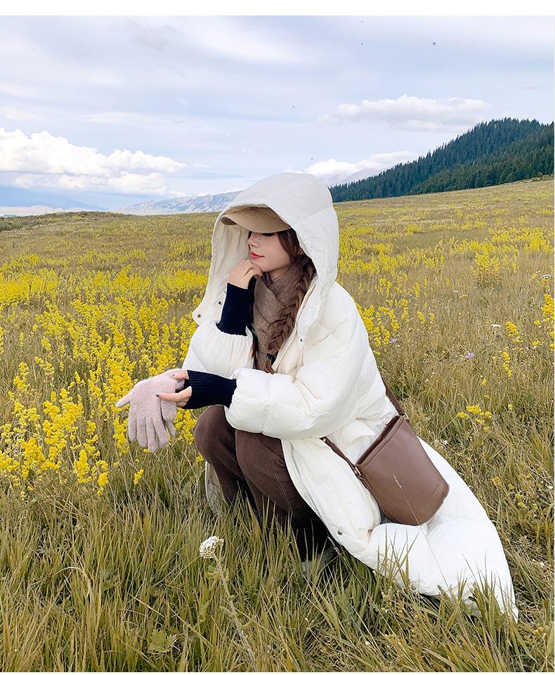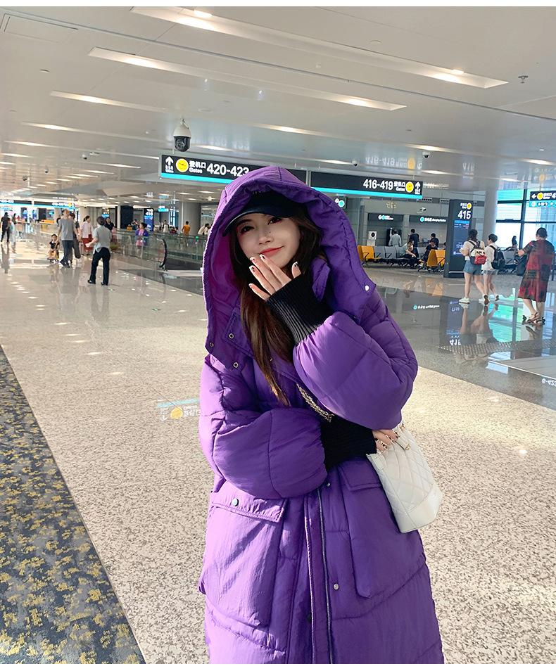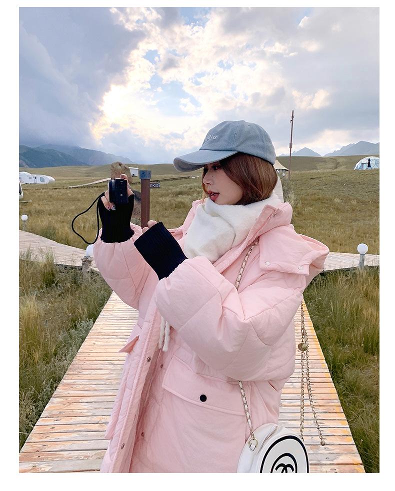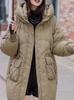 Abrigo nuevo de algodón acolchado de plumón para mujer con capucha, largo medio, estilo coreano, holgado, para todo, cálido, adelgazante, grueso, a la moda