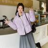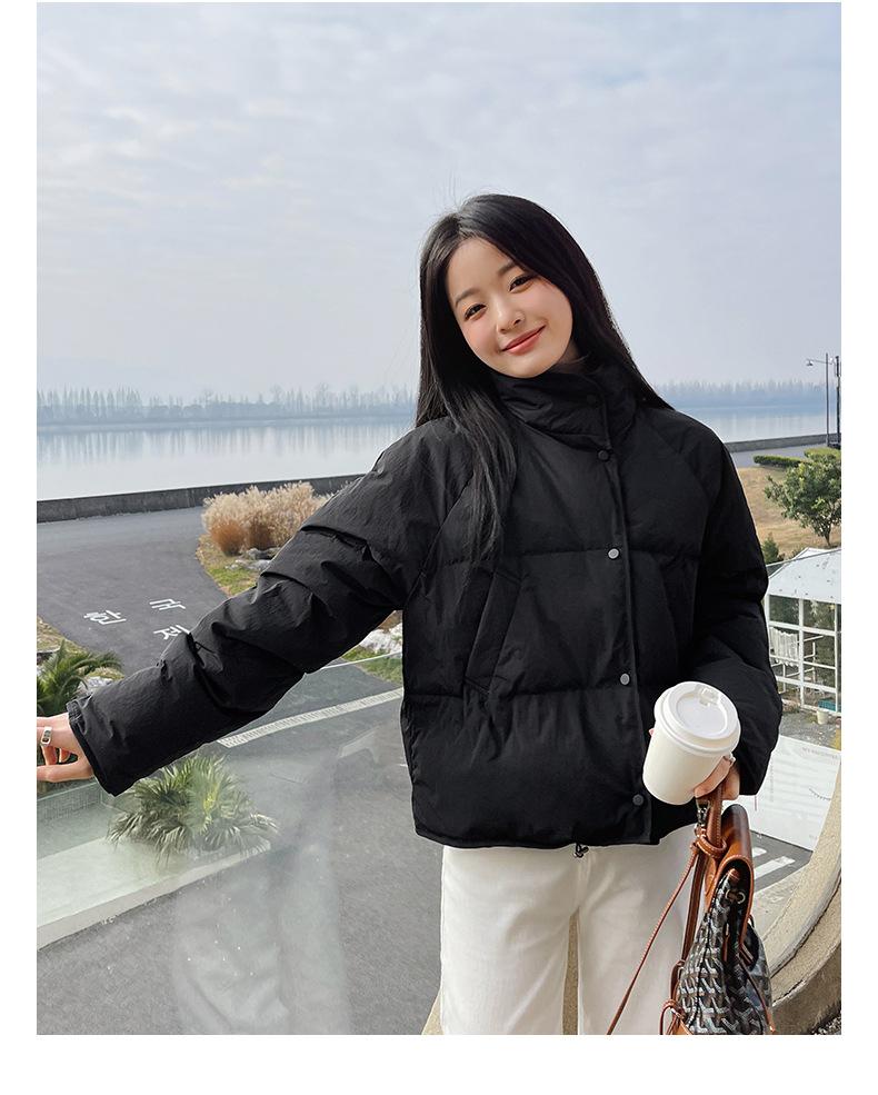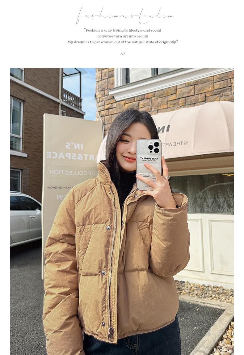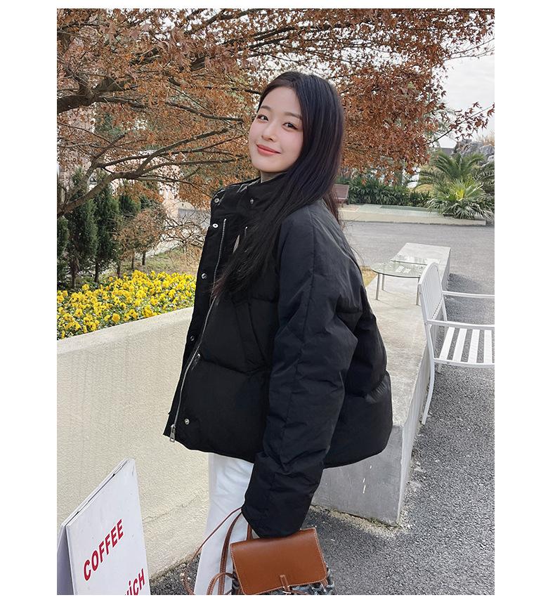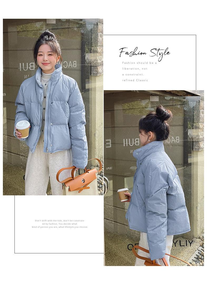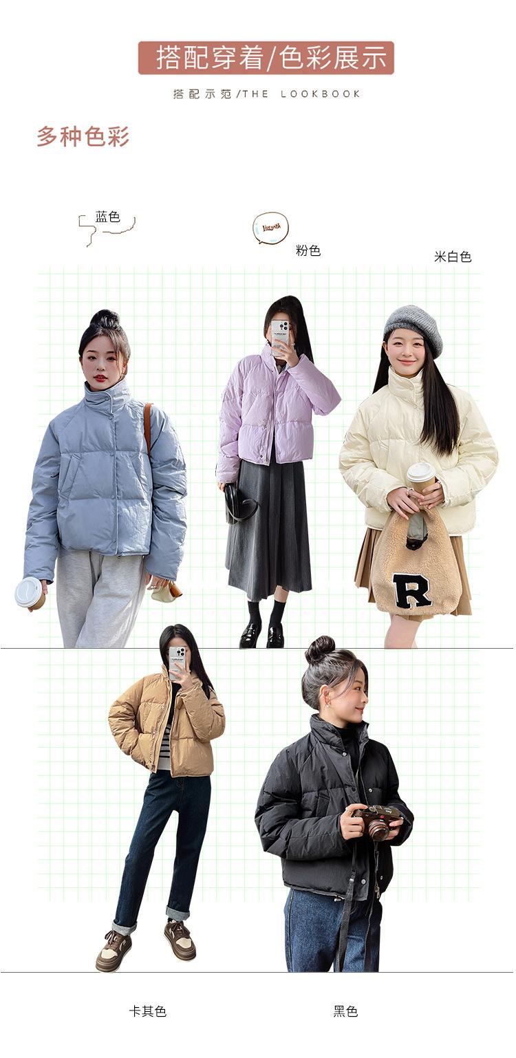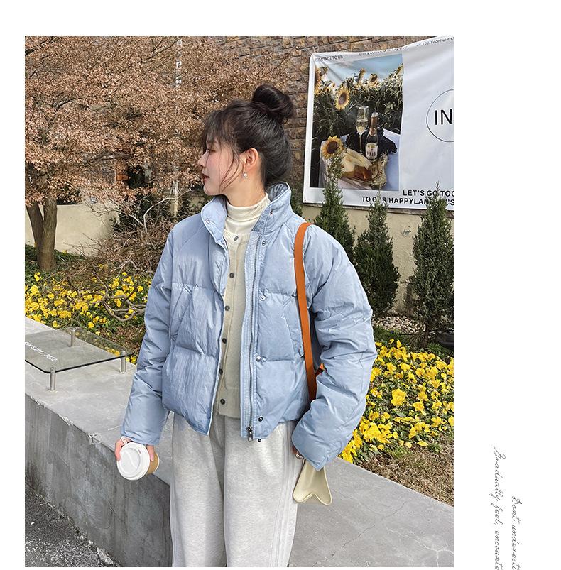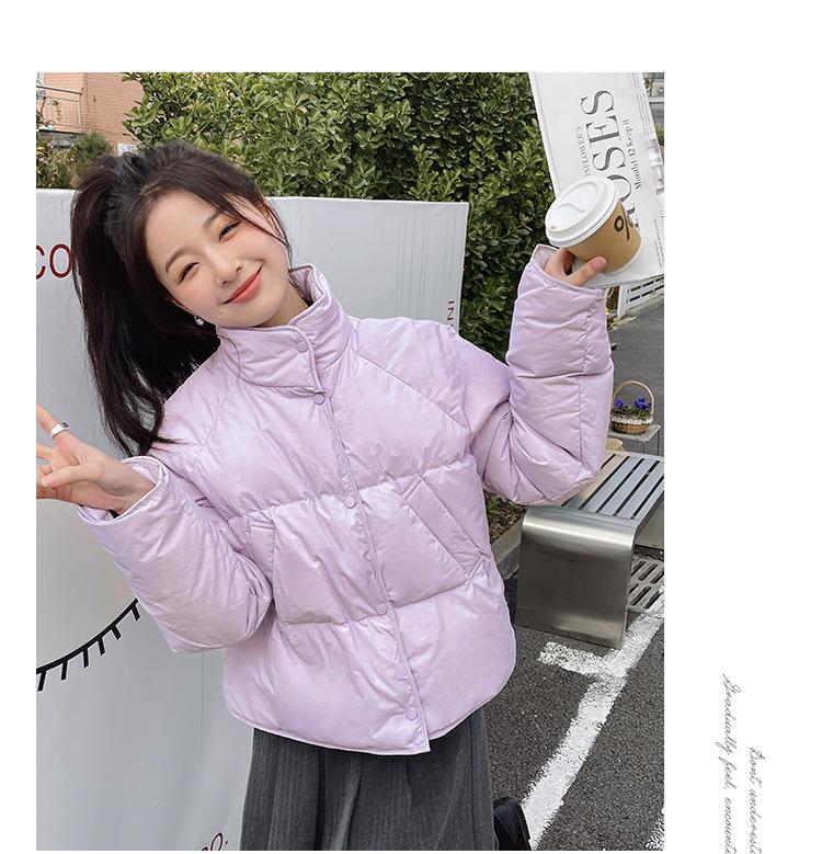 Chaqueta Coreana Acolchada de Algodón con Plumón para Mujer Corta 2024 Nuevo Estilo Cuello Vertical Gruesa Moderna Traje de Pan Pequeño Abrigo de Invierno