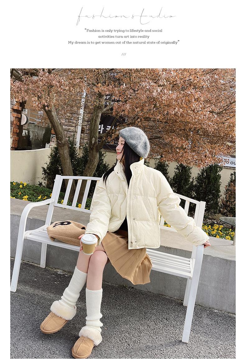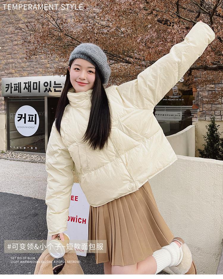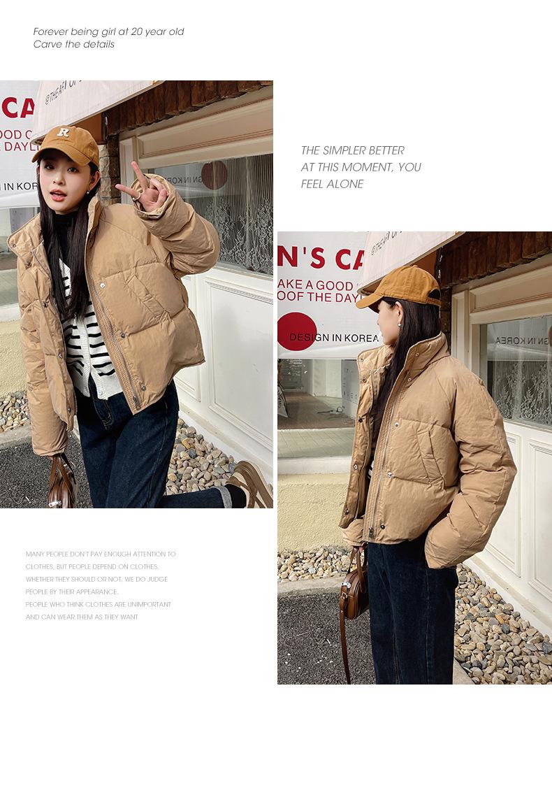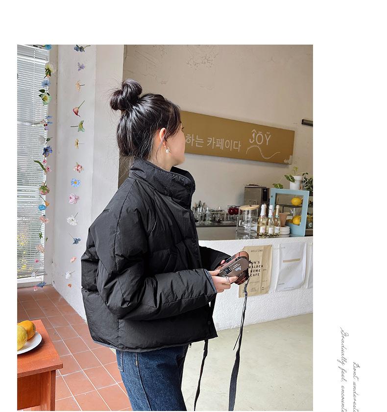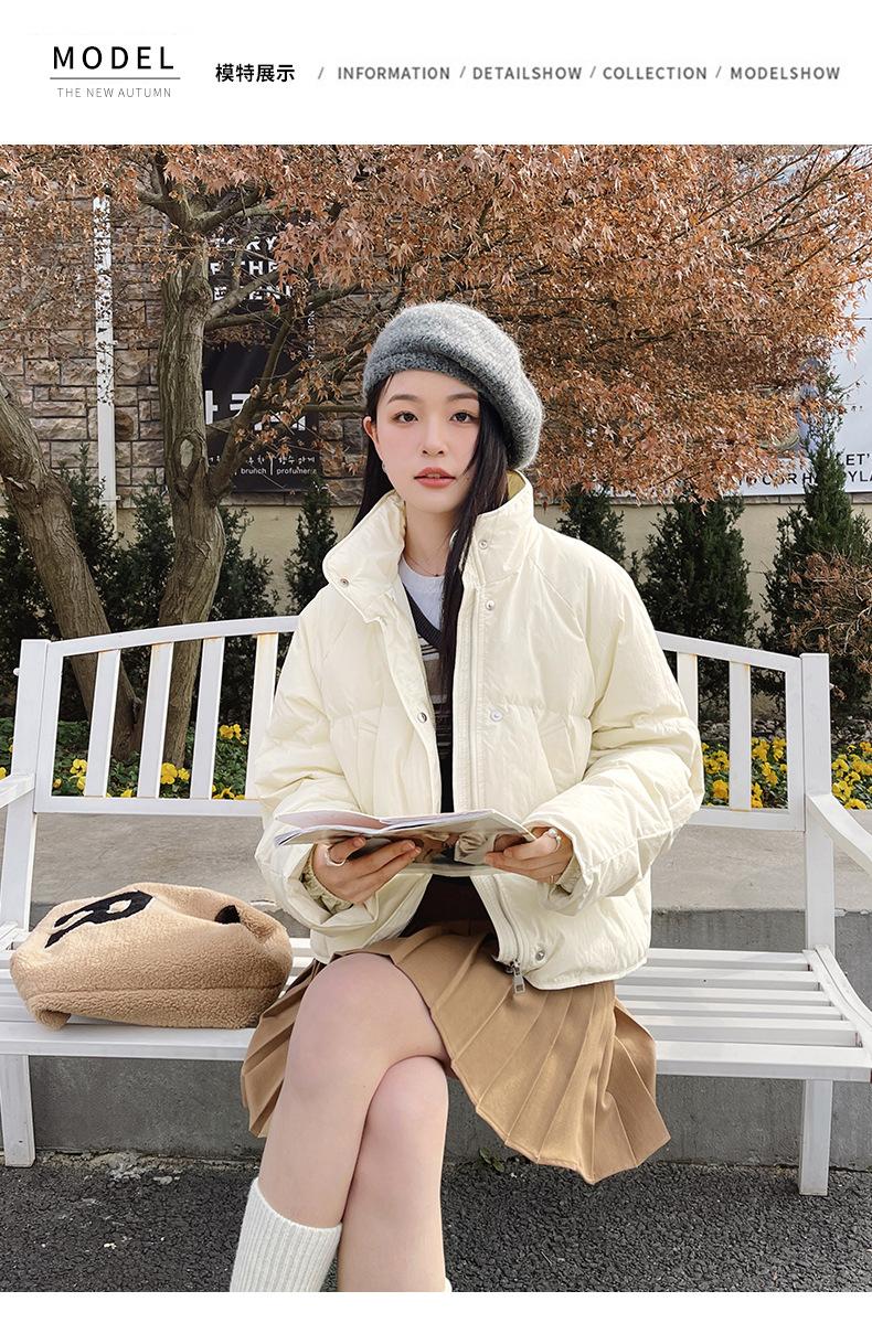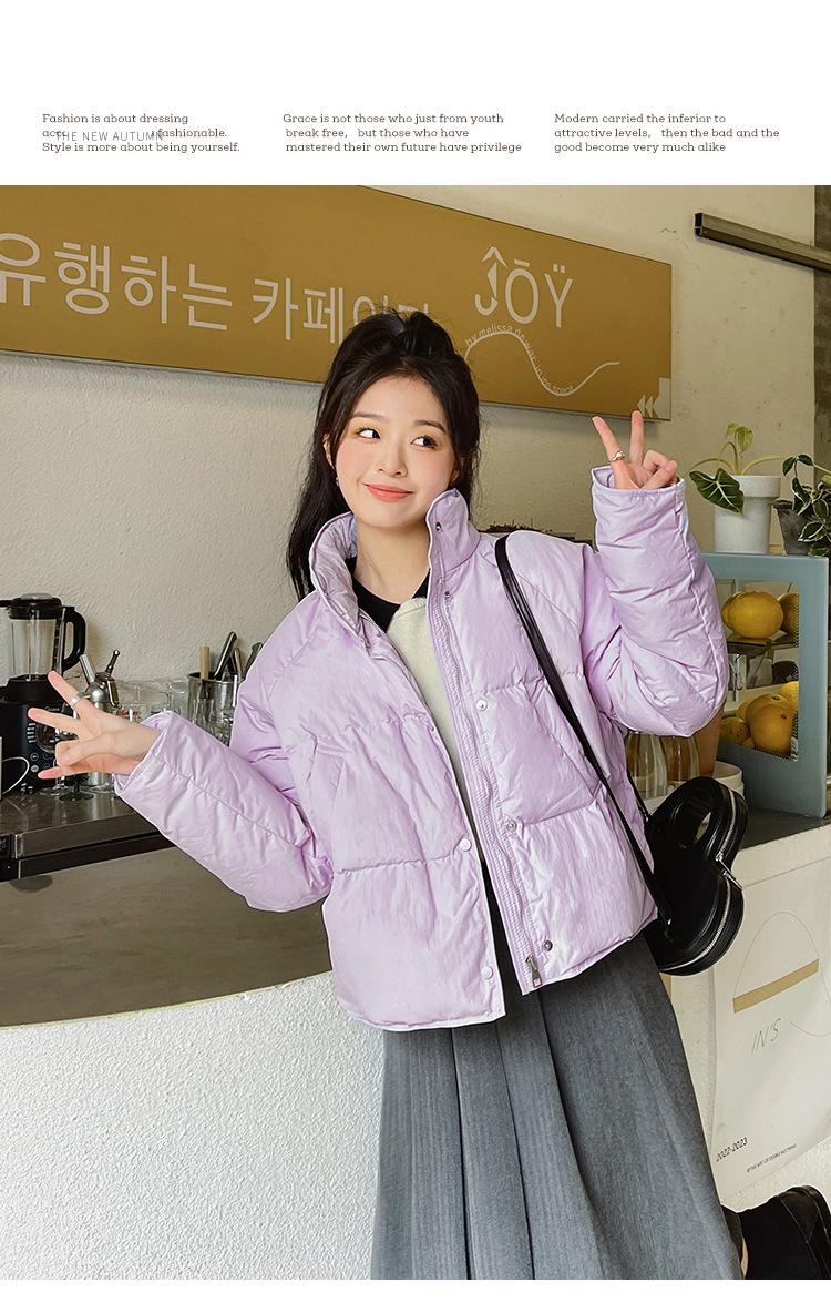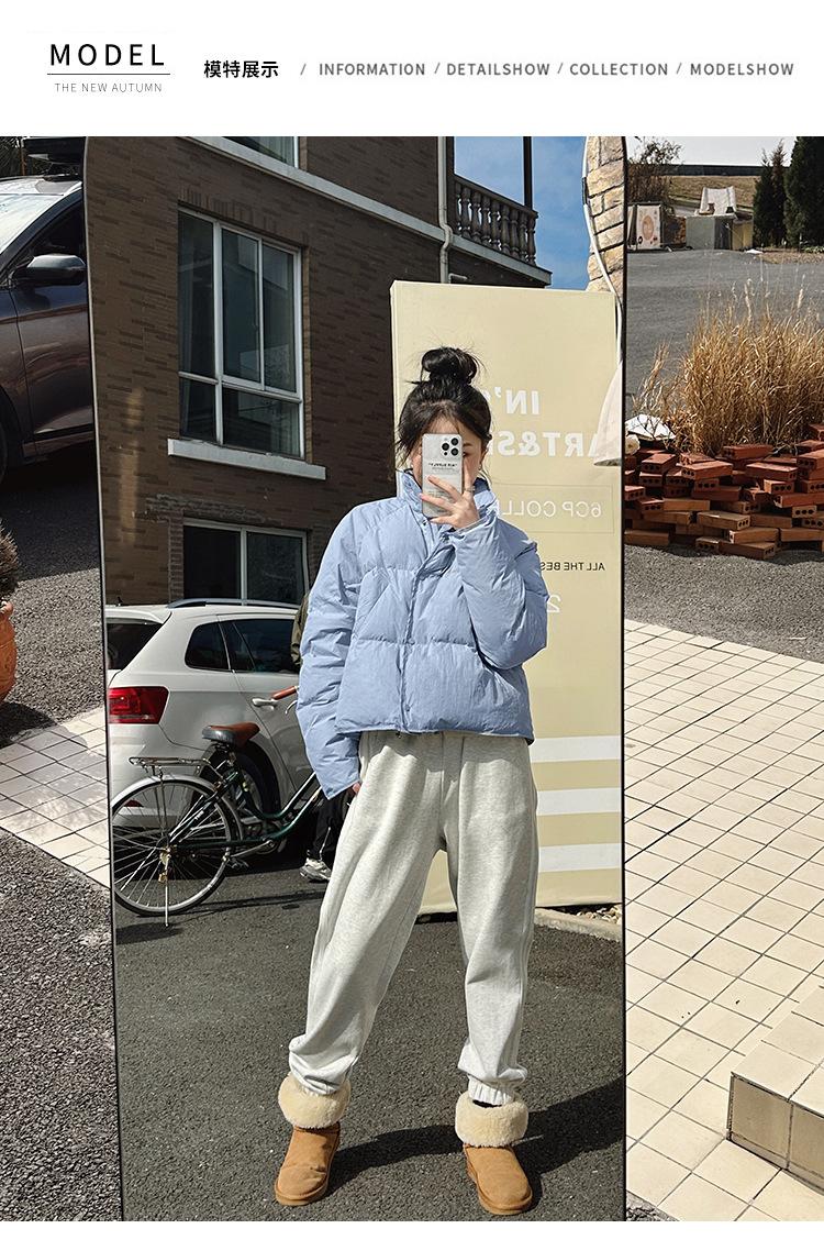 Chaqueta Coreana Acolchada de Algodón con Plumón para Mujer Corta 2024 Nuevo Estilo Cuello Vertical Gruesa Moderna Traje de Pan Pequeño Abrigo de Invierno