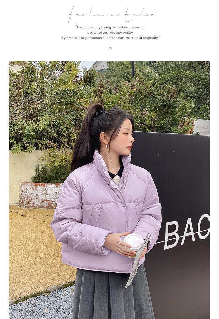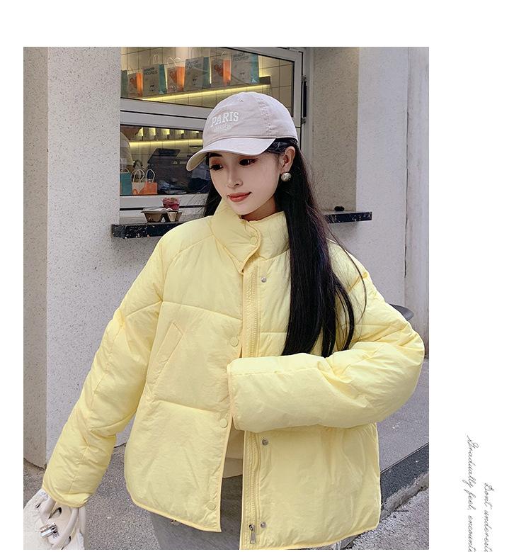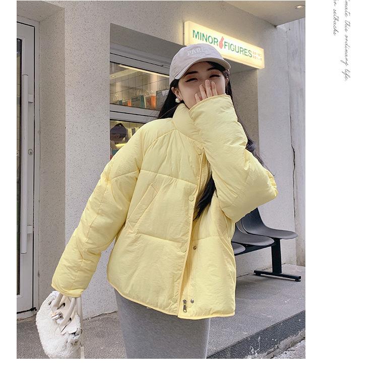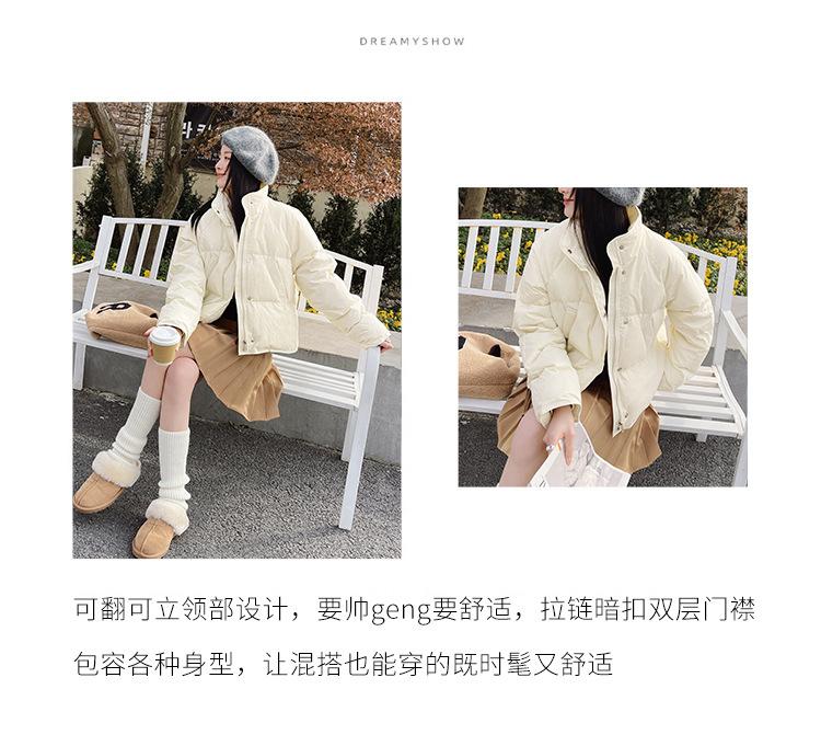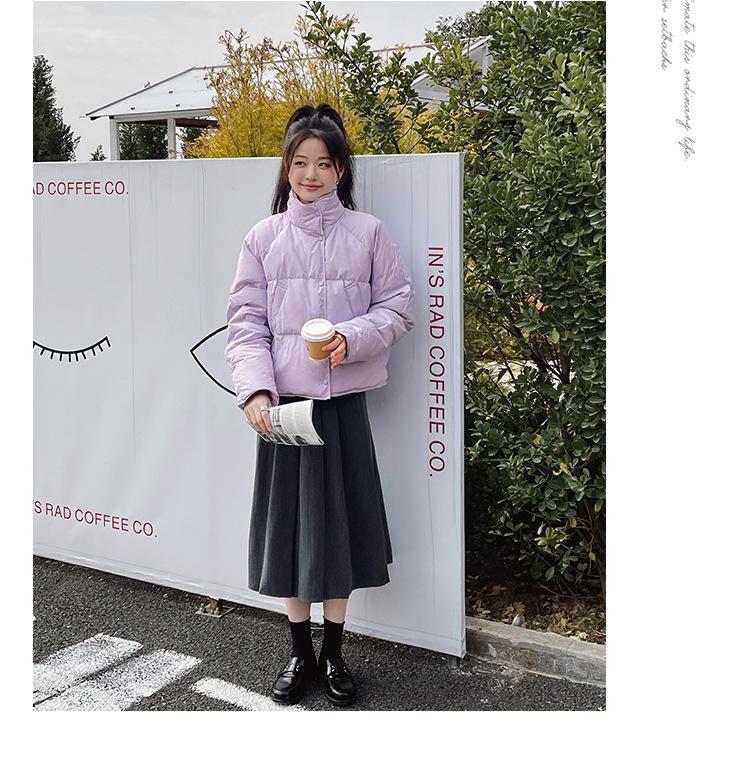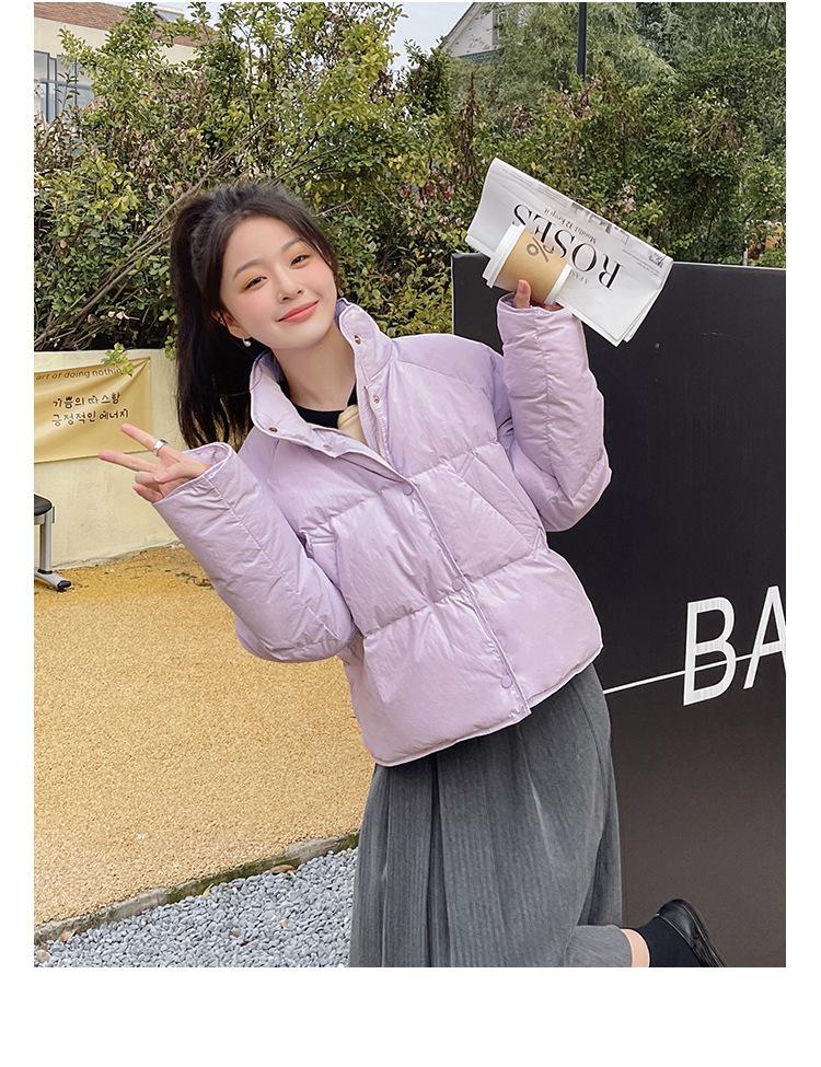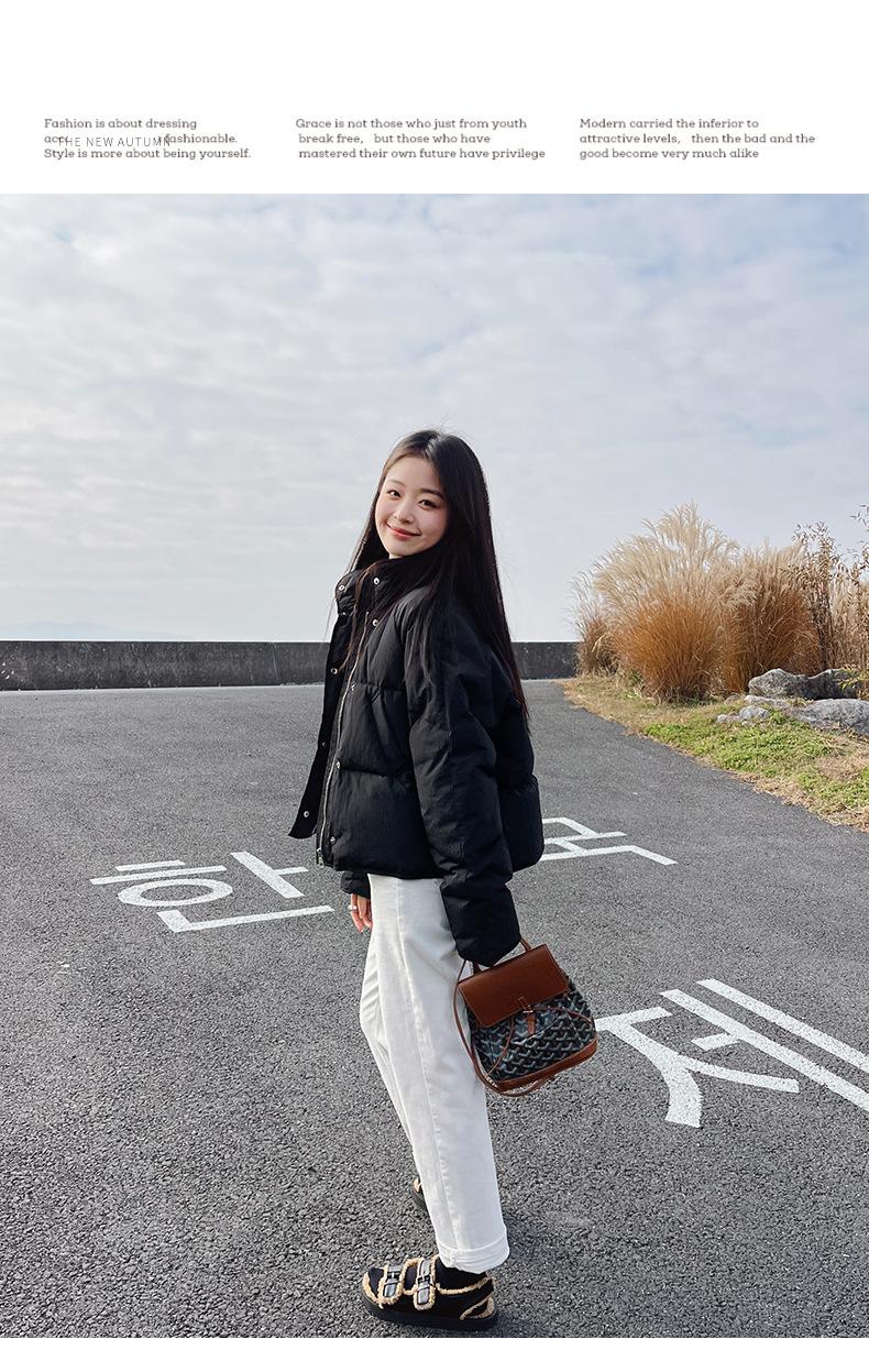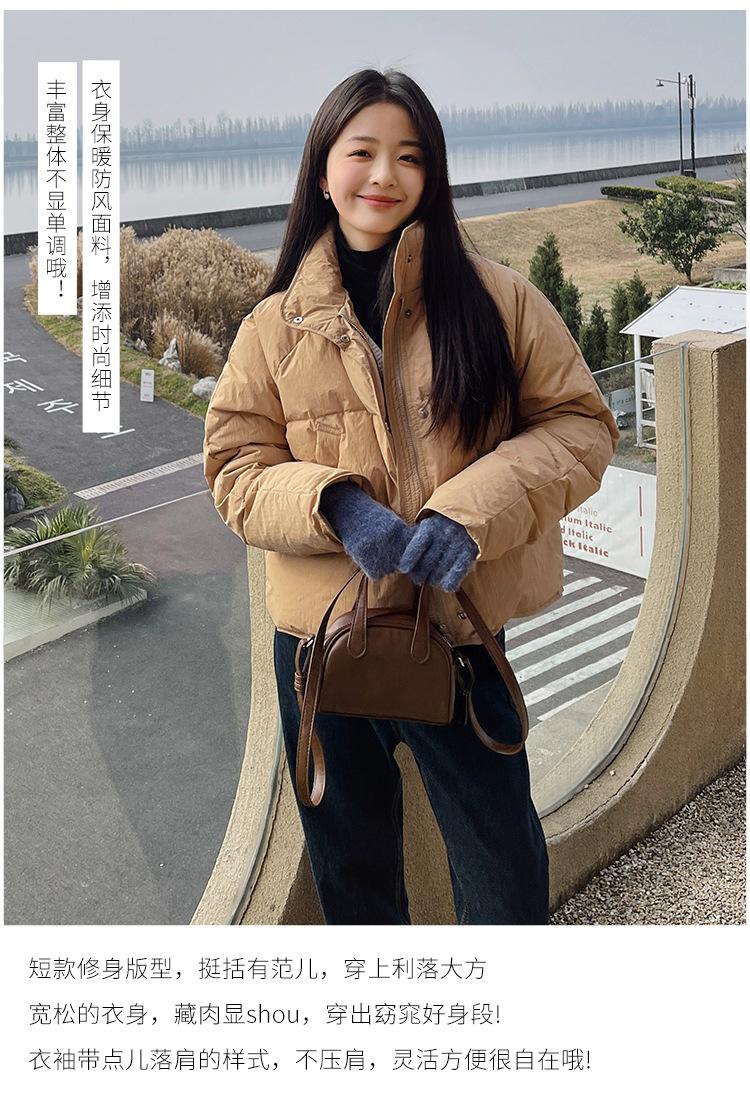 Chaqueta Coreana Acolchada de Algodón con Plumón para Mujer Corta 2024 Nuevo Estilo Cuello Vertical Gruesa Moderna Traje de Pan Pequeño Abrigo de Invierno