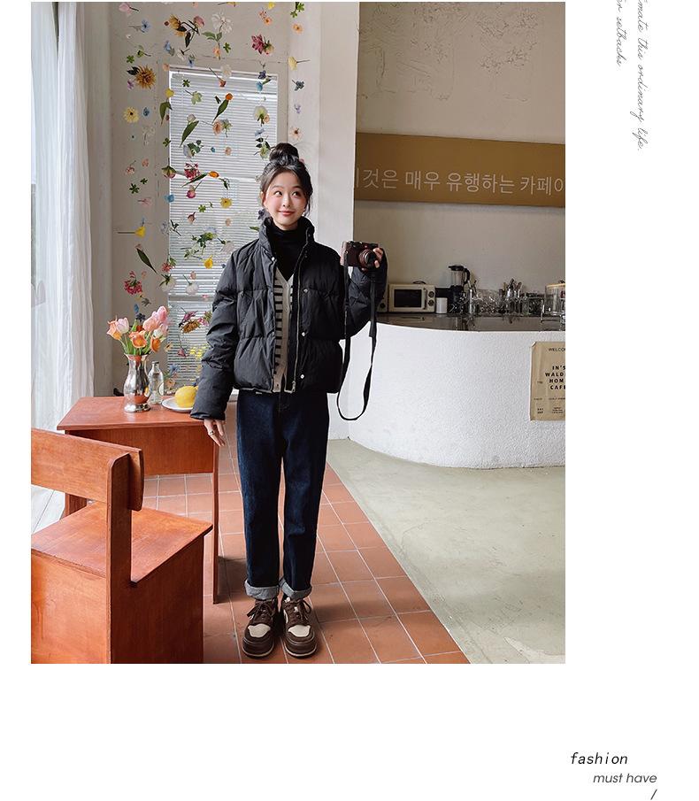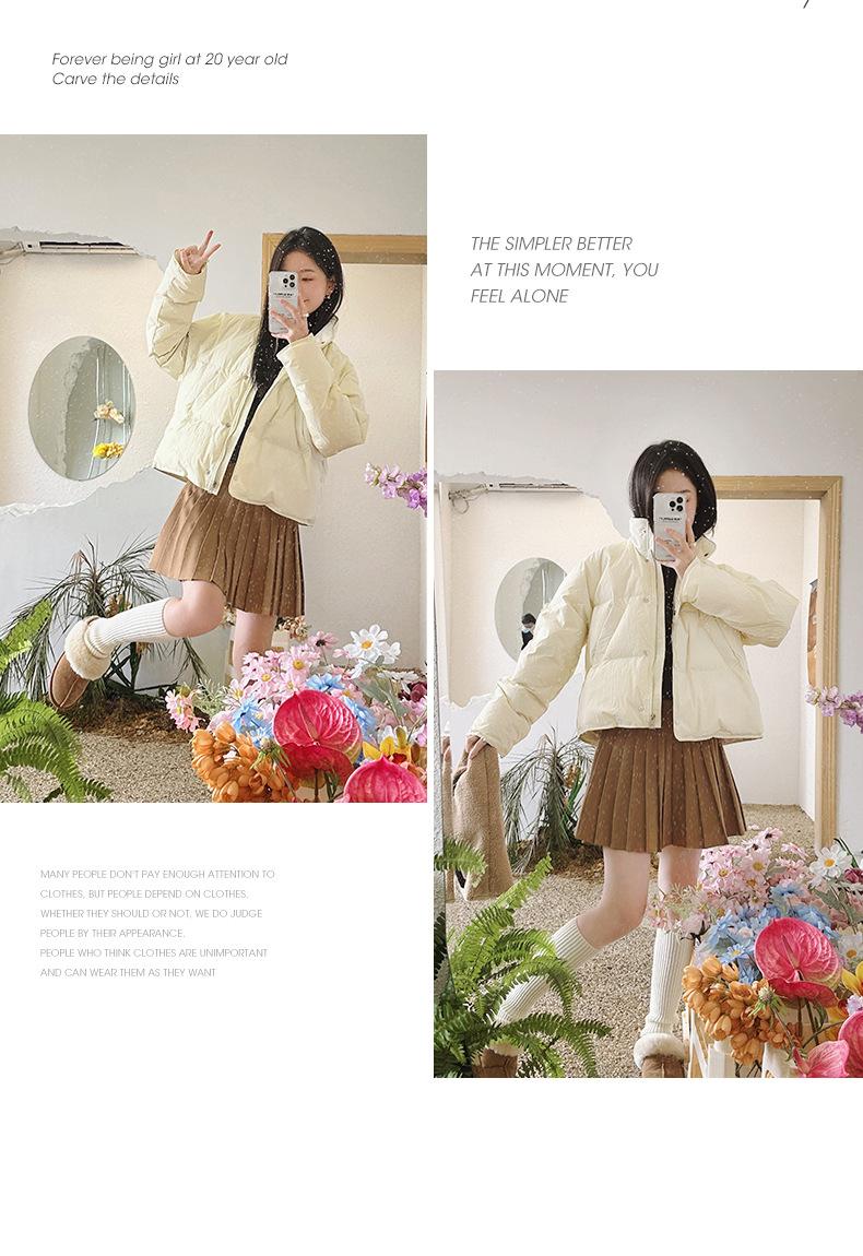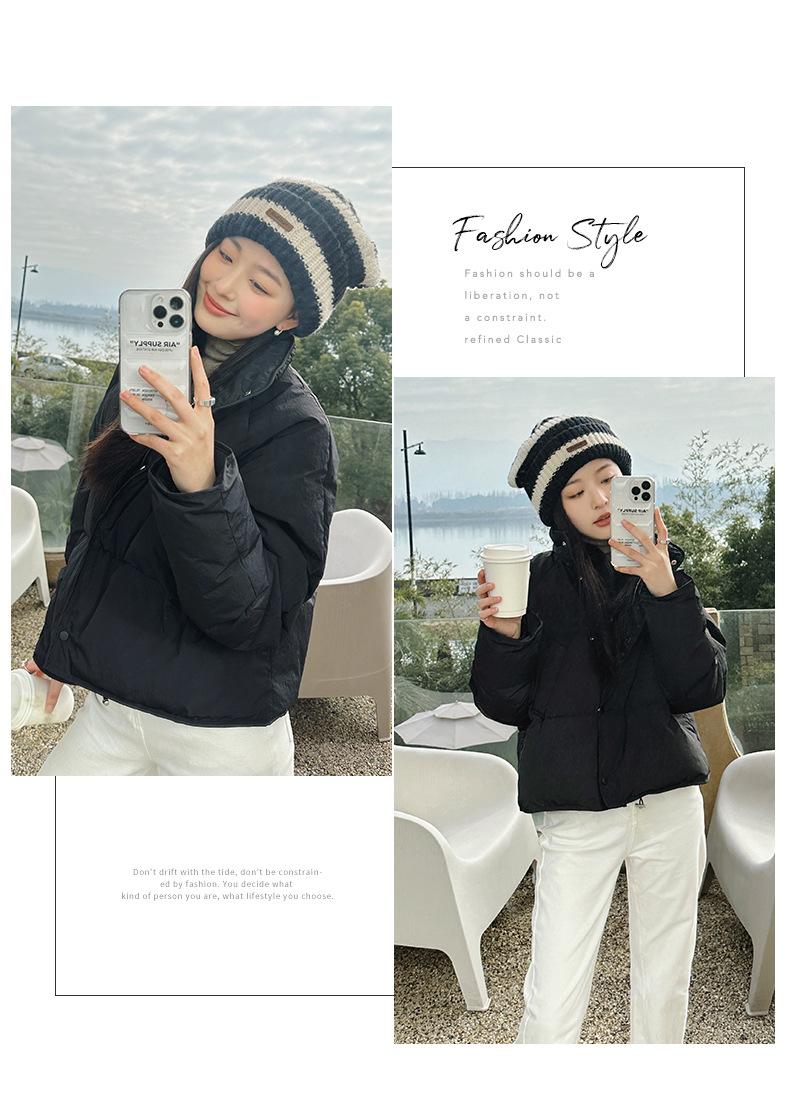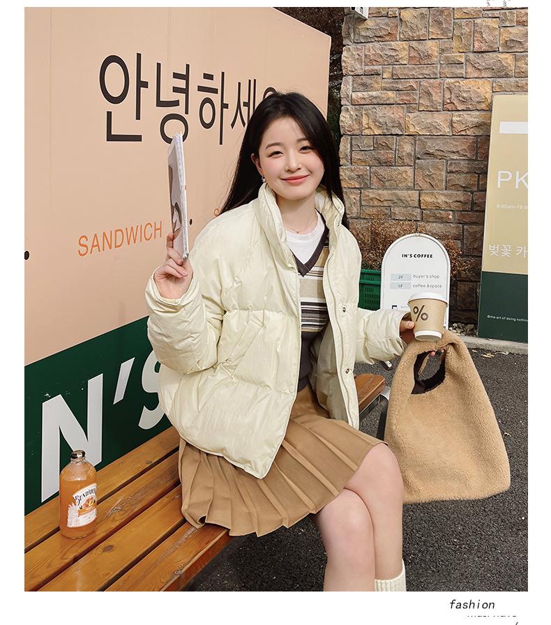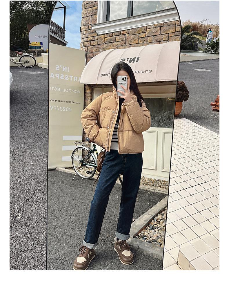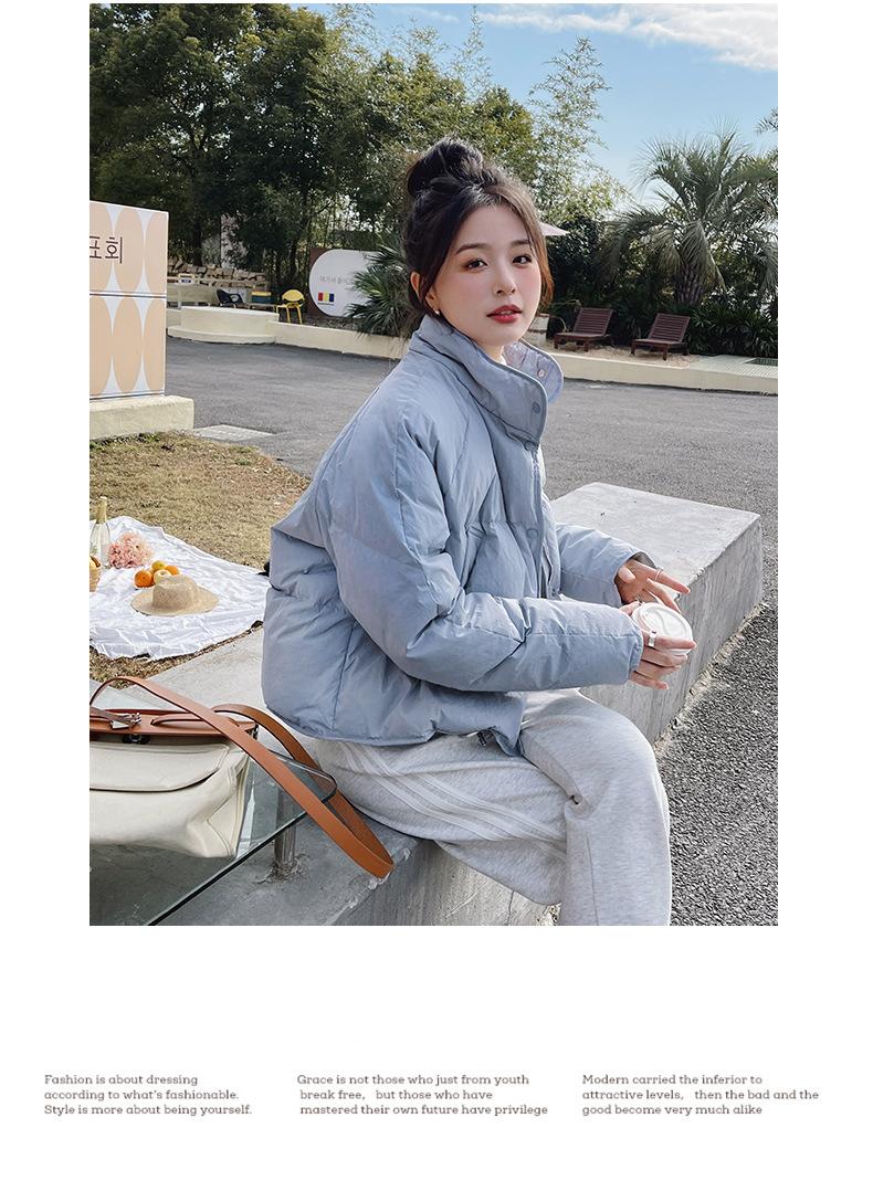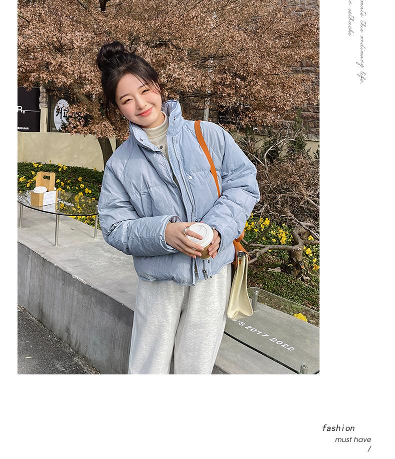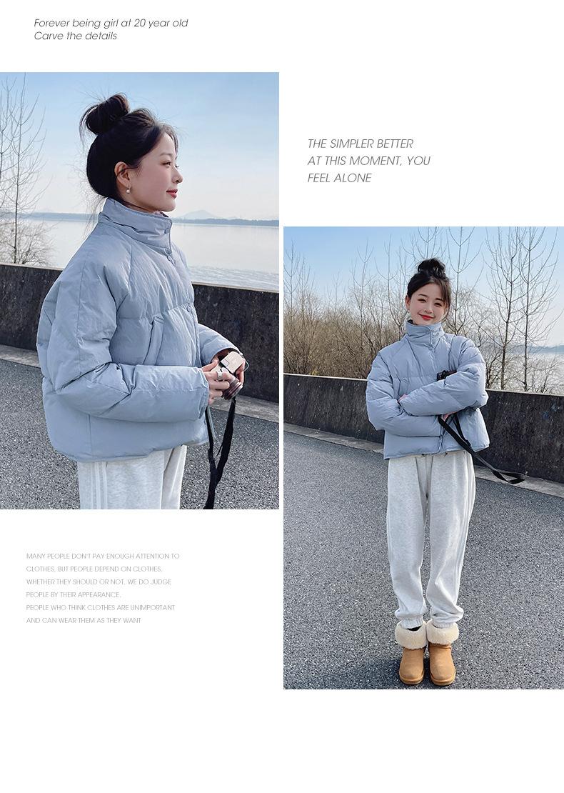 Chaqueta Coreana Acolchada de Algodón con Plumón para Mujer Corta 2024 Nuevo Estilo Cuello Vertical Gruesa Moderna Traje de Pan Pequeño Abrigo de Invierno