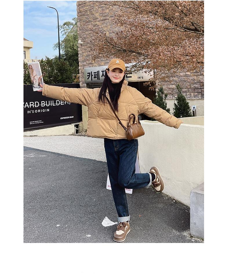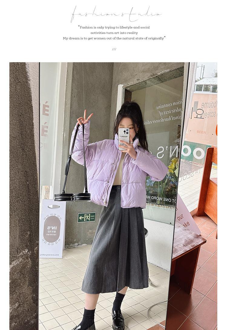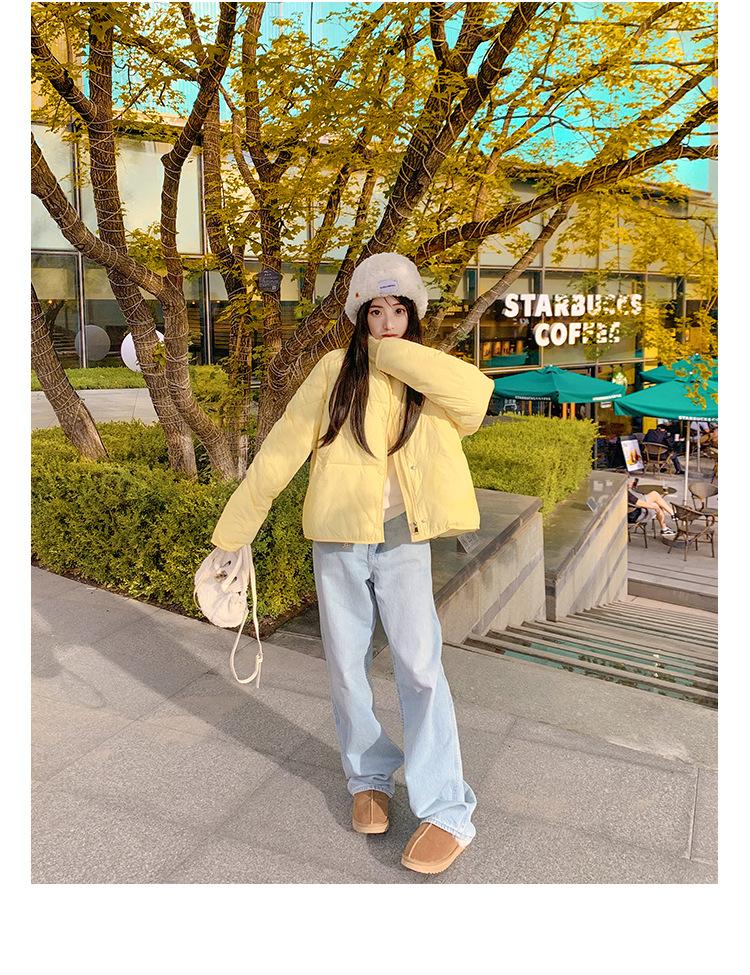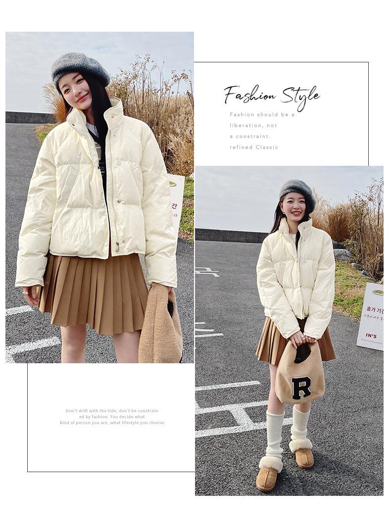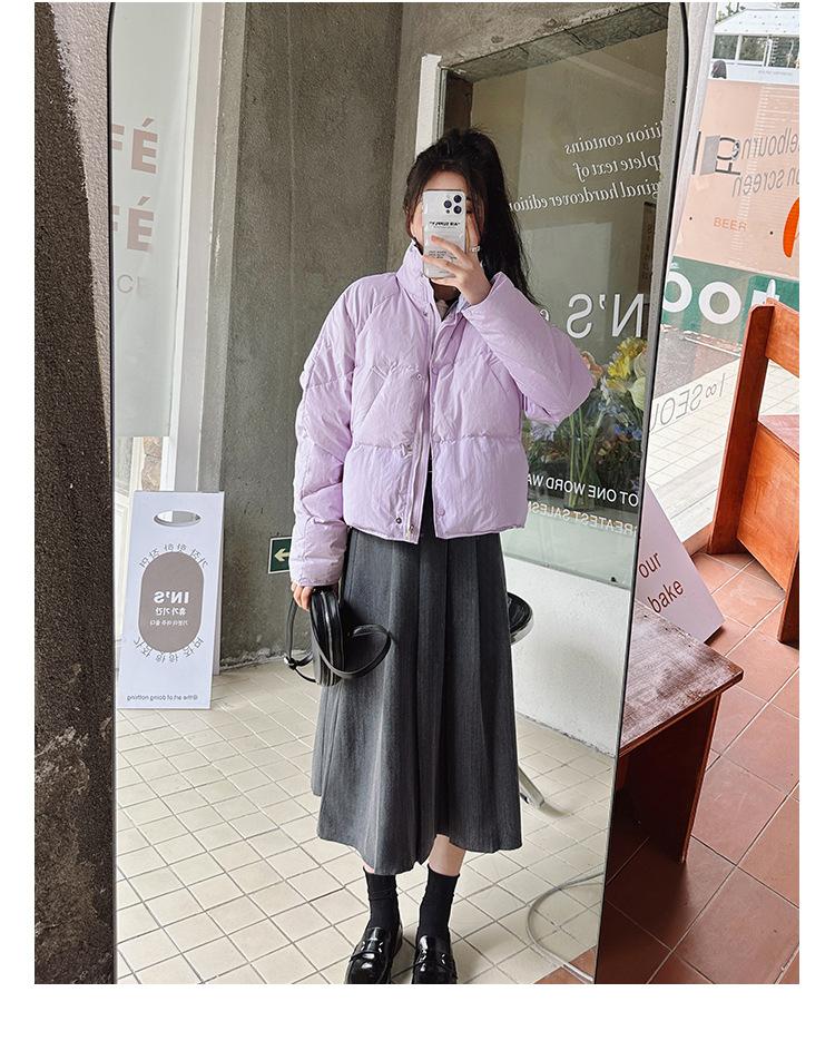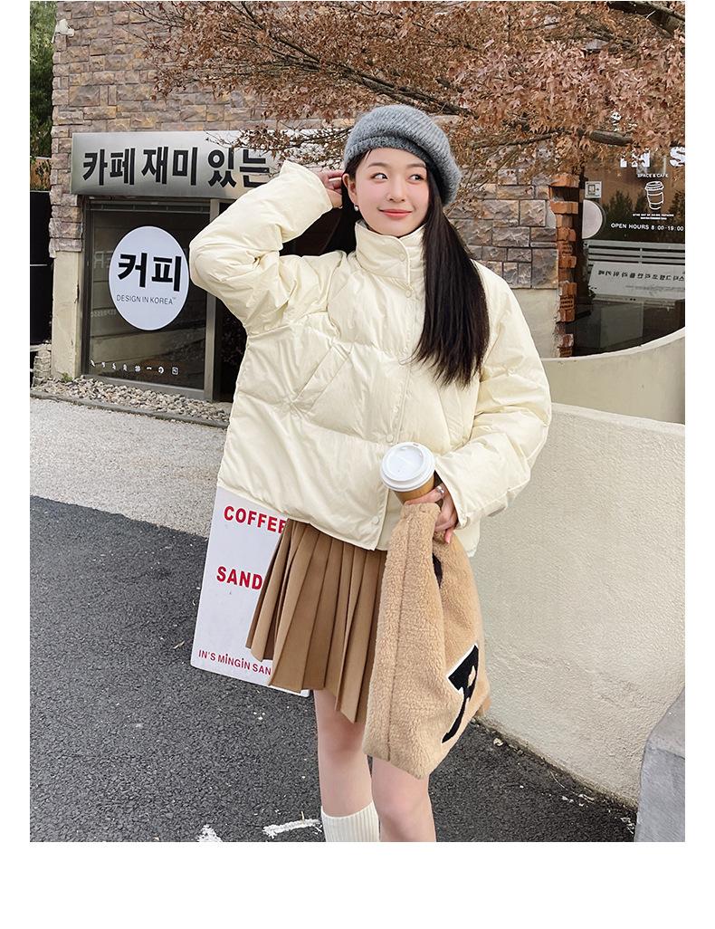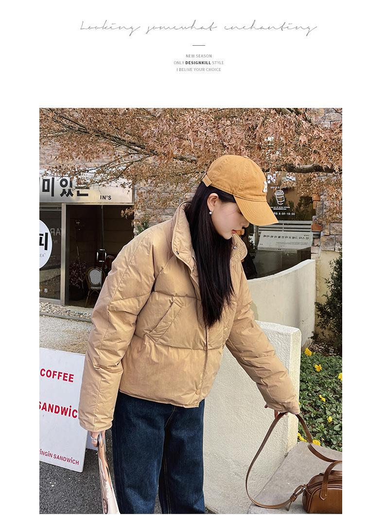 Chaqueta Coreana Acolchada de Algodón con Plumón para Mujer Corta 2024 Nuevo Estilo Cuello Vertical Gruesa Moderna Traje de Pan Pequeño Abrigo de Invierno