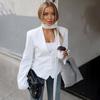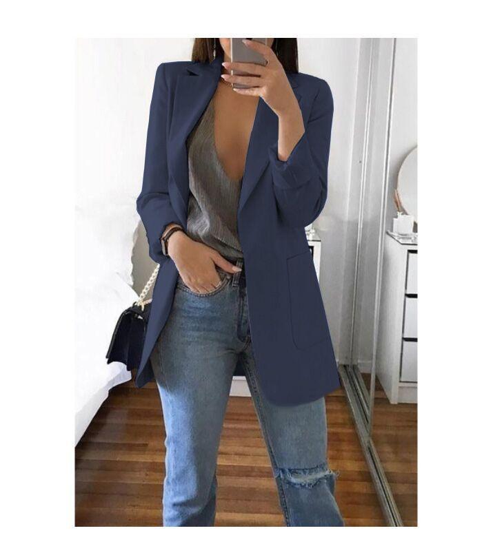 Wish Amazon 2025 Moda Europea y Americana Solapa Cárdigan Delgado Elegante Chaqueta de Traje para Mujer