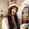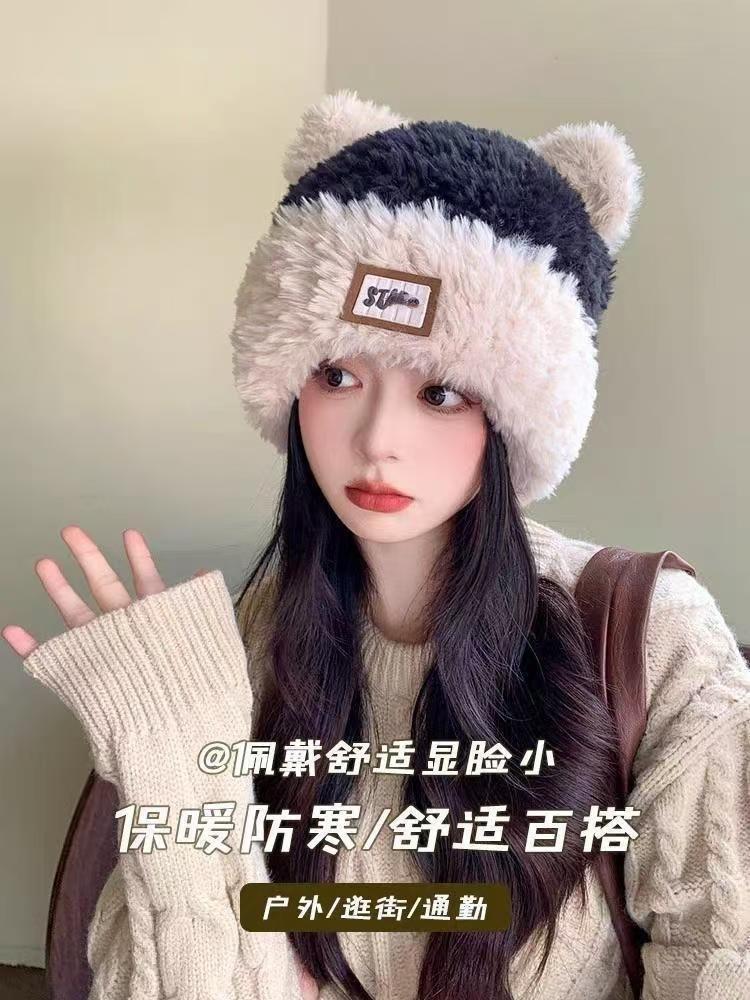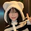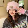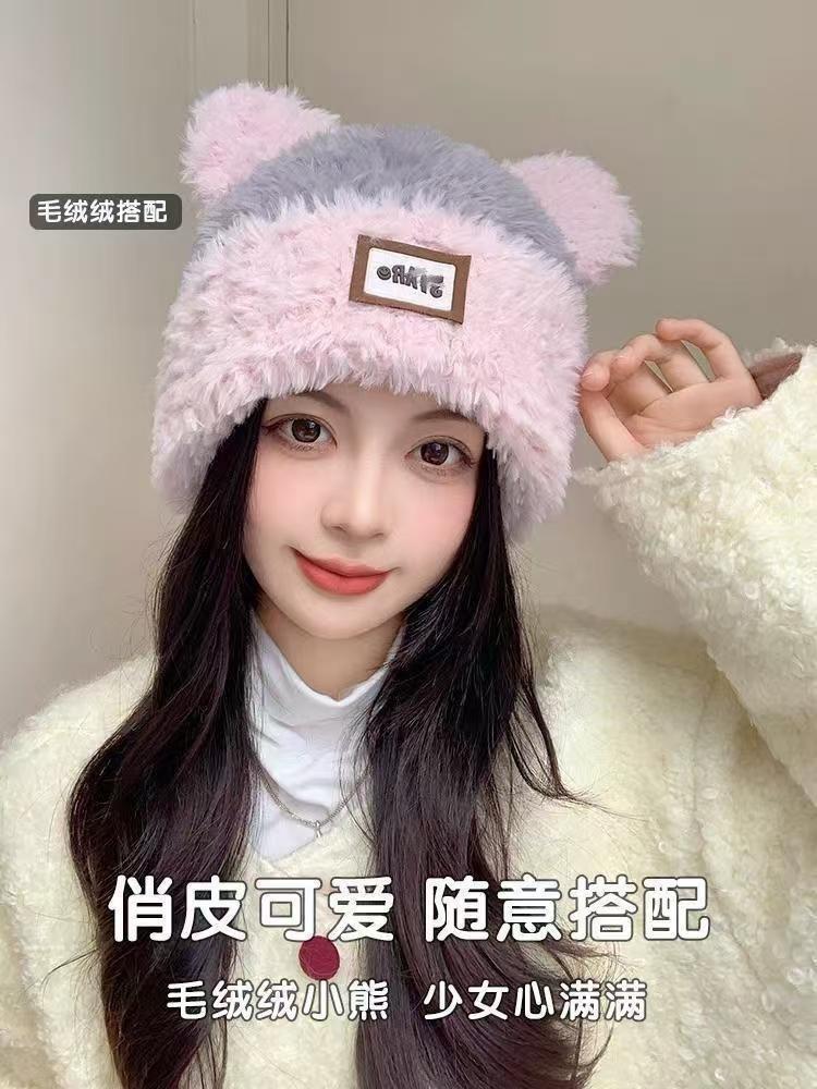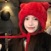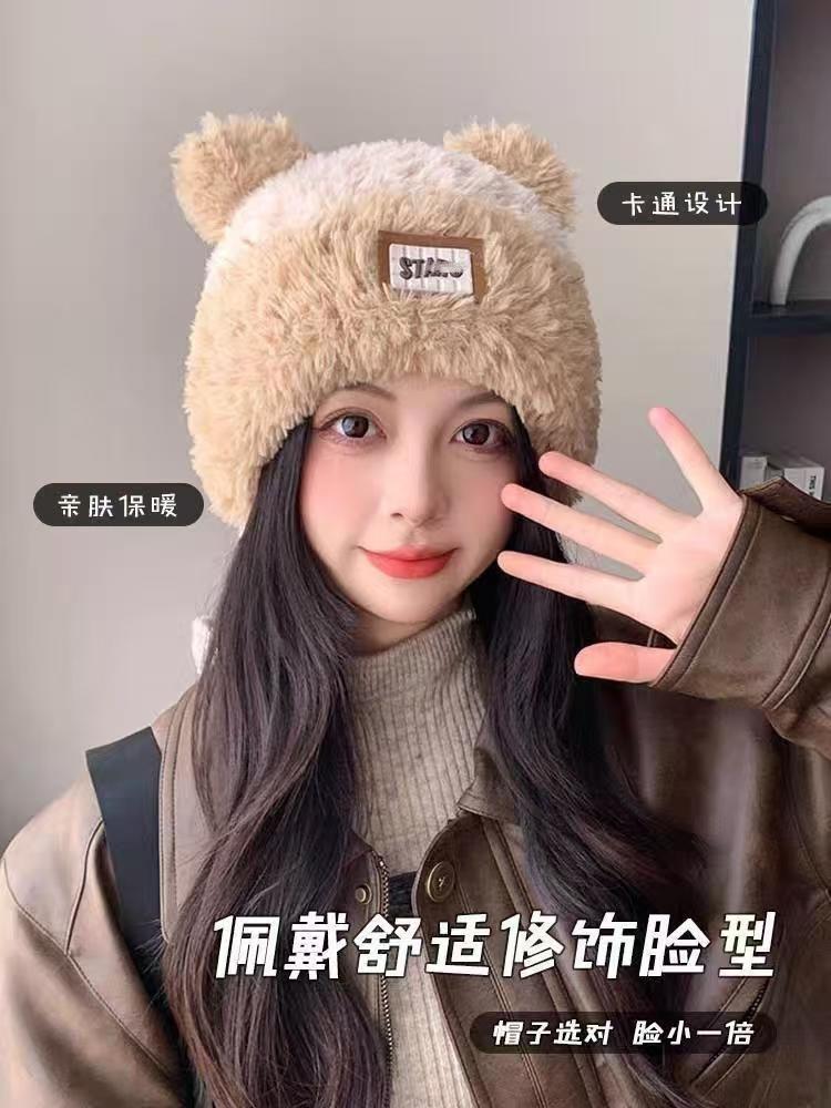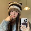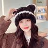Gorro de punto con orejas de oso para mujer, invierno, estilo coreano, moderno, cálido, grueso, de felpa, protección para las orejas, tejido de lana