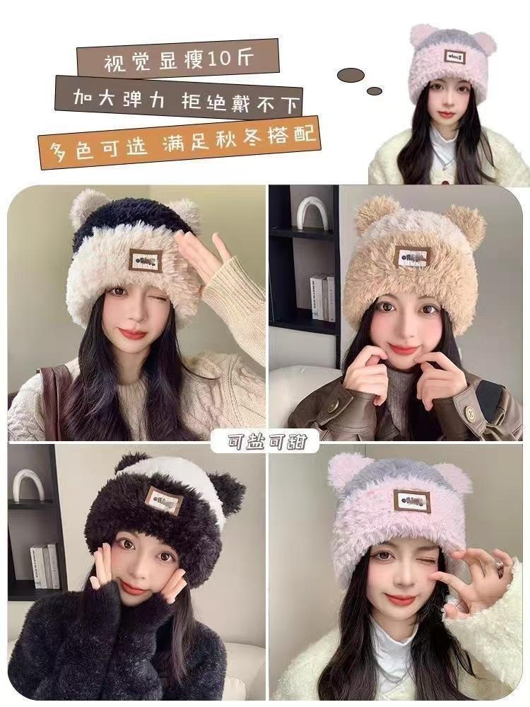 Sta panda hat [khaki], Sta panda hat [beige], Sta panda hat [black], Sta panda hat [pink], Stroke bear hat [bl...