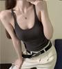 Camisola Corta de Cintura Alta para Mujer Diseño Sensual Cuello Vertical Pequeño Ajustada Chica Hot Interior Verano y Otoño Sin Mangas Camiseta Básica Top