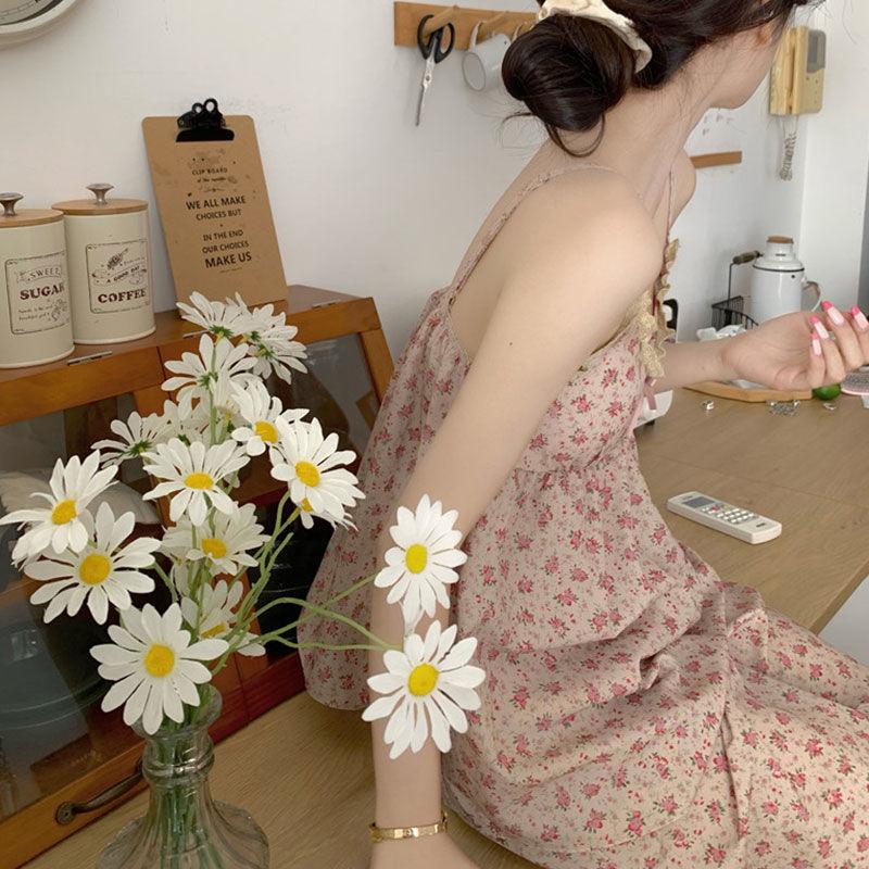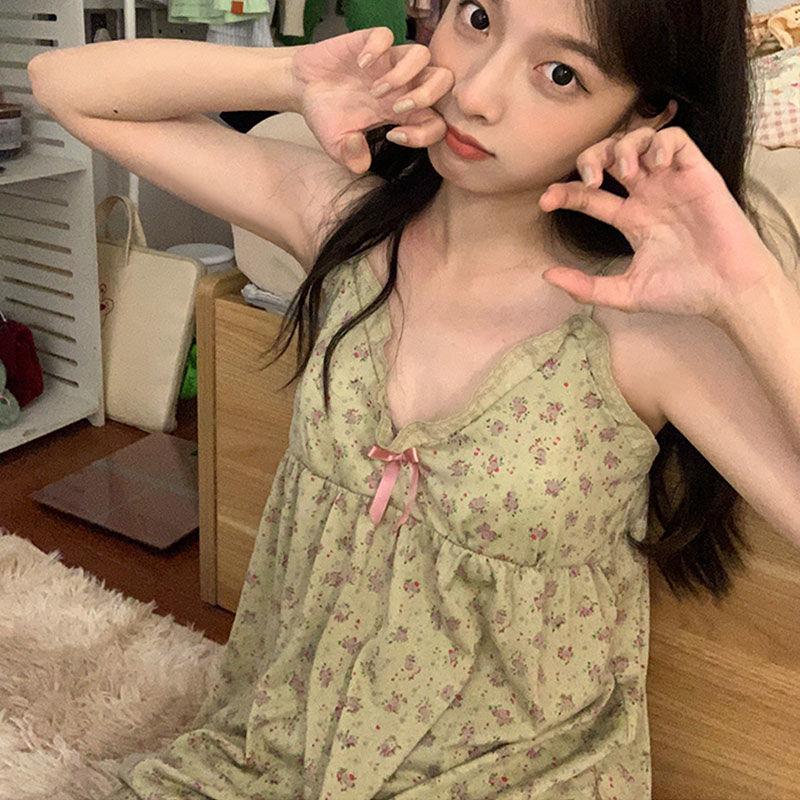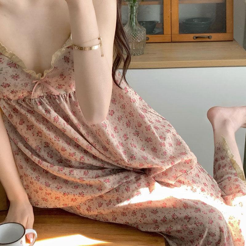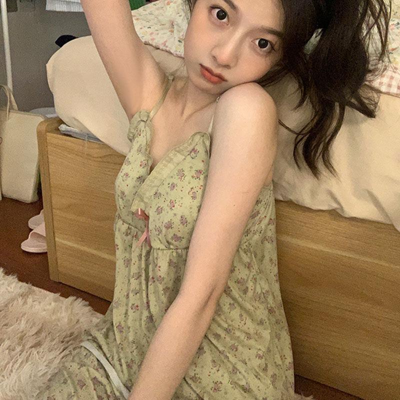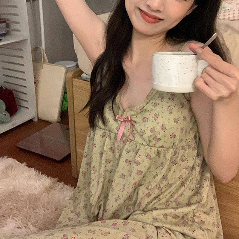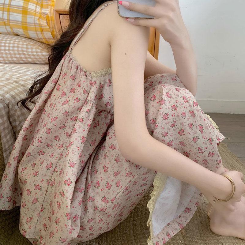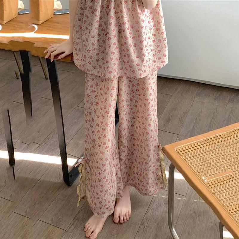 Pijama Japonés con Almohadillas para el Busto para Mujer, Estilo Pure Lust, Dulce Floral sin Mangas Tirantes Pantalones, Conjunto para el Hogar