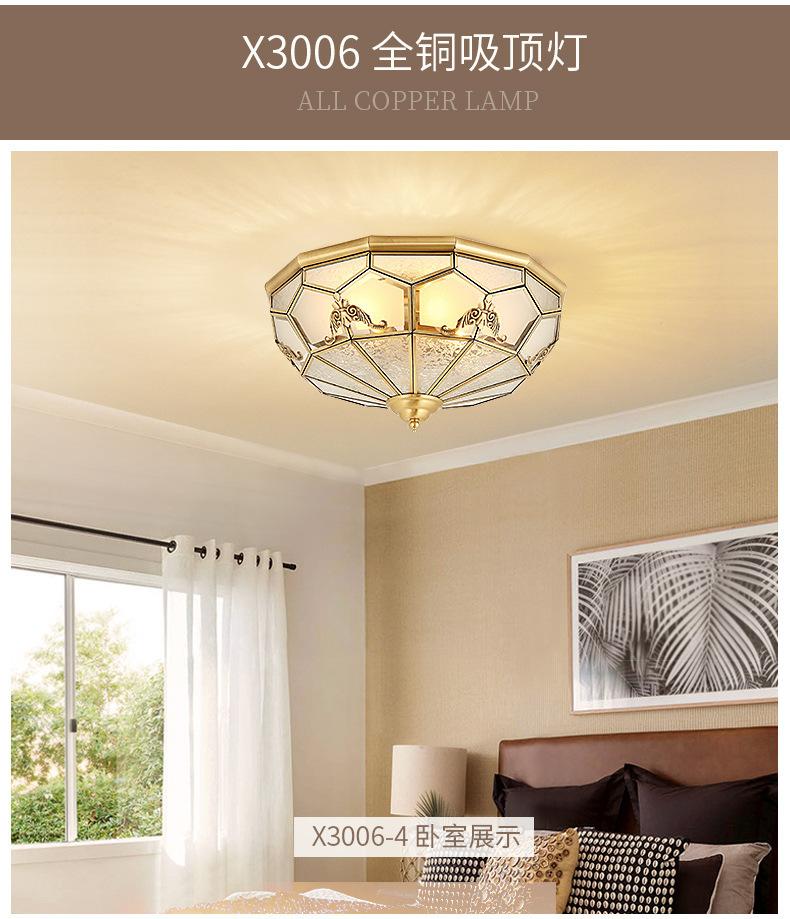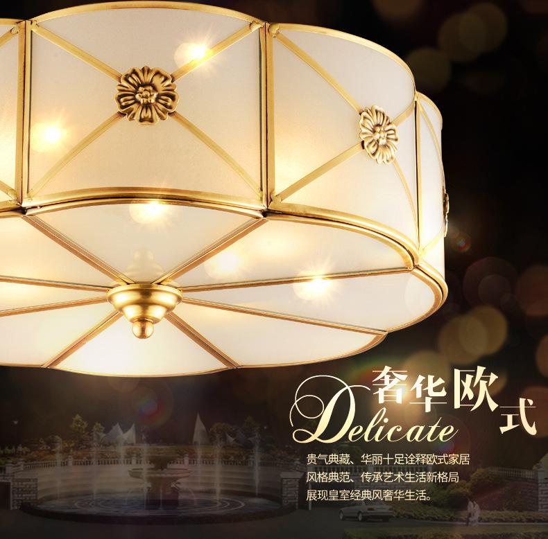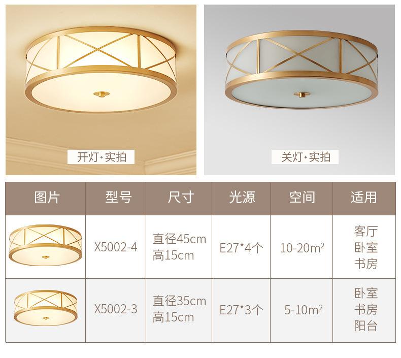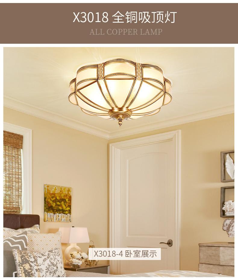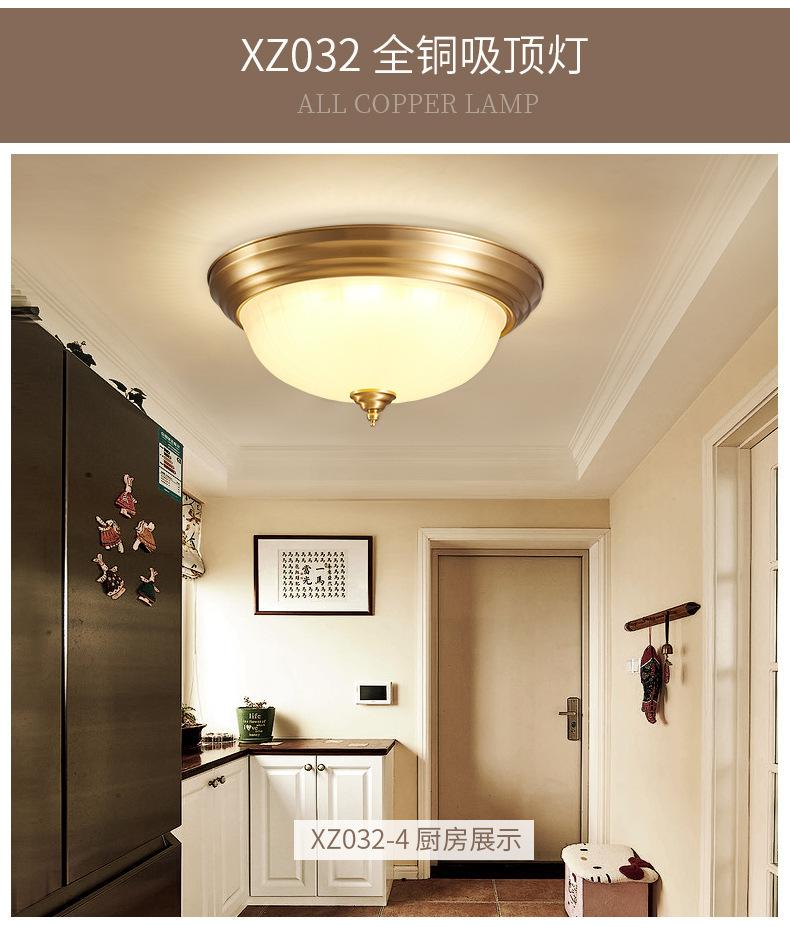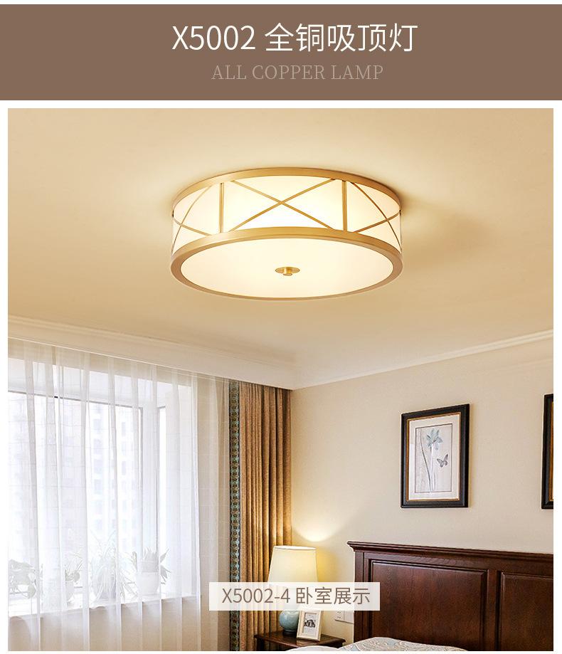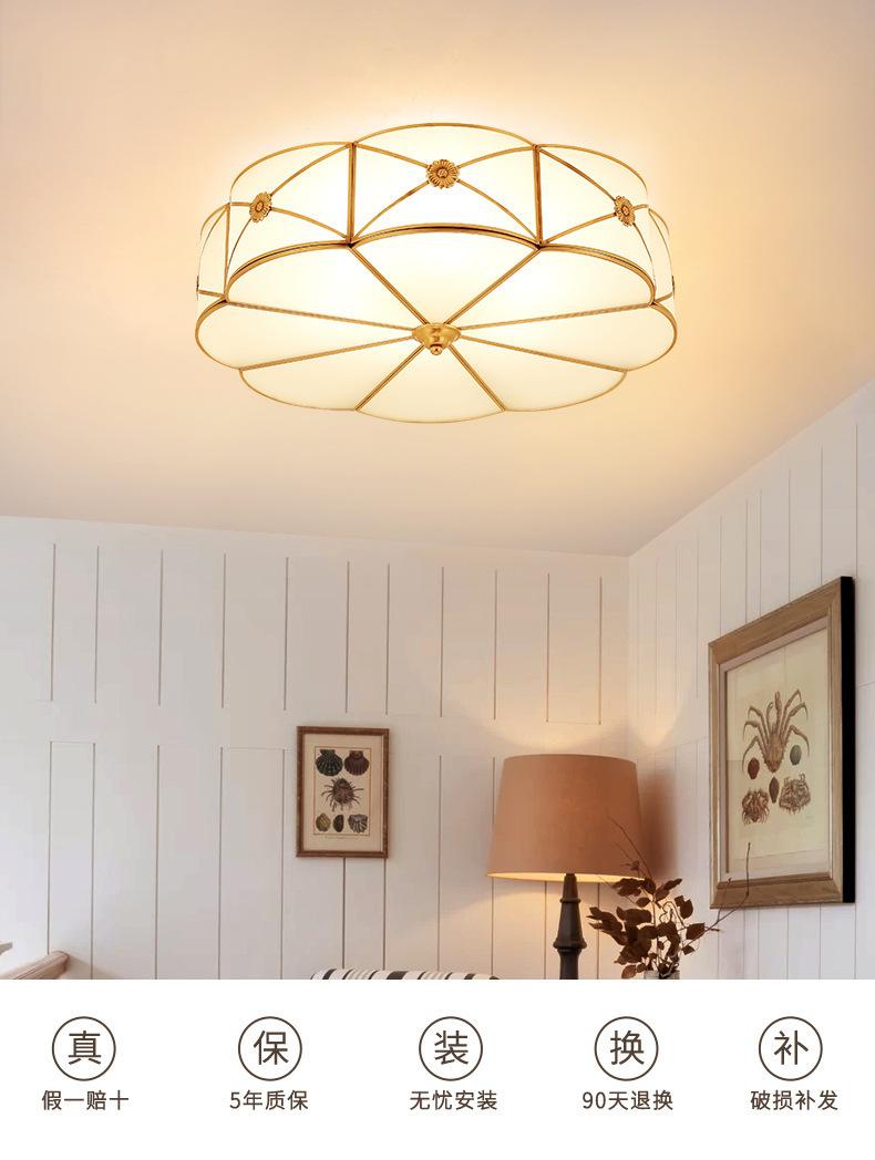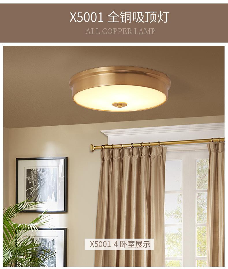 Lámpara de techo LED simple americana de cobre puro, moderna para estudio, dormitorio principal, redonda para el hogar, lámpara de techo, lámpara europea para restaurante