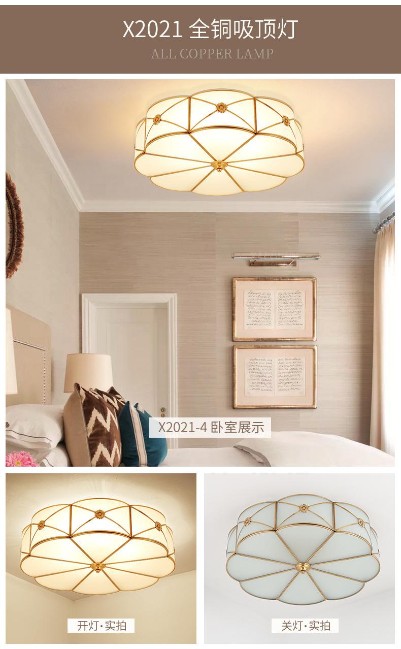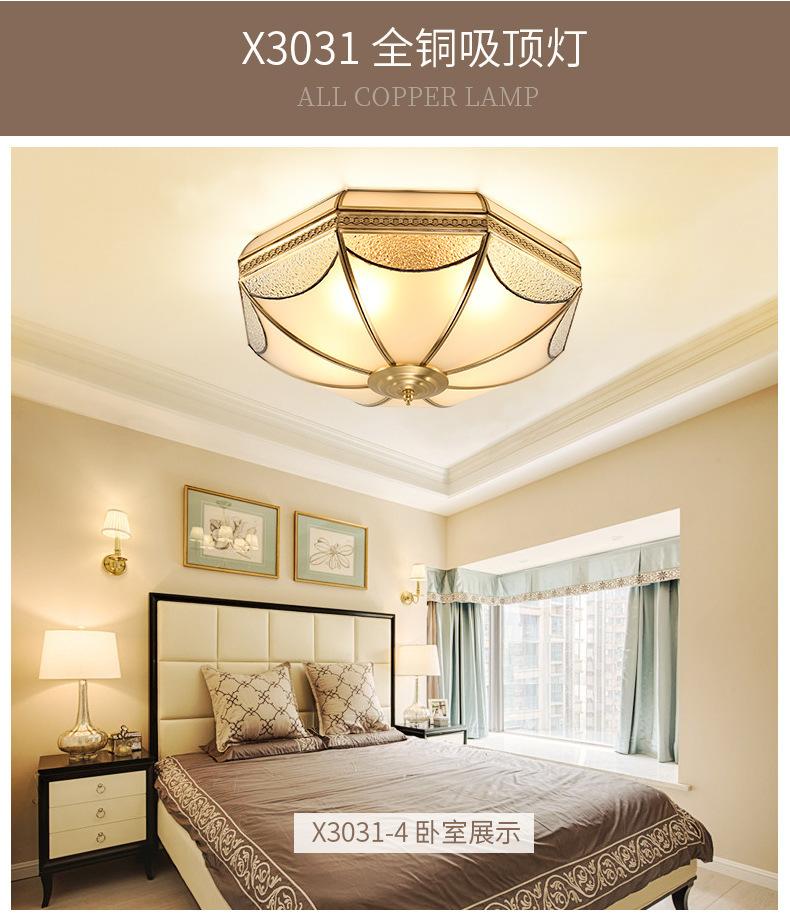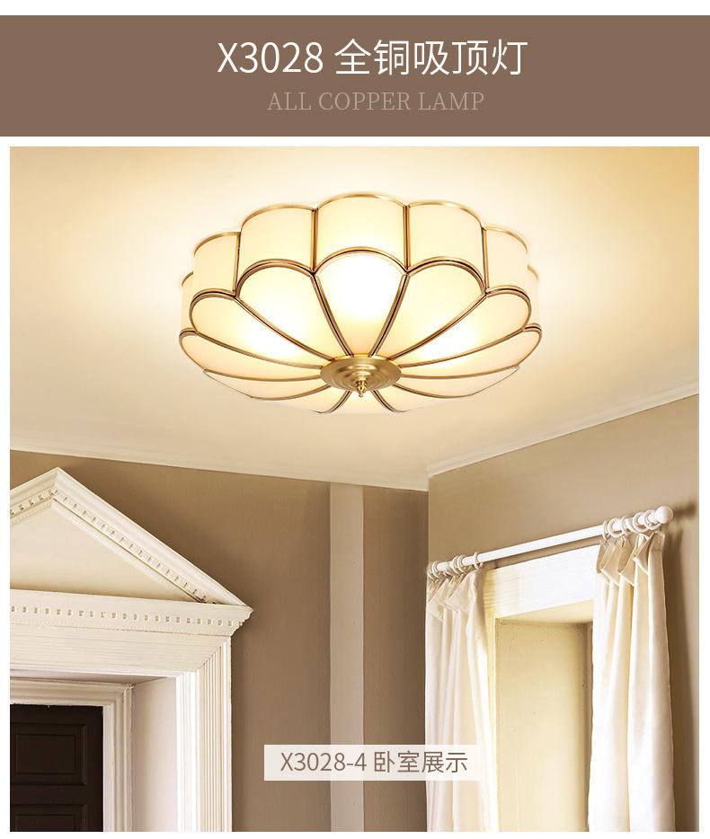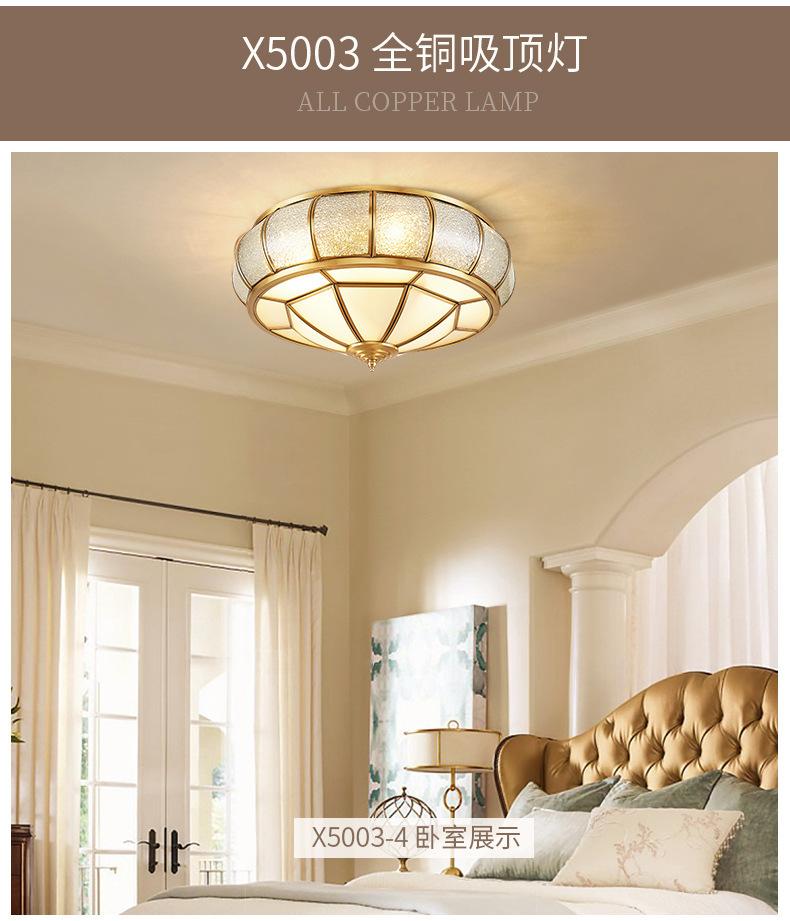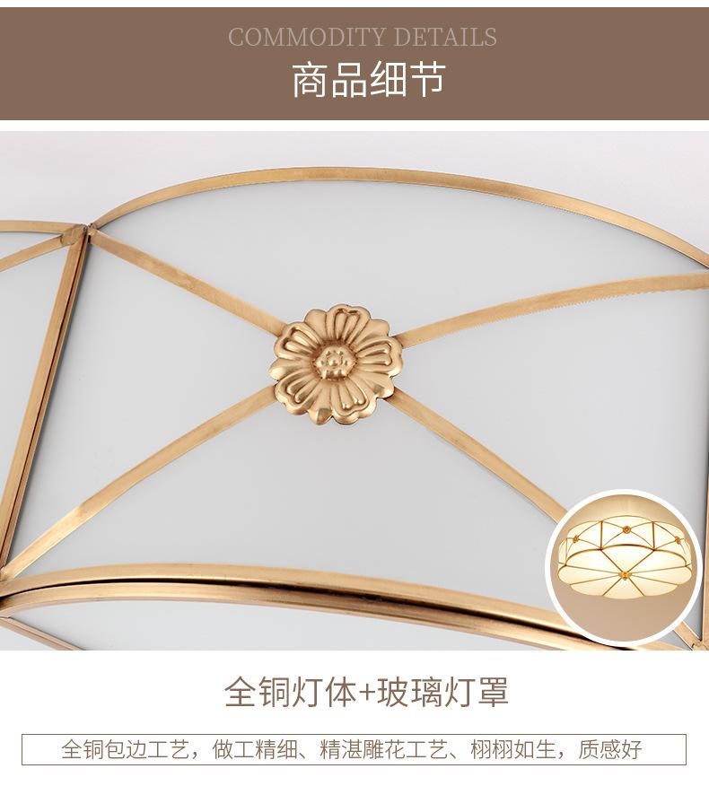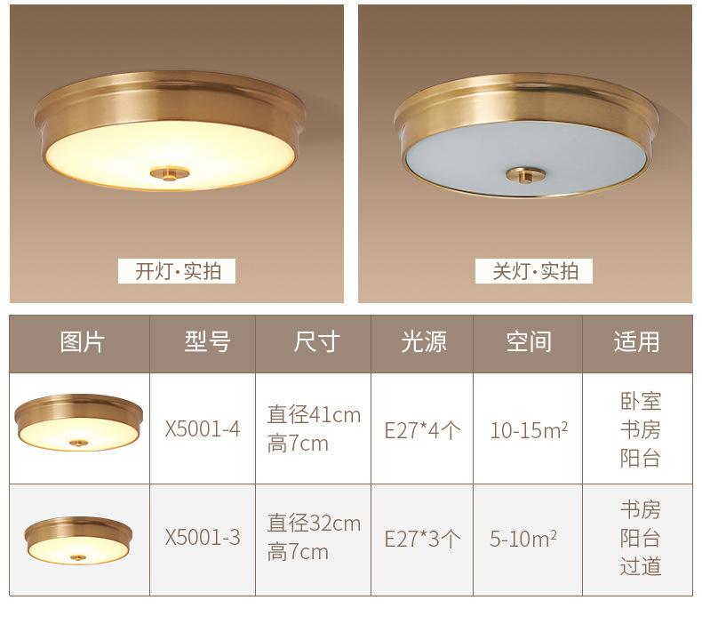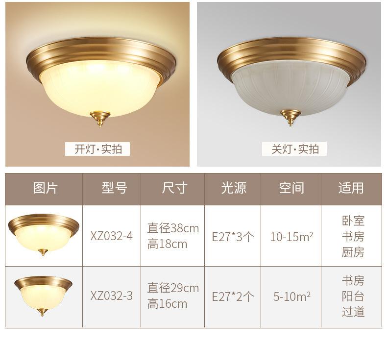 Lámpara de techo LED simple americana de cobre puro, moderna para estudio, dormitorio principal, redonda para el hogar, lámpara de techo, lámpara europea para restaurante