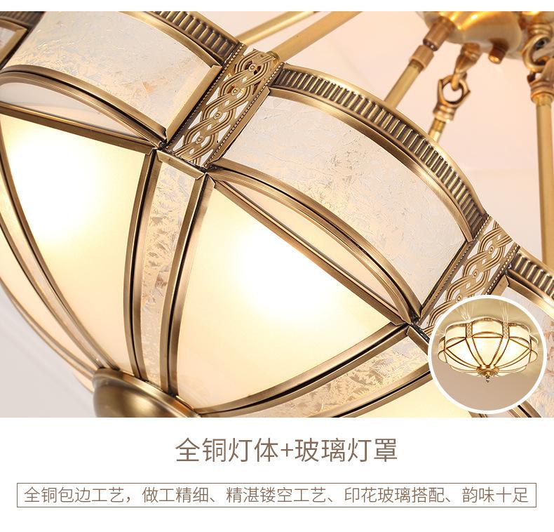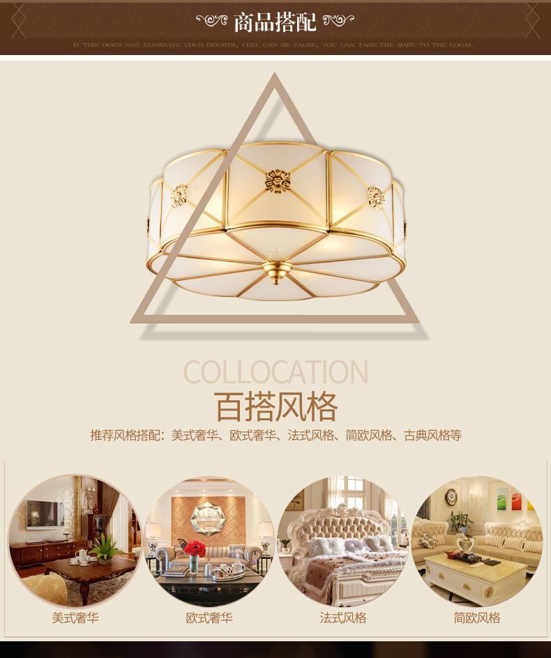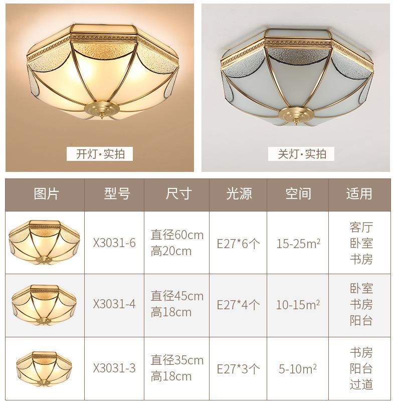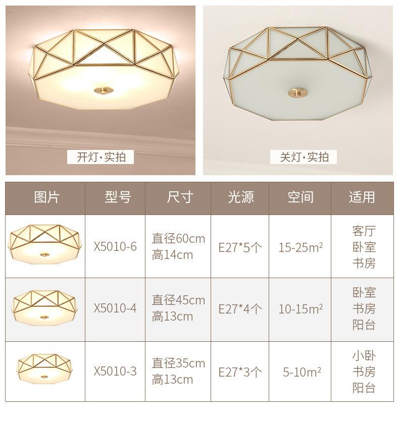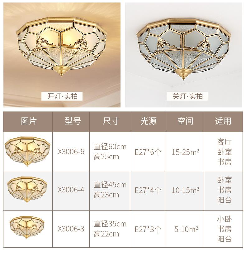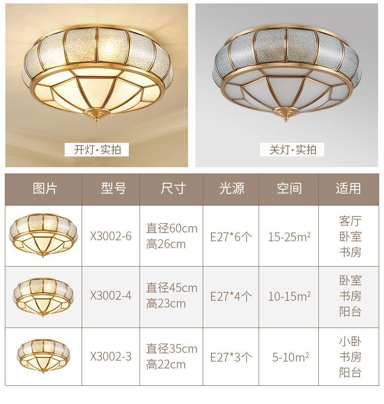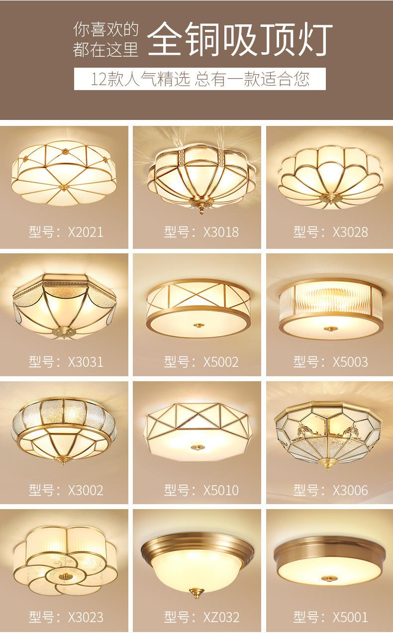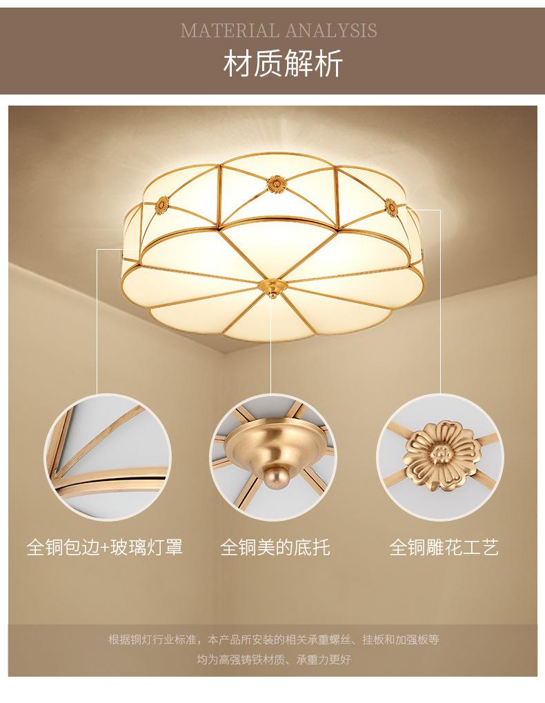 Lámpara de techo LED simple americana de cobre puro, moderna para estudio, dormitorio principal, redonda para el hogar, lámpara de techo, lámpara europea para restaurante