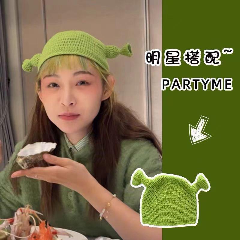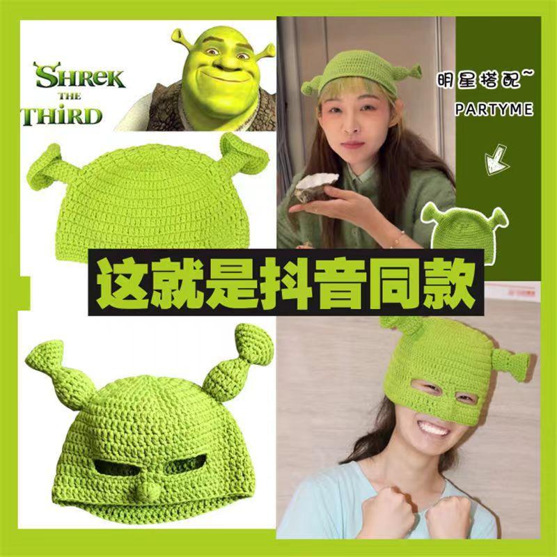 Sombrero de lana de Shrek lindo y divertido para niños, sombrero de punto verde de dibujos animados cálido para otoño e invierno para niños, a la moda