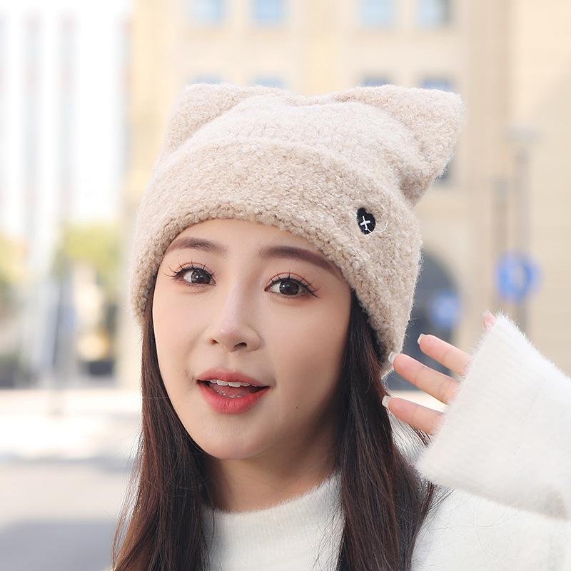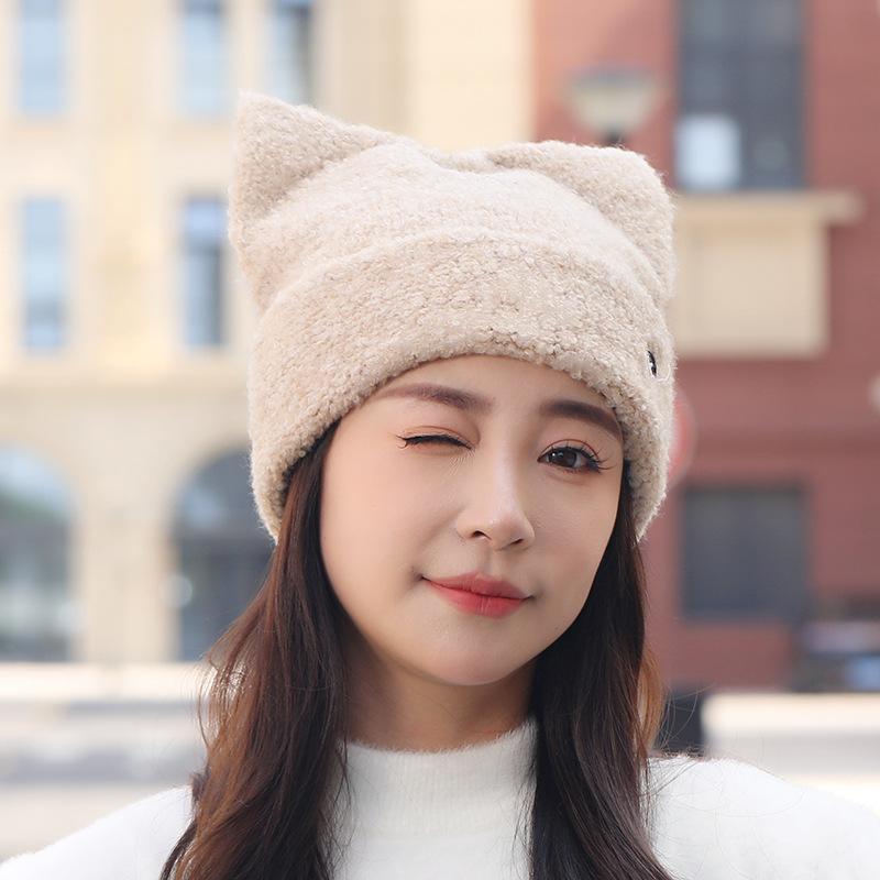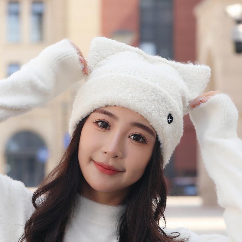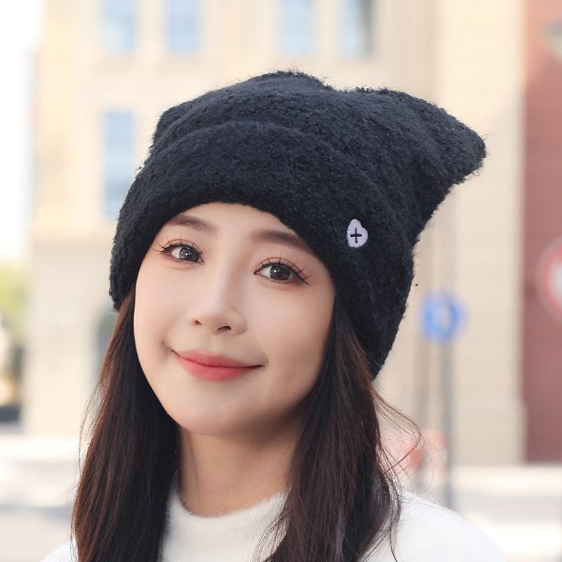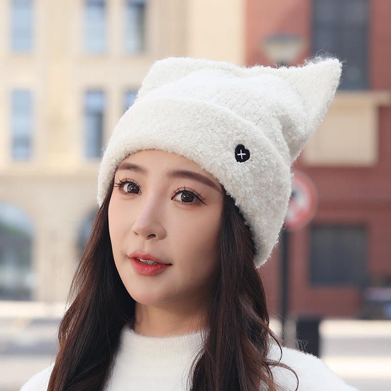Sombrero de Lana Dulce y Lindo Estilo Japonés con Orejas de Gato Bordado de Corazón para Mujer Otoño e Invierno Cálido Protección para las Orejas Sombrero de Punto de Felpa