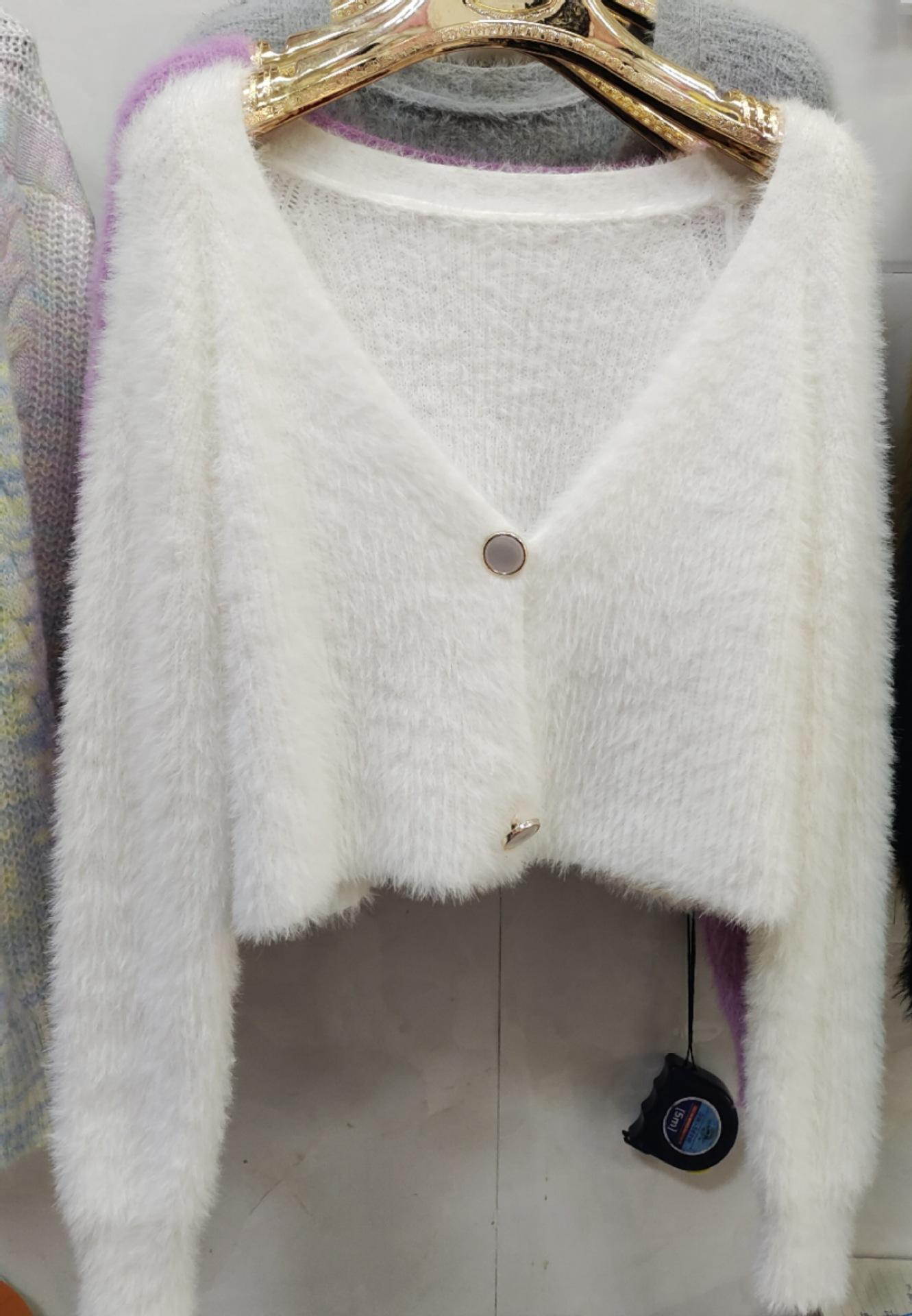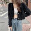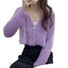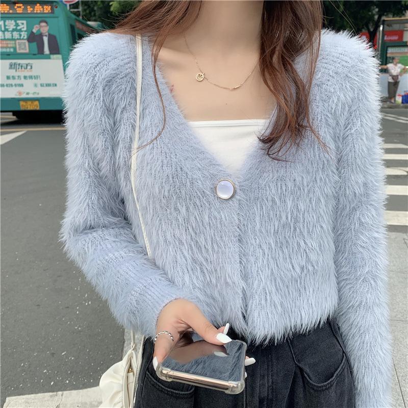 Cárdigan Corto de Punto de Visón Sintético con Cuello en V Estilo Coreano para Mujer, Otoño e Invierno 2025, Abrigo Suéter Elegante, Top Casual
