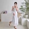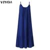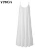 ¡Lugar! Vestido Largo Europeo y Americano Nuevo con Volantes de Color Sólido sin Mangas Suelto Fino con Tirantes de Hombro Vestido de Verano