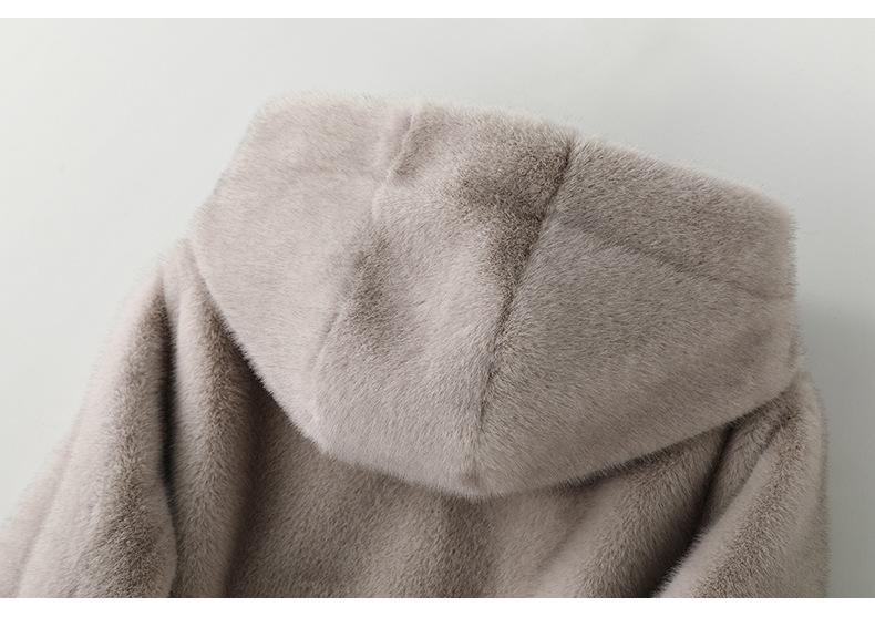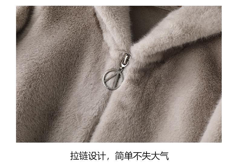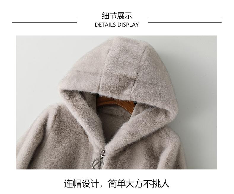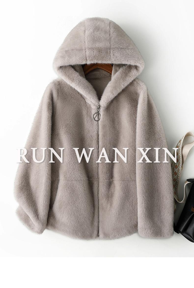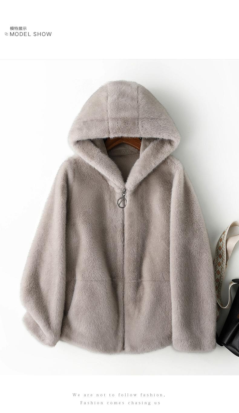 Haining 2024 otoño e invierno nuevo abrigo de terciopelo visón dorado para mujer, abrigo corto con capucha de piel sintética de visón hurón