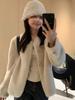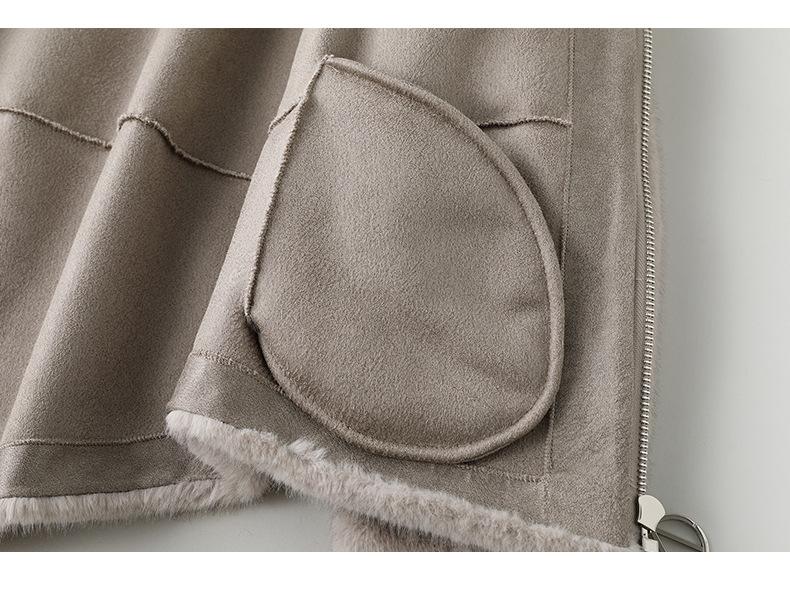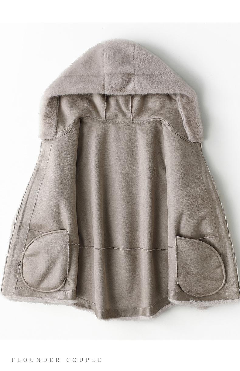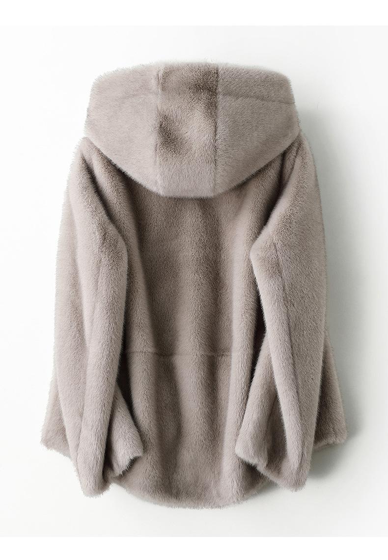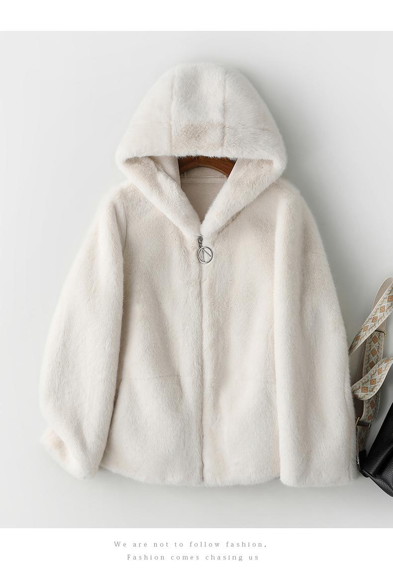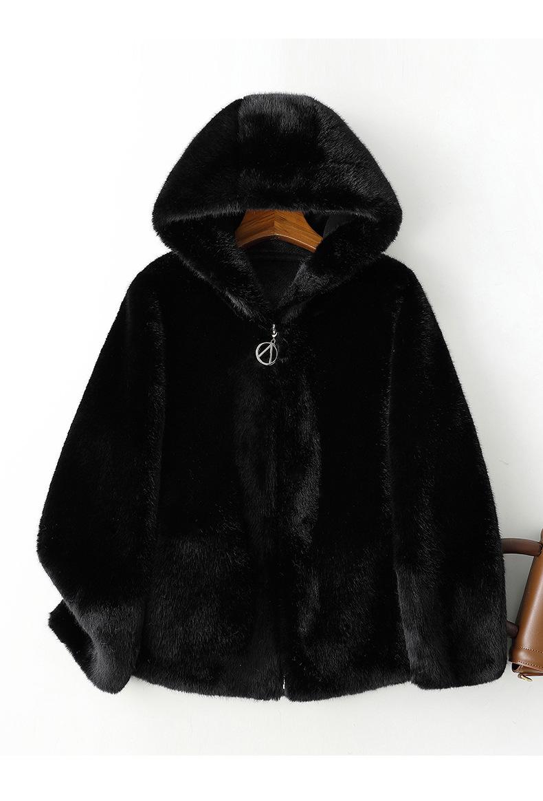 Haining 2024 otoño e invierno nuevo abrigo de terciopelo visón dorado para mujer, abrigo corto con capucha de piel sintética de visón hurón