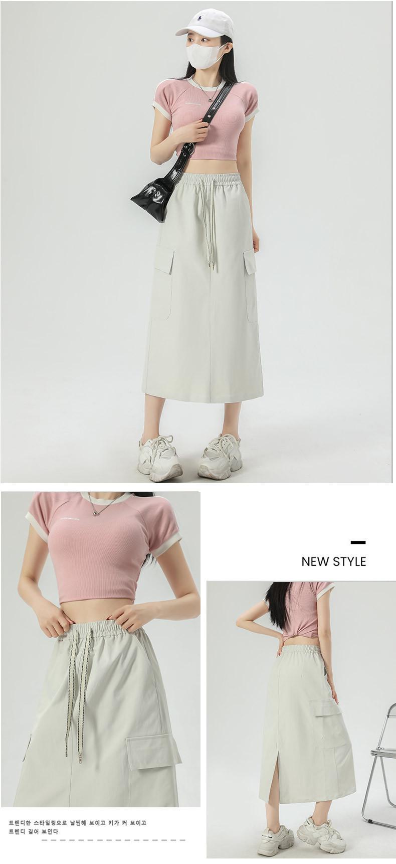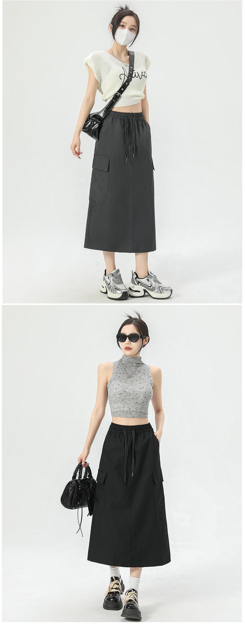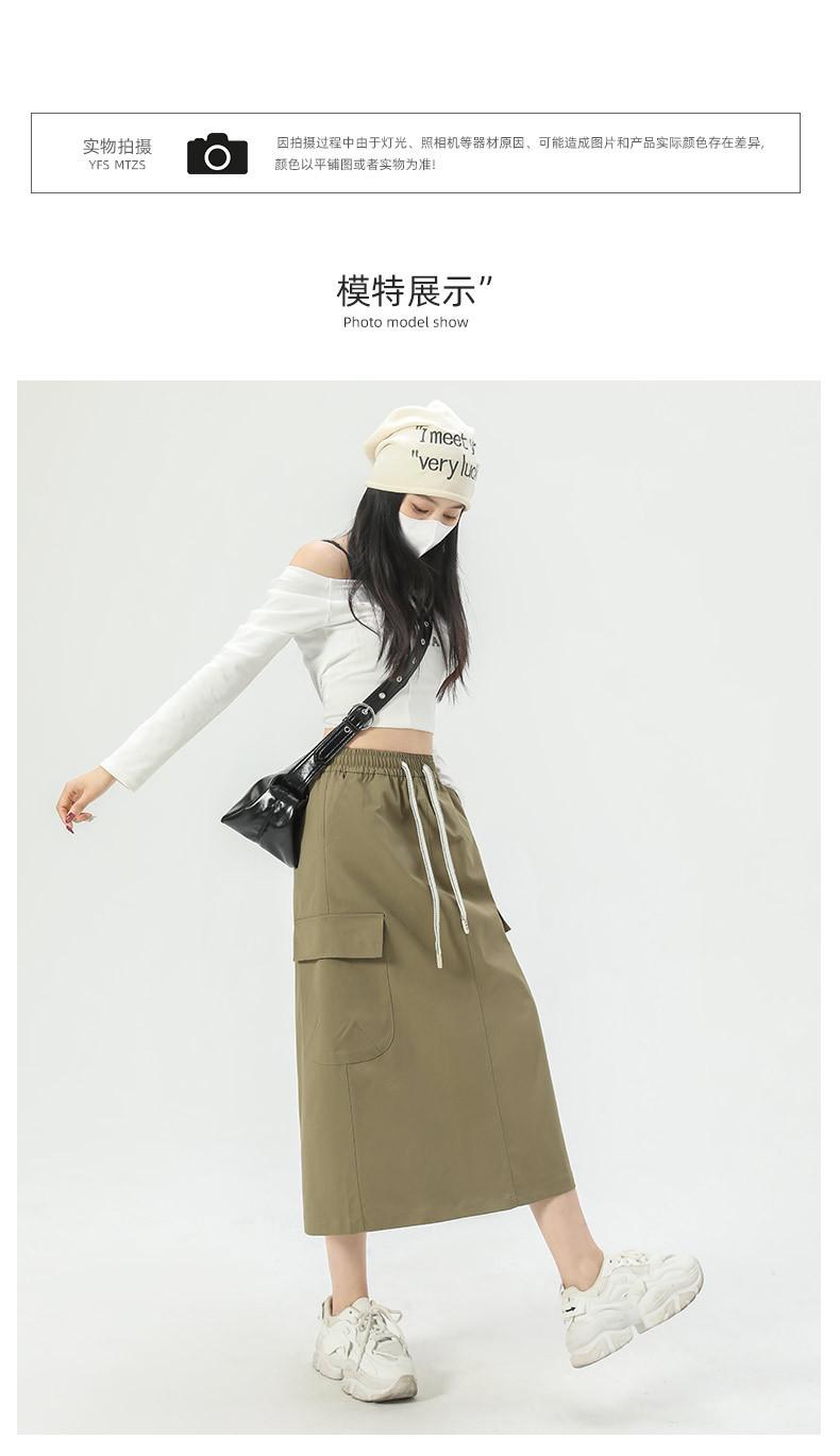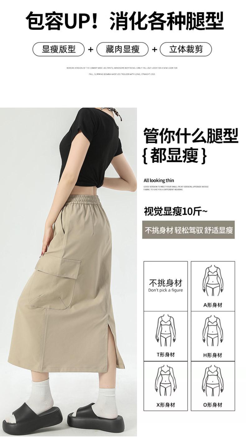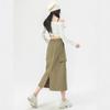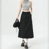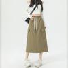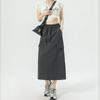 Falda de Trabajo Estilo Americano con Bolsillo Grande para Mujer Primavera y Verano 2025 Nueva Color Sólido Cubre Caderas Cintura Alta Adelgazante Abertura Falda Midi Línea A