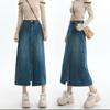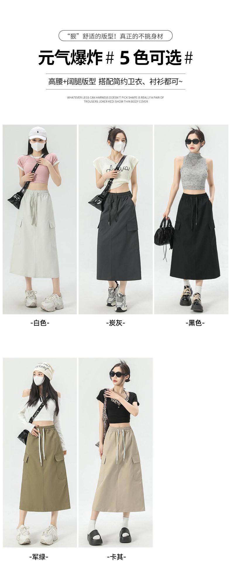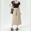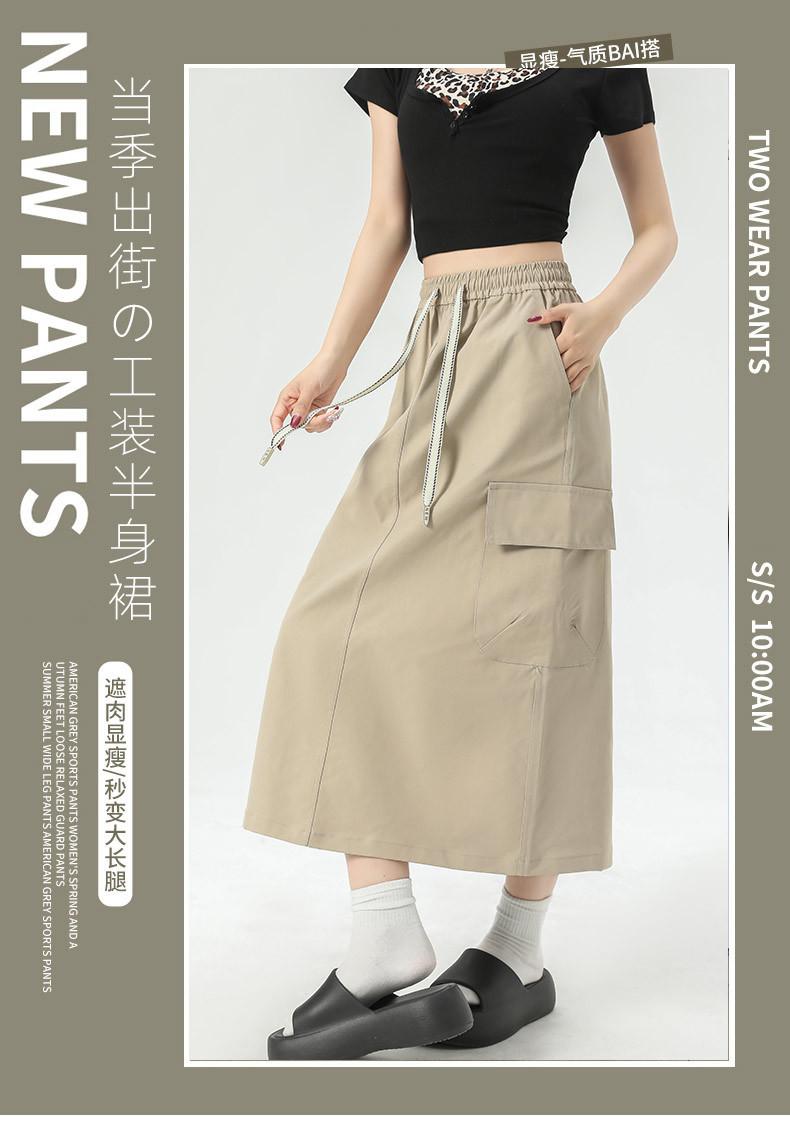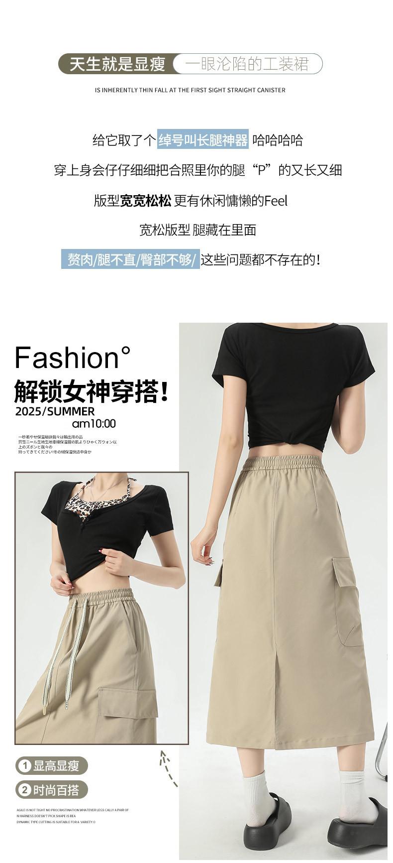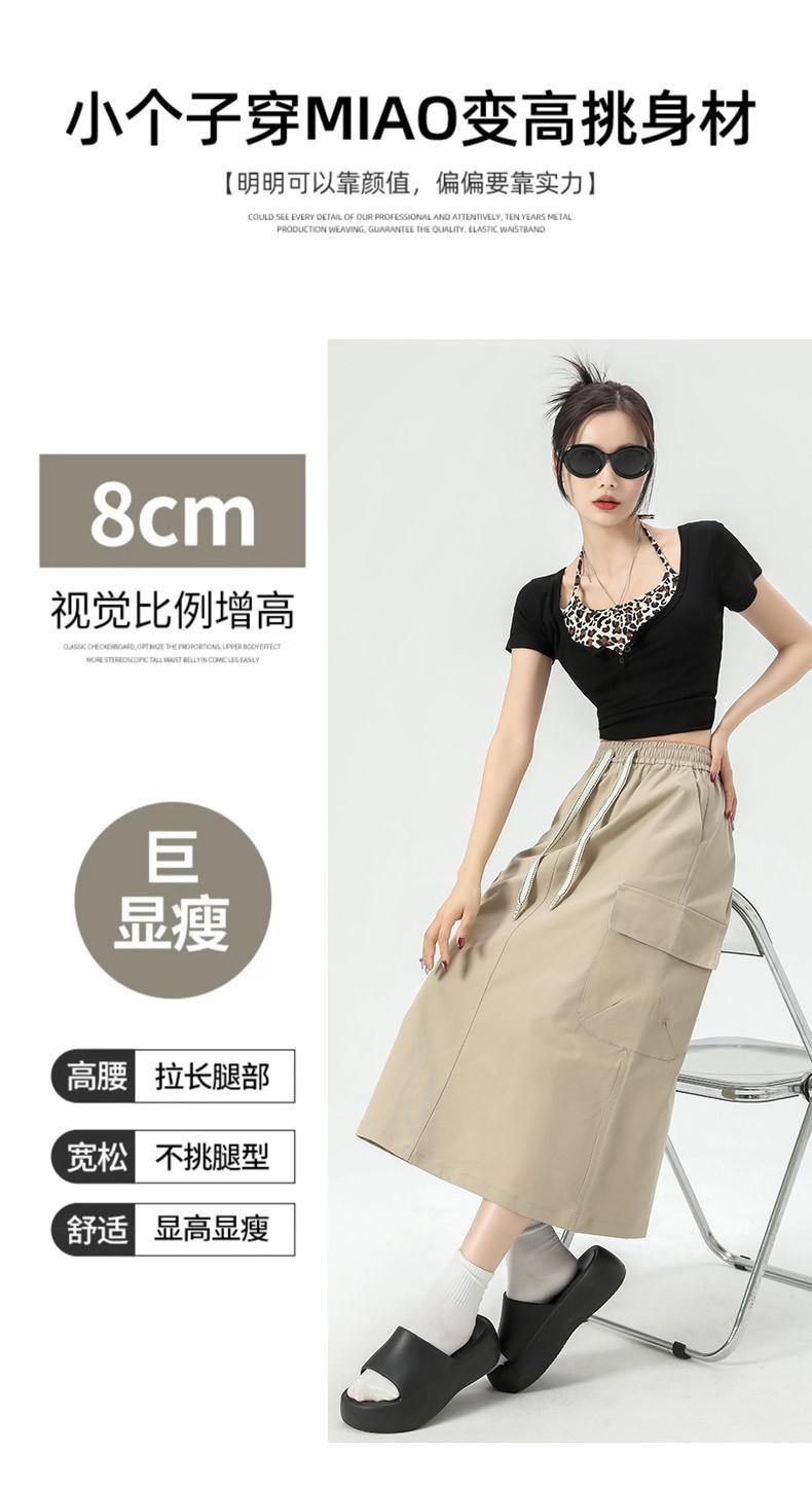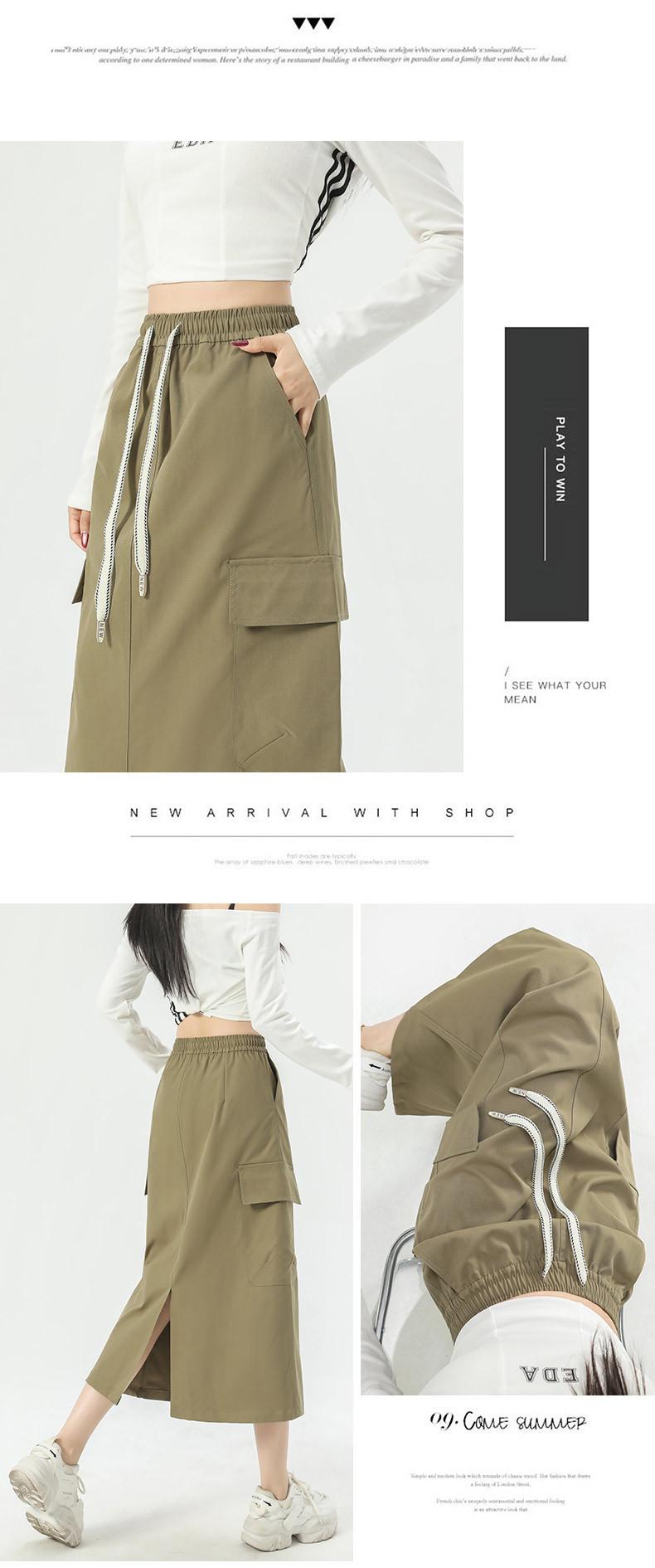 Falda de Trabajo Estilo Americano con Bolsillo Grande para Mujer Primavera y Verano 2025 Nueva Color Sólido Cubre Caderas Cintura Alta Adelgazante Abertura Falda Midi Línea A