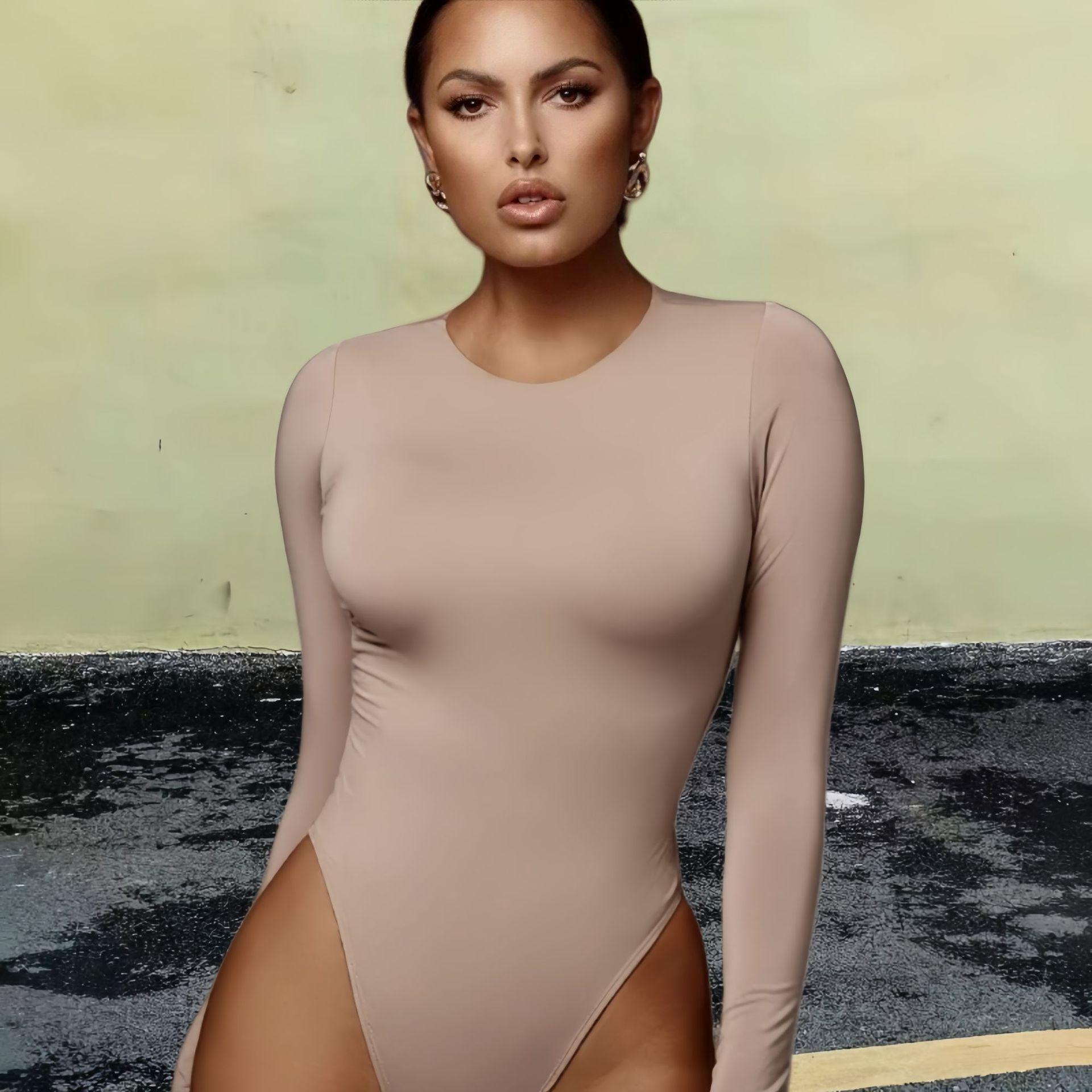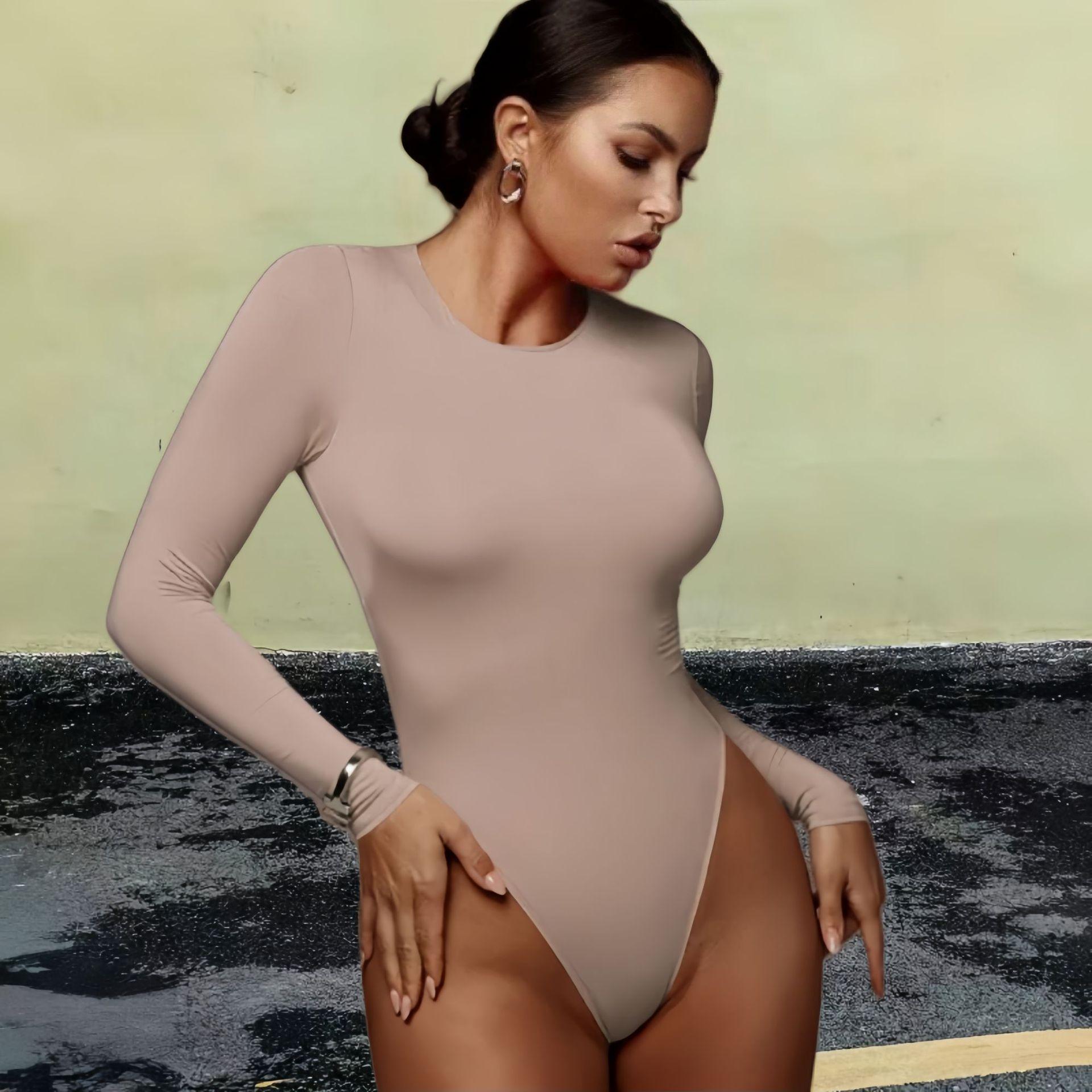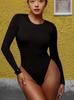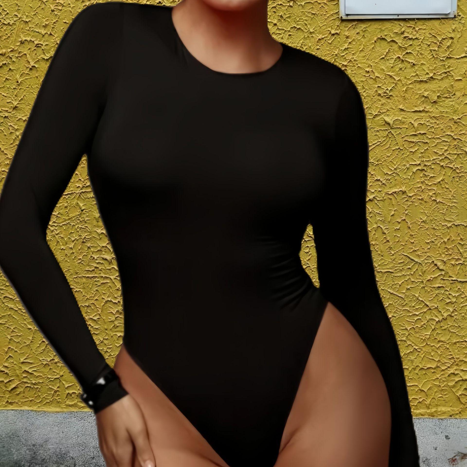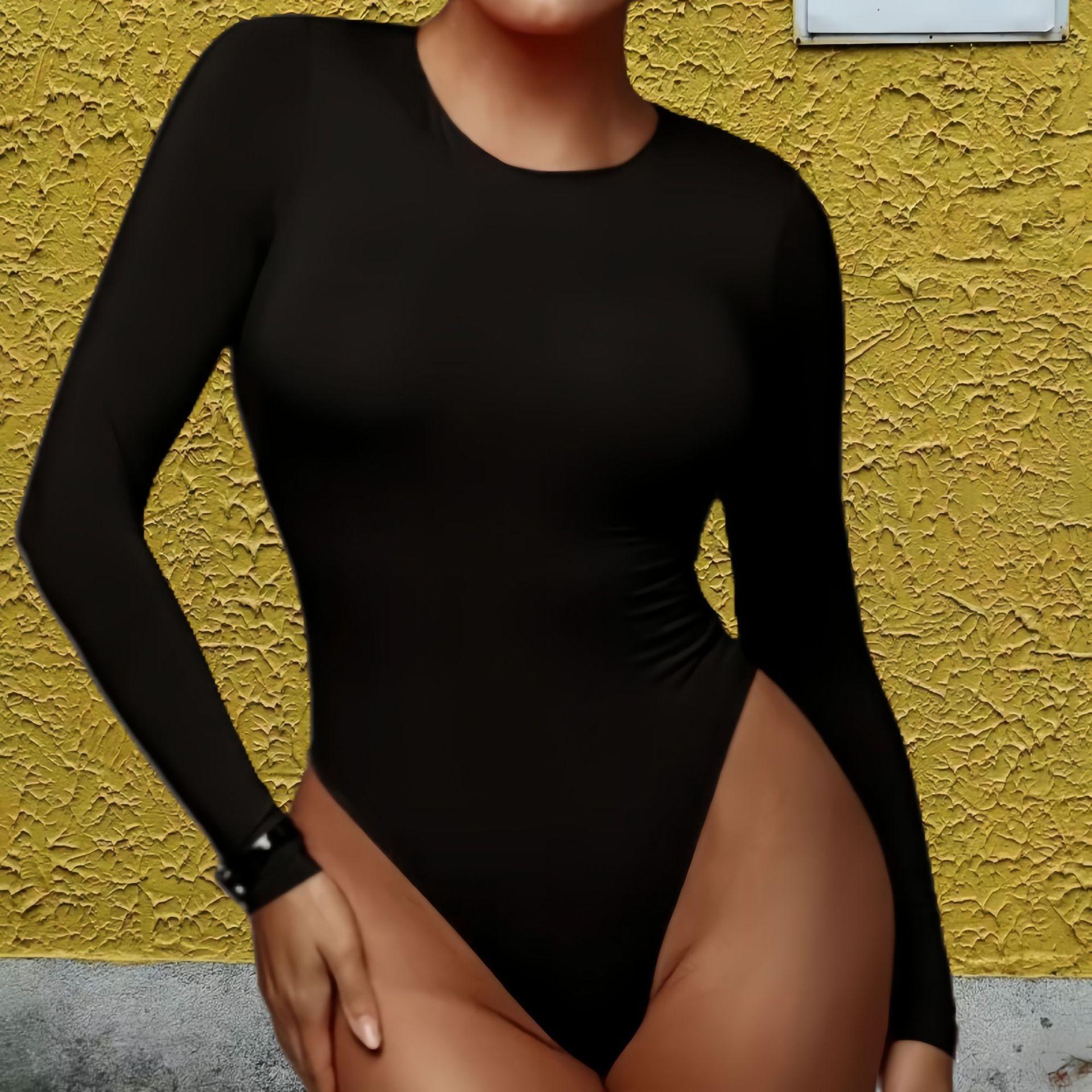 Mono sexy ajustado europeo y americano para mujer 2024 Otoño Nuevo Versátil Cuello Redondo Color Sólido Jersey Manga Larga Top
