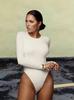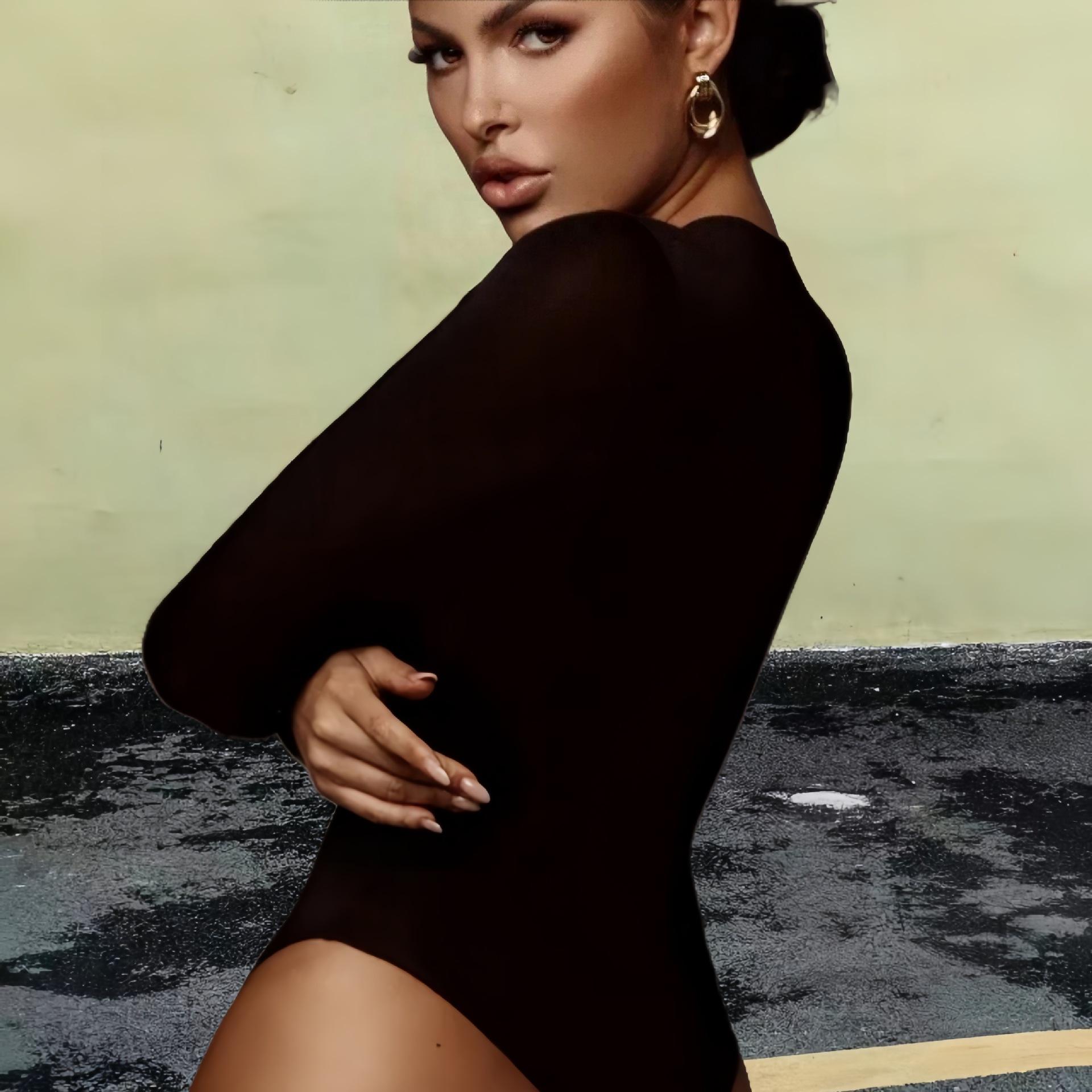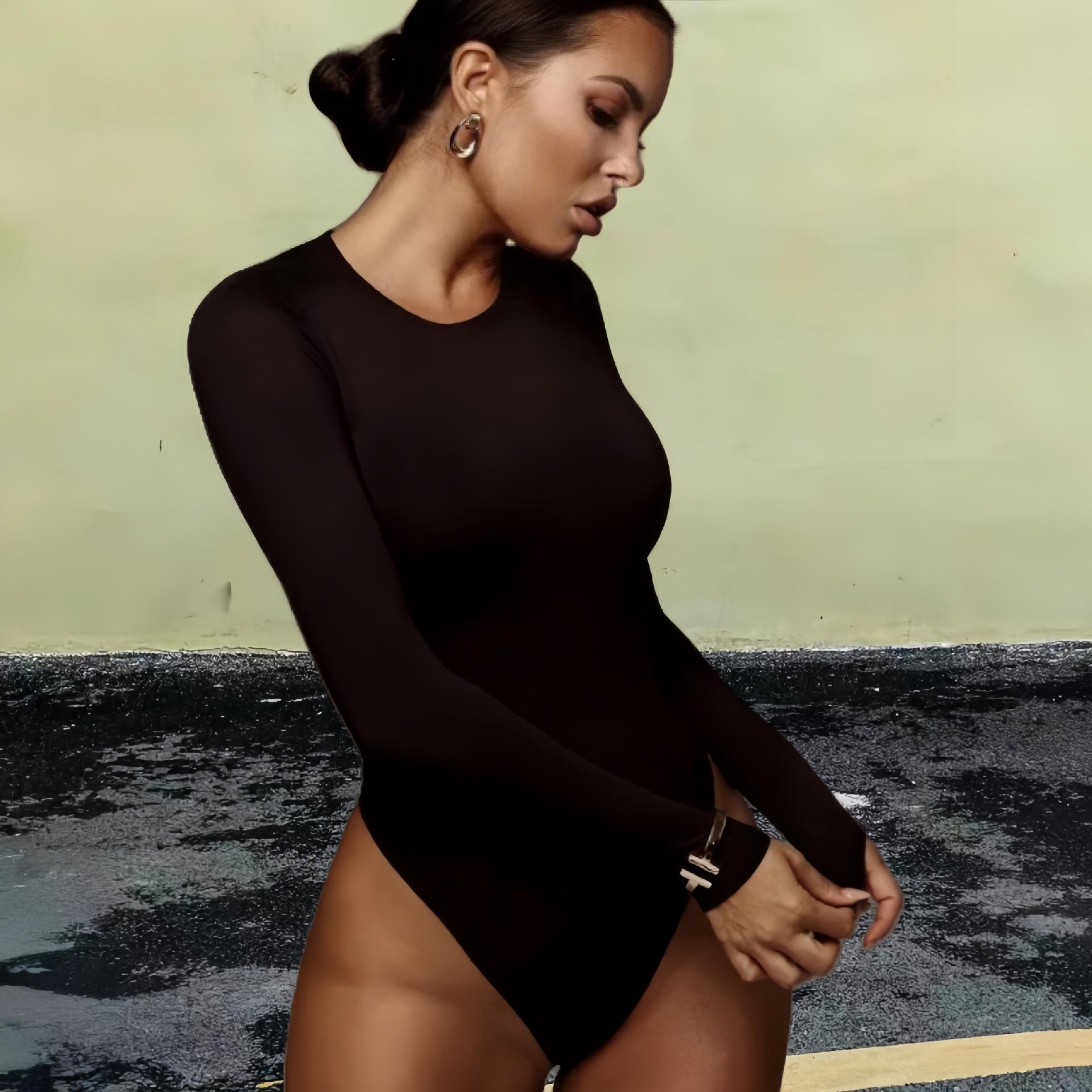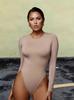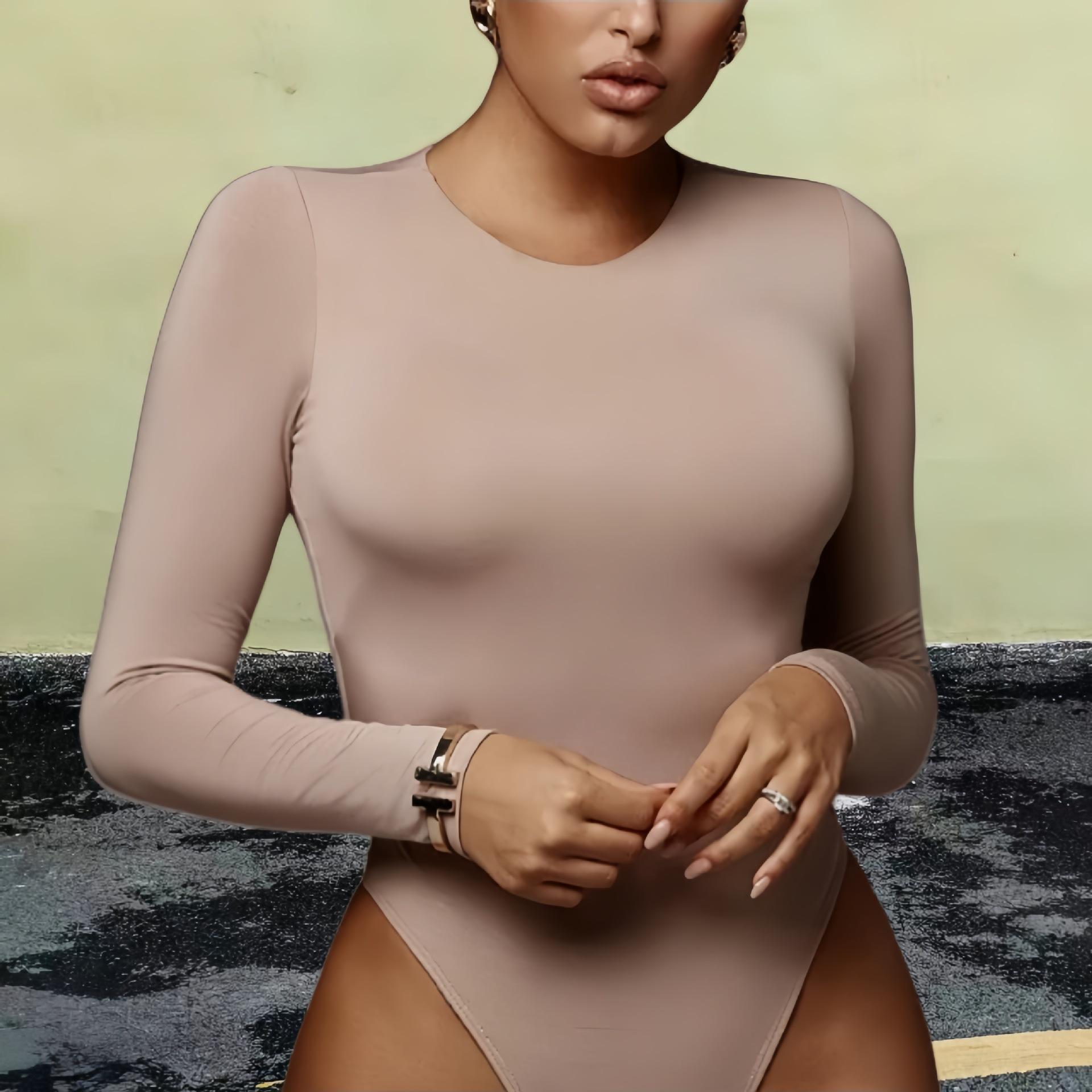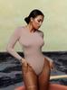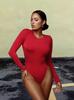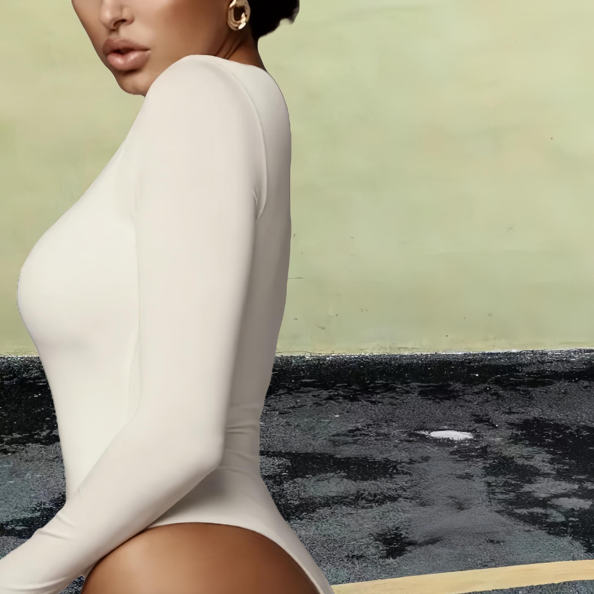 Mono sexy ajustado europeo y americano para mujer 2024 Otoño Nuevo Versátil Cuello Redondo Color Sólido Jersey Manga Larga Top