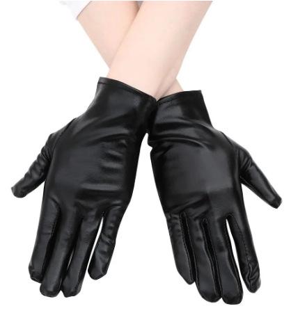 Guantes de Disfraz Metálicos Negros Héroe Noche Elásticos para Vestir Mano Negra Brillante Noche Elásticos para Vestir