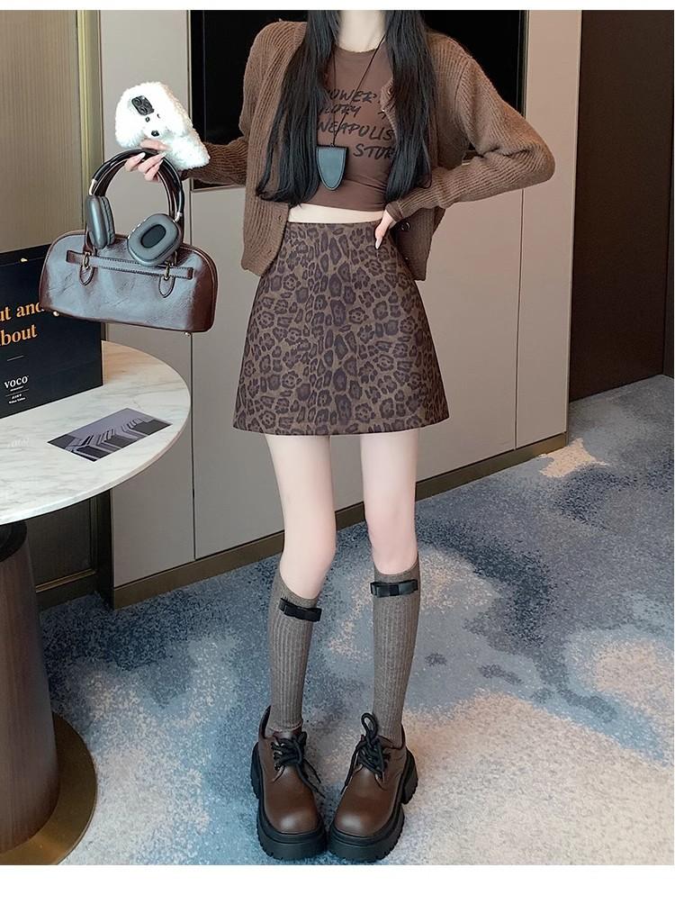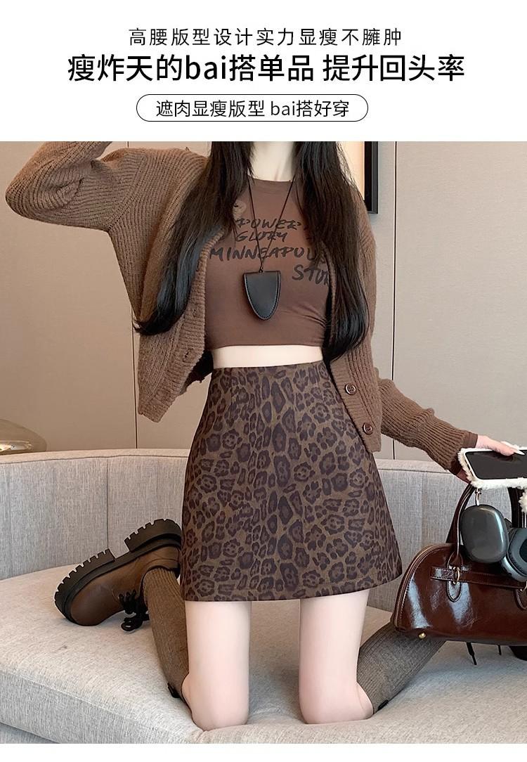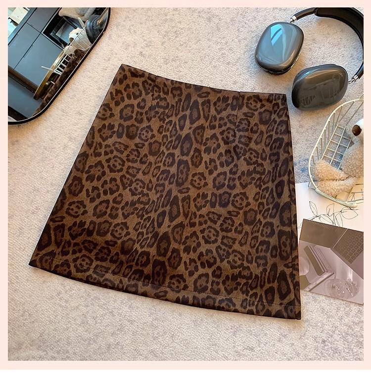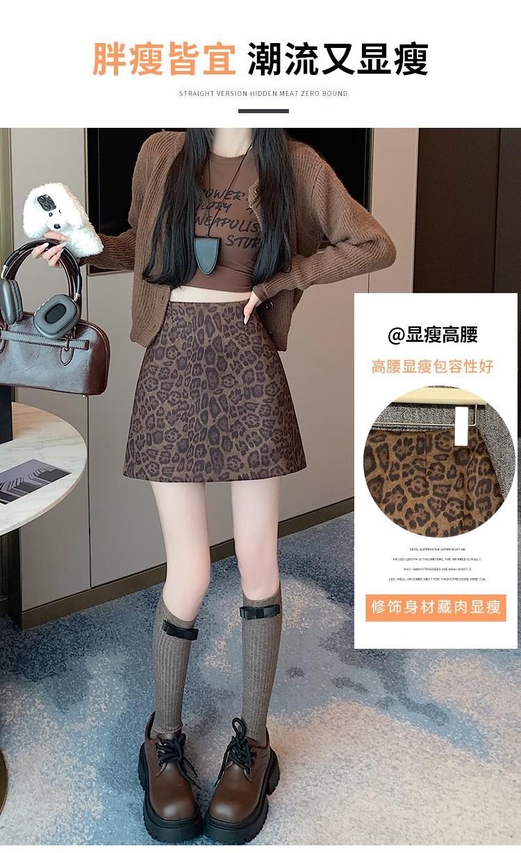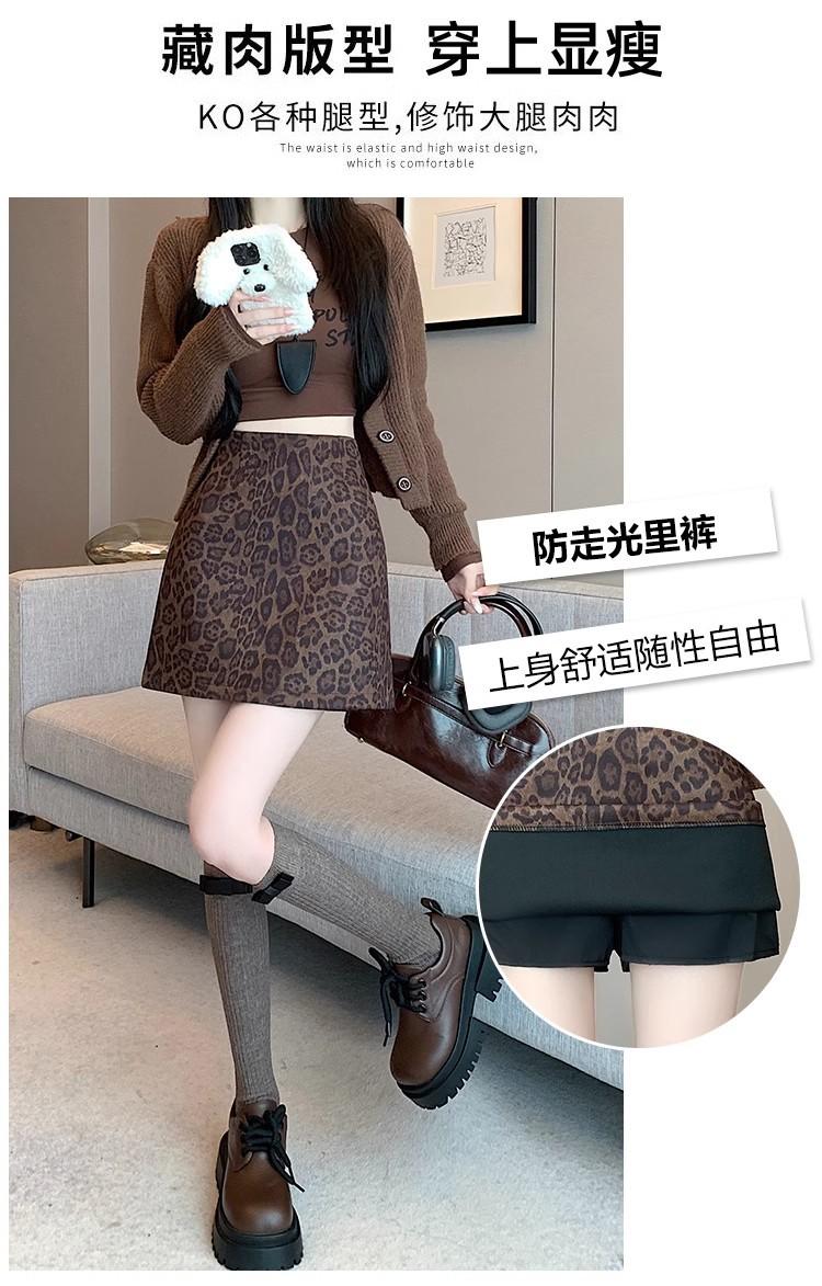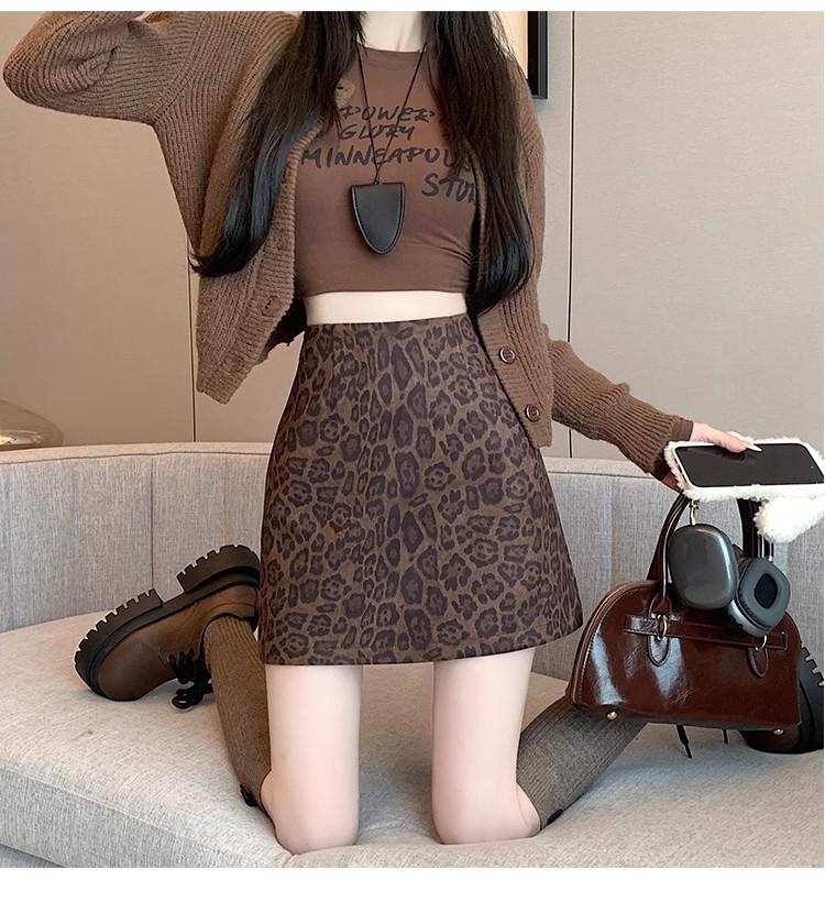 Falda de Cadera con Estampado de Leopardo para Mujer 2025 Nueva Otoño Pequeña Cintura Alta Adelgazante Línea A Antitransparente Versátil Falda Corta
