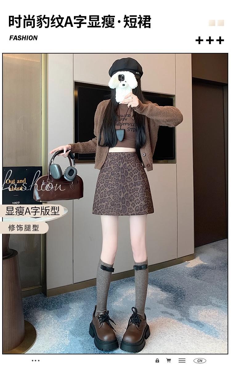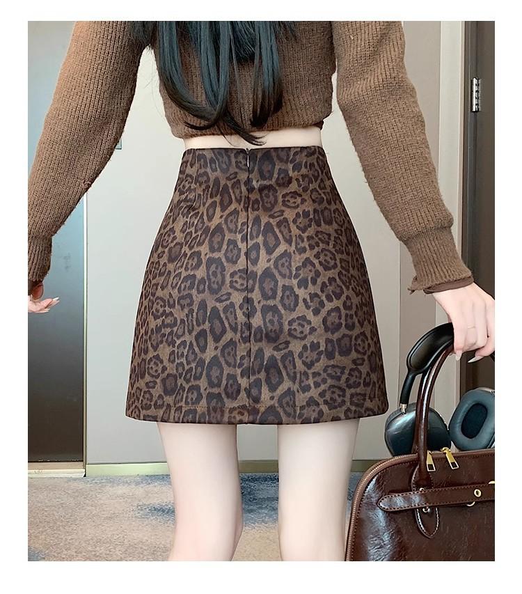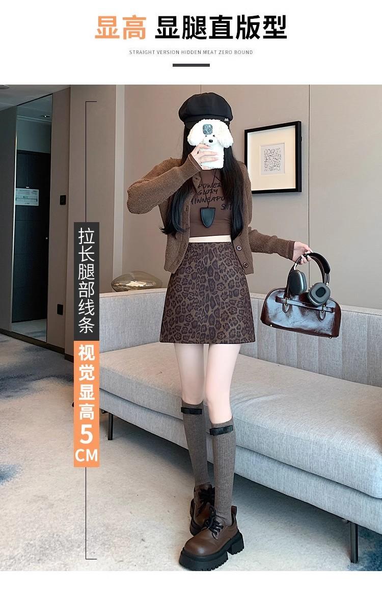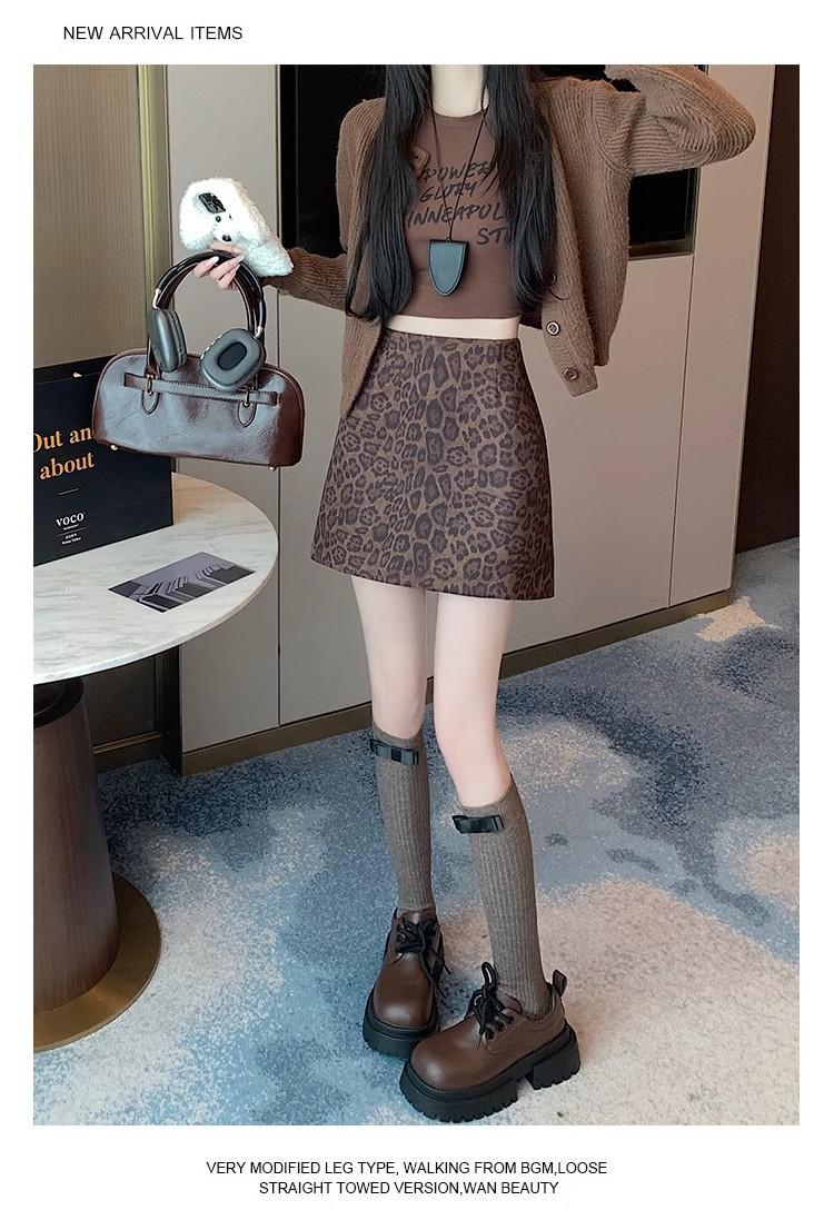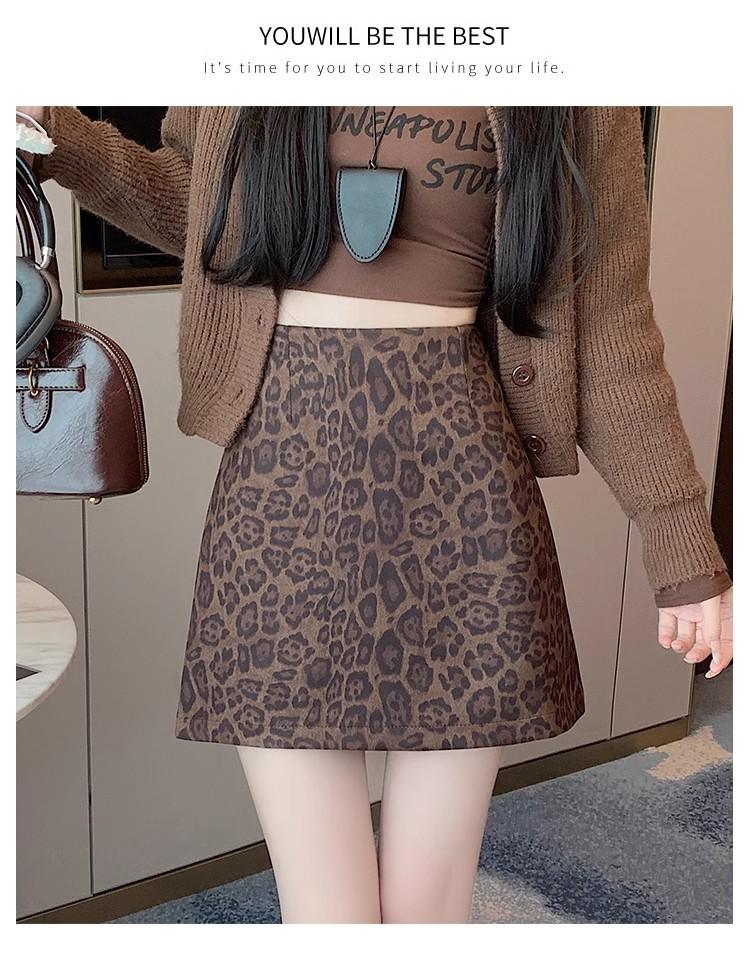 Falda de Cadera con Estampado de Leopardo para Mujer 2025 Nueva Otoño Pequeña Cintura Alta Adelgazante Línea A Antitransparente Versátil Falda Corta