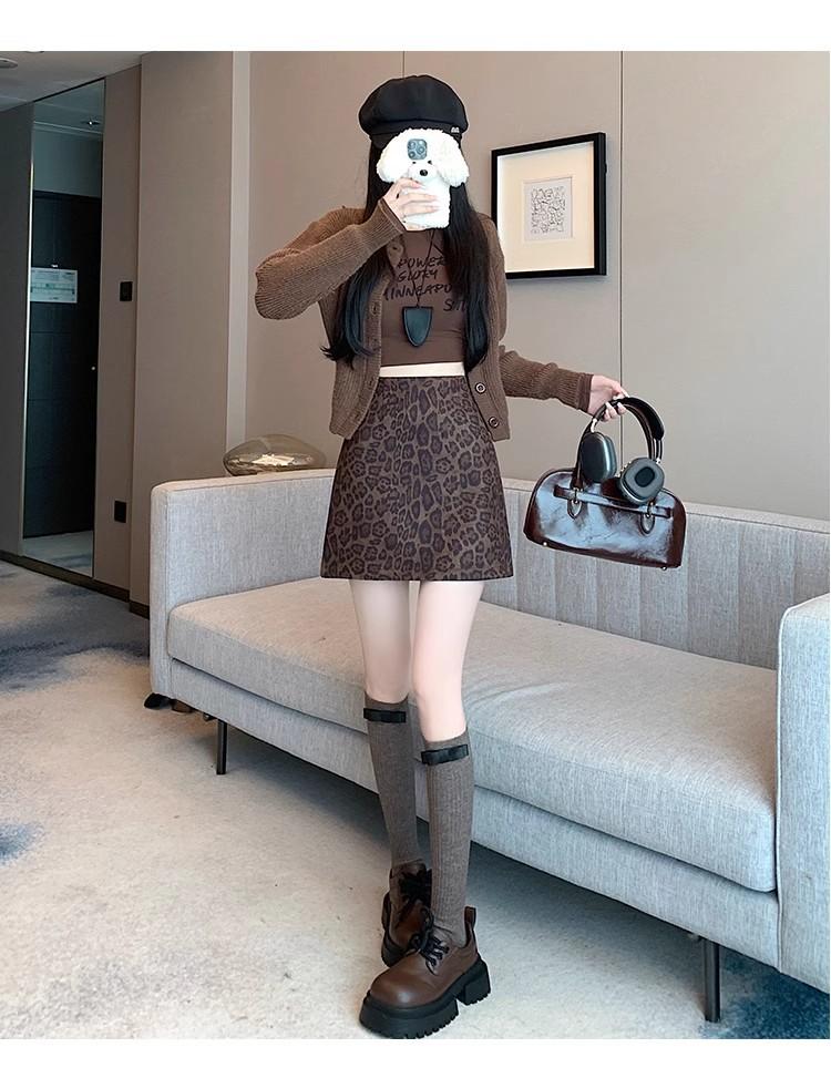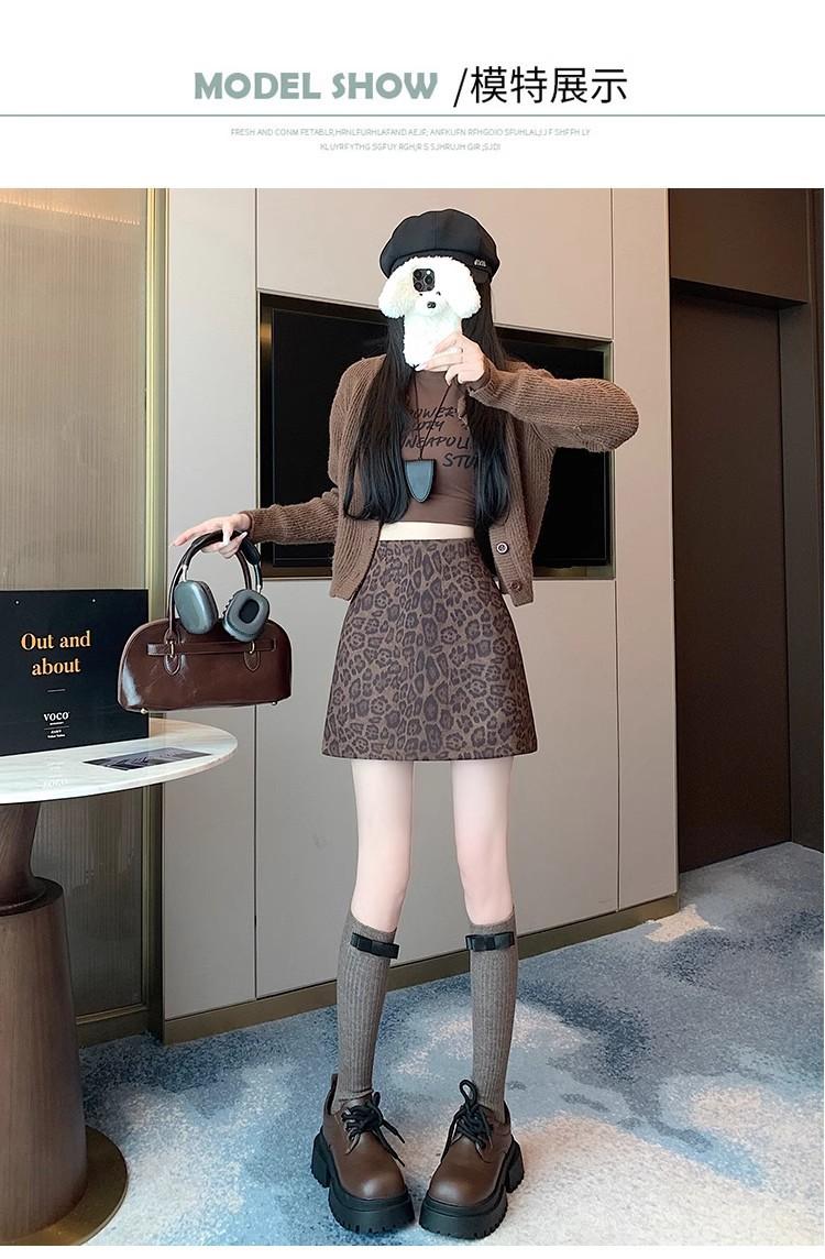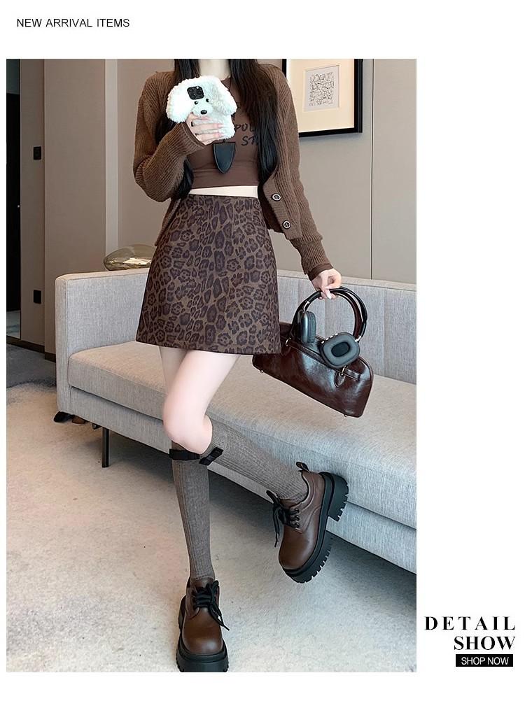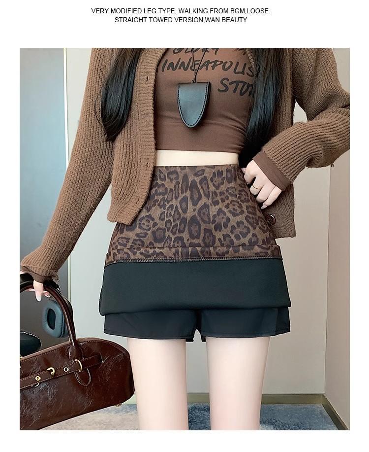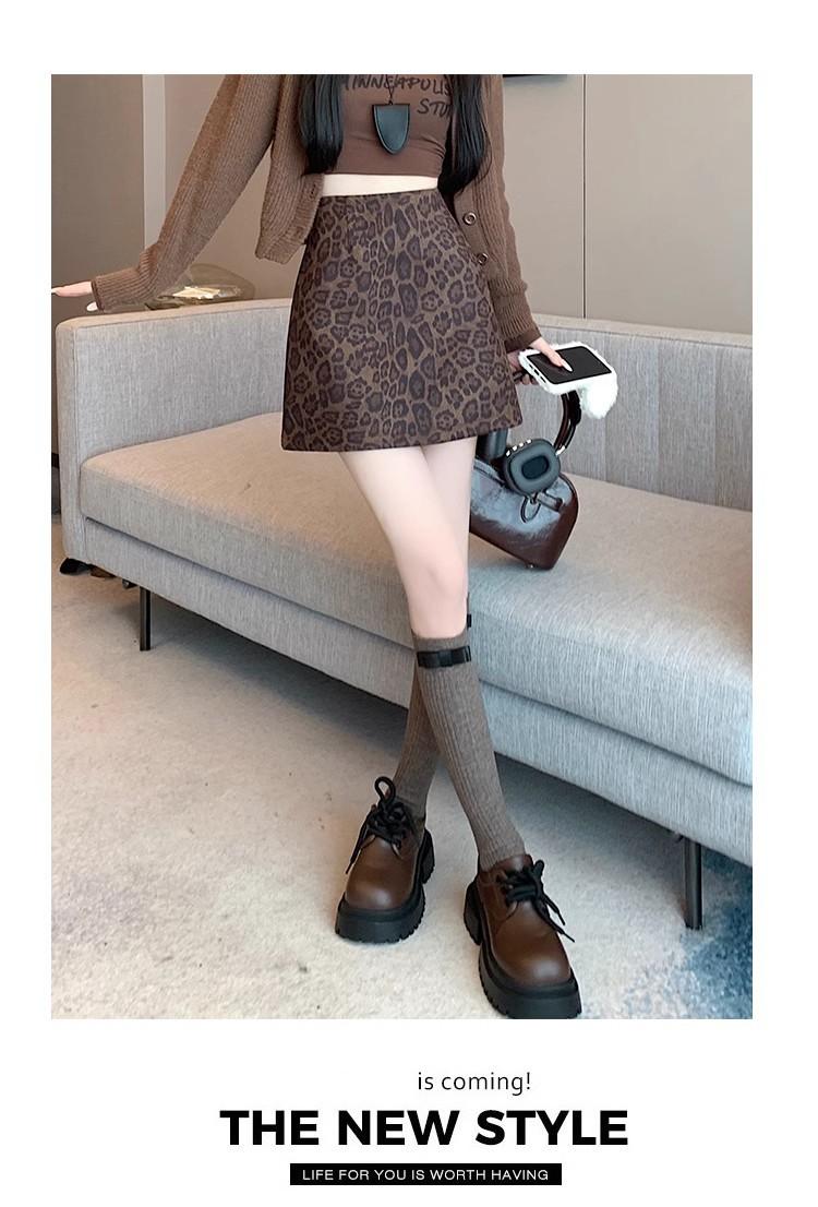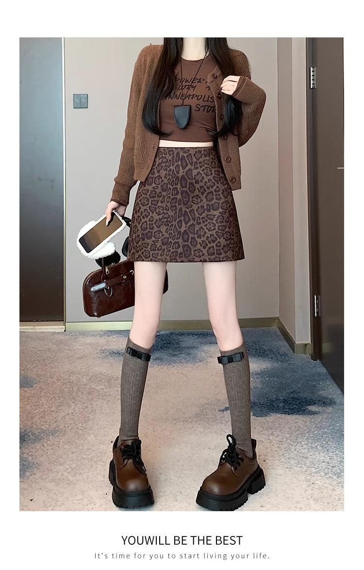 Falda de Cadera con Estampado de Leopardo para Mujer 2025 Nueva Otoño Pequeña Cintura Alta Adelgazante Línea A Antitransparente Versátil Falda Corta