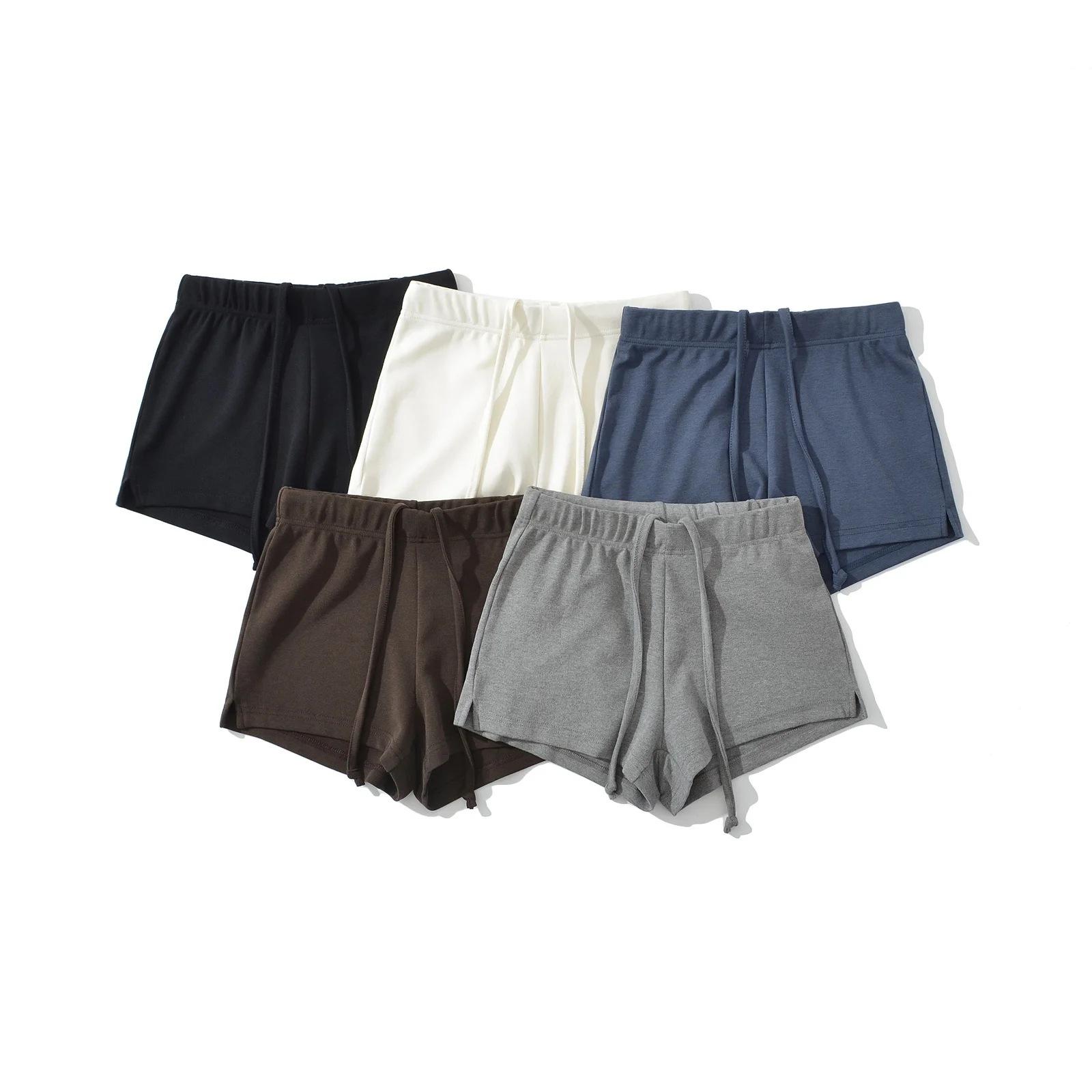 Shorts Casuales Estilo Americano 2025 Sexy Cintura Baja Elástico Cordón Ajustable Tejido de Alta Elasticidad Deportes Pantalones Cortos Hot Pants Abertura Pierna Ancha