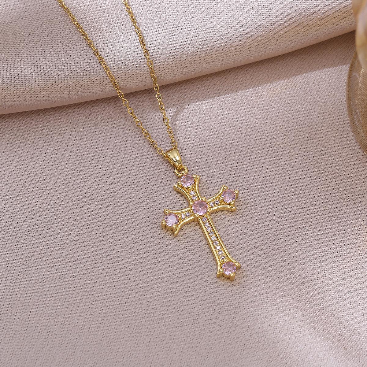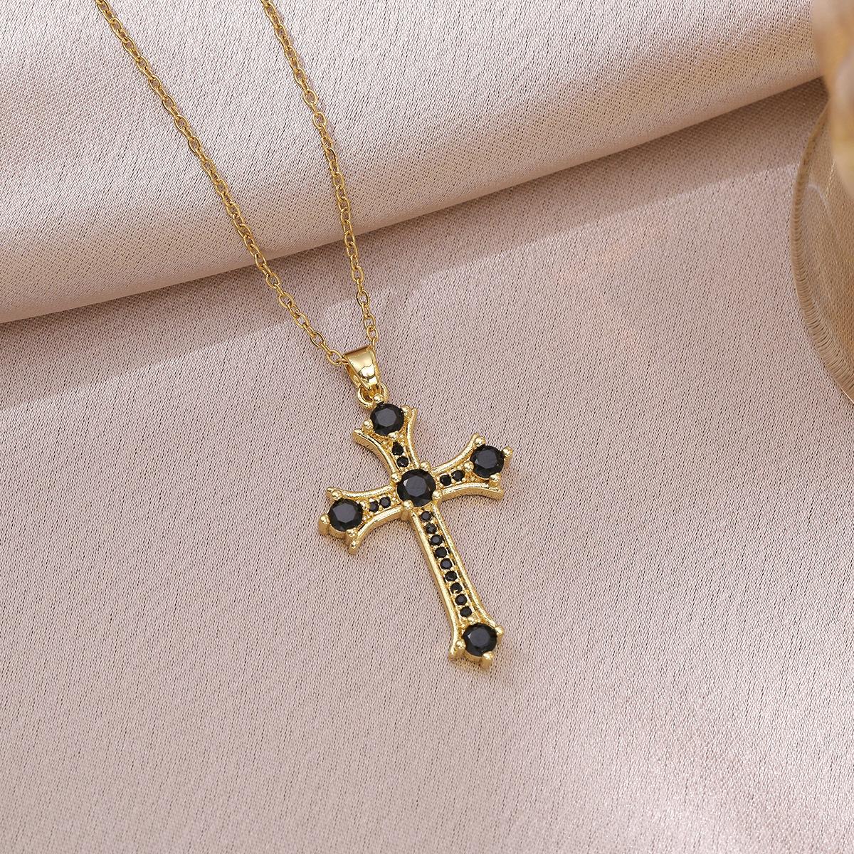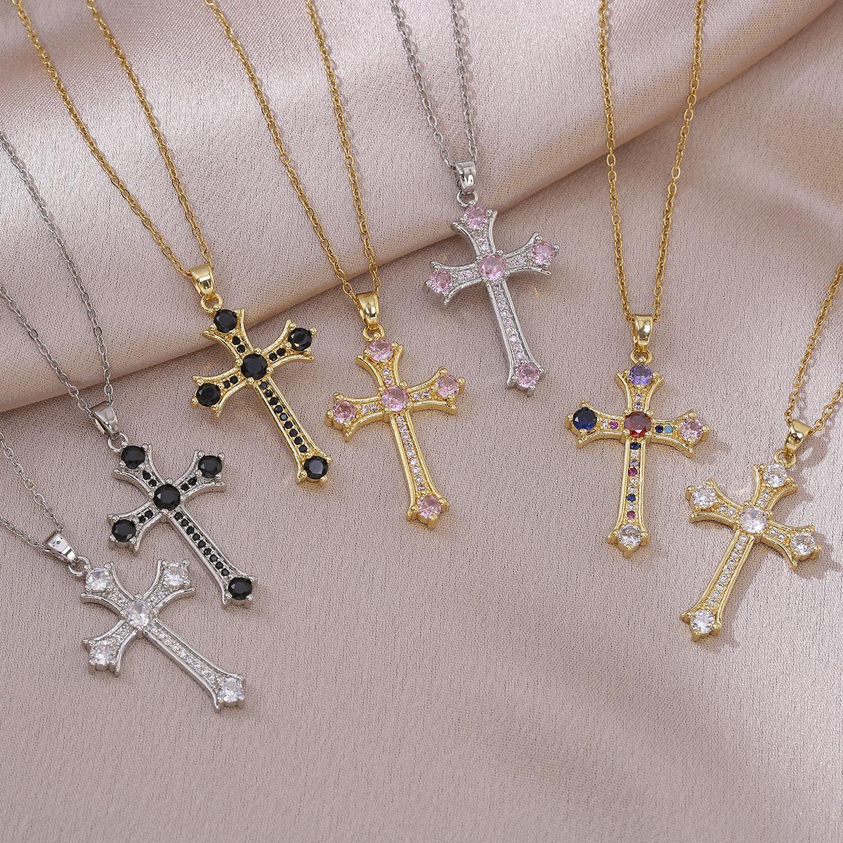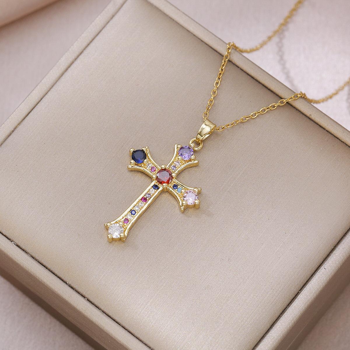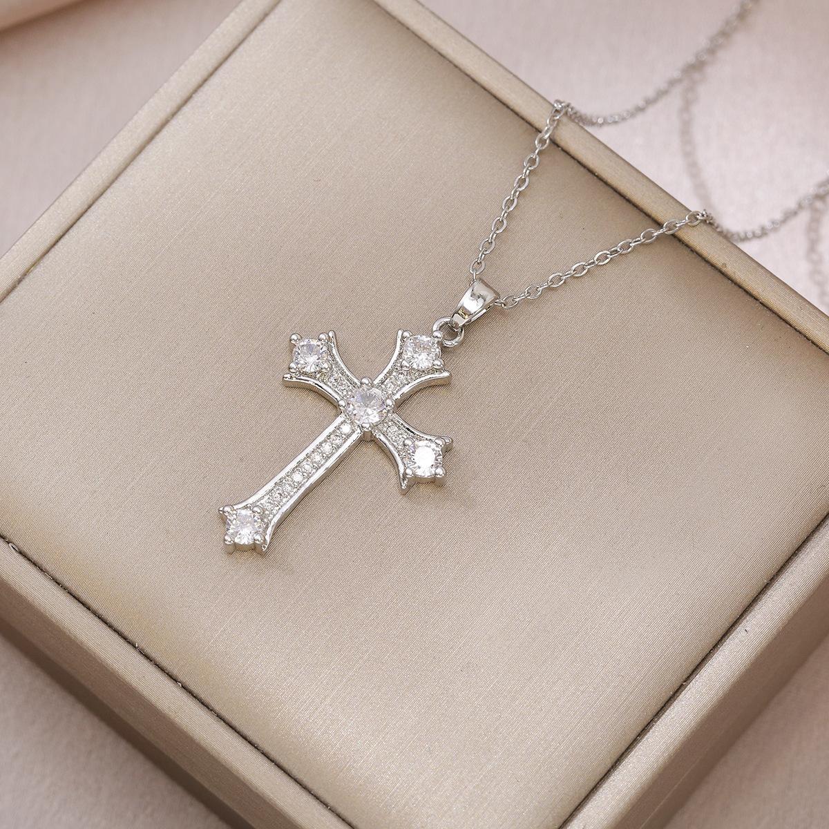 Collar de mujer con cruz cruzada, colgante geométrico de circonita, diseño retro, lleno de diamantes, joyería cruzada.