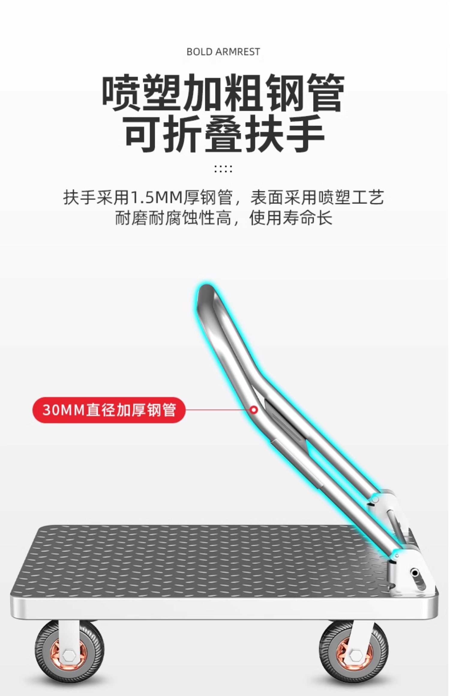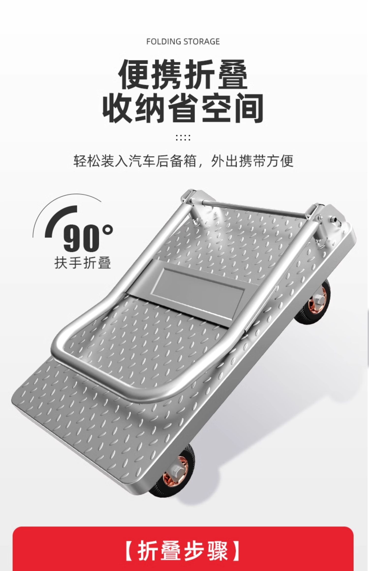 Carretilla de Placa de Acero Od59 Carretilla de Carga Carretilla Doméstica de Plataforma Plana Remolque Portátil Plegable