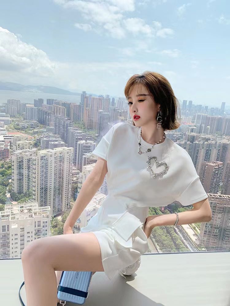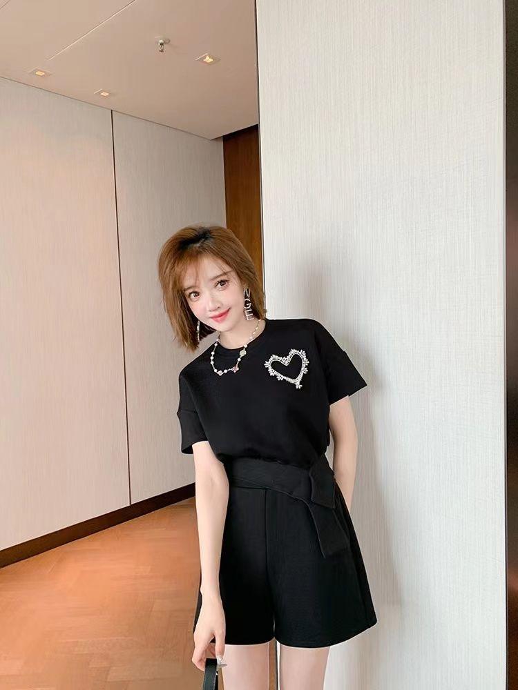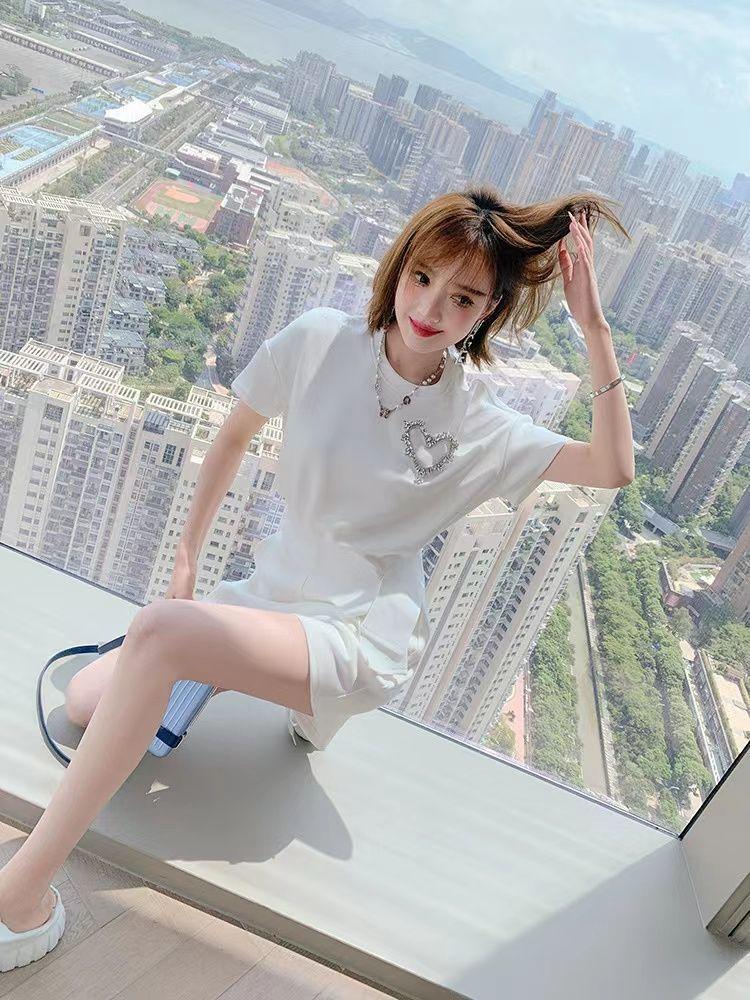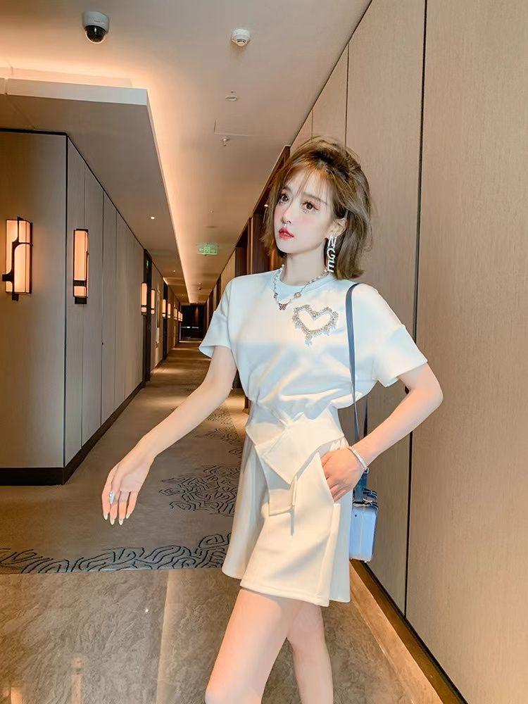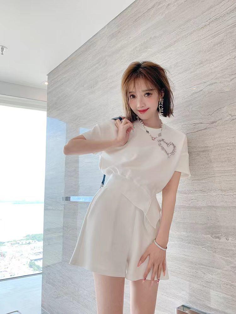 Traje de verano transfronterizo para mujer con sobrepeso, blanco, casual, deportivo, a la moda, que reduce la edad, de manga corta, shorts, holgado, conjunto de dos piezas