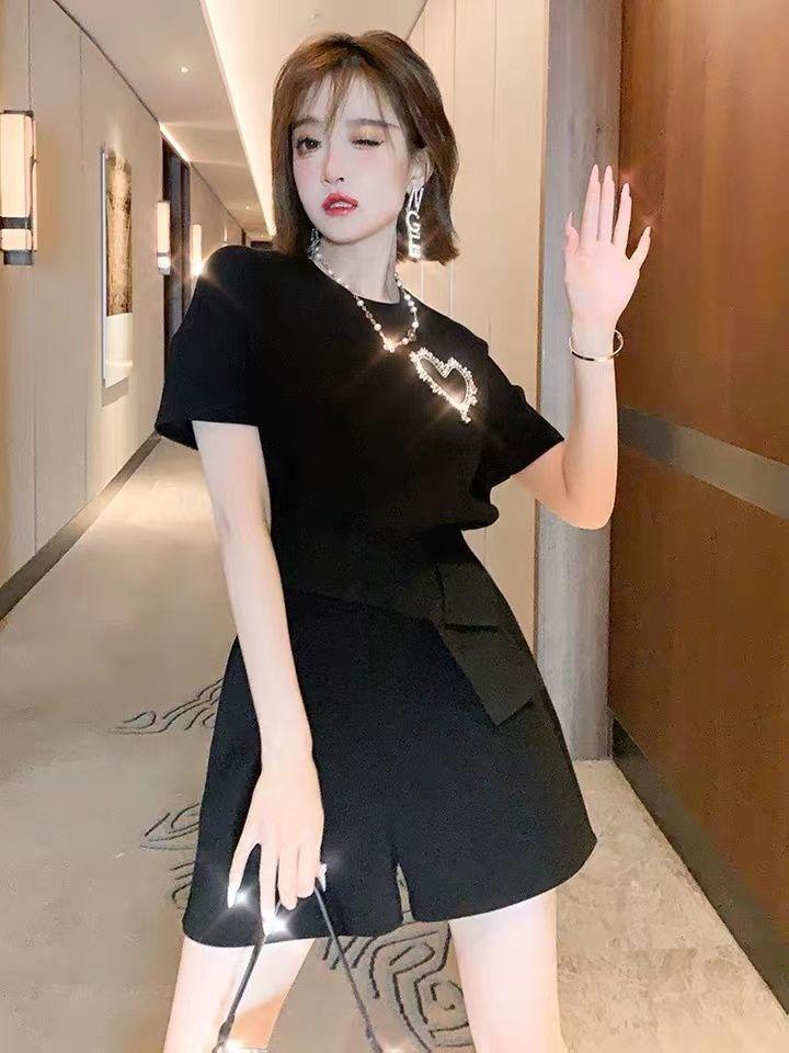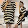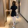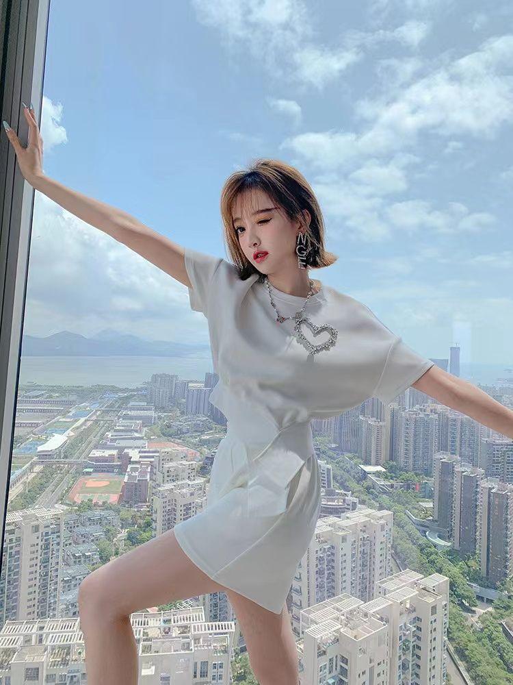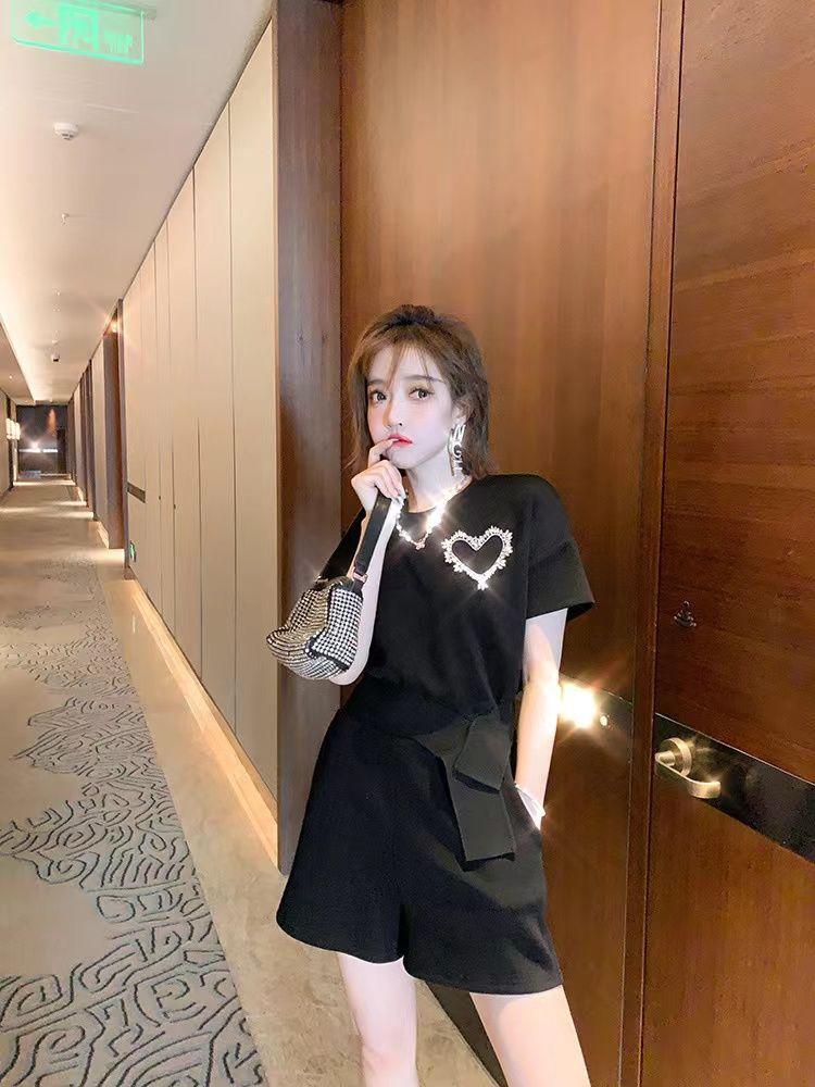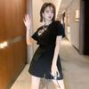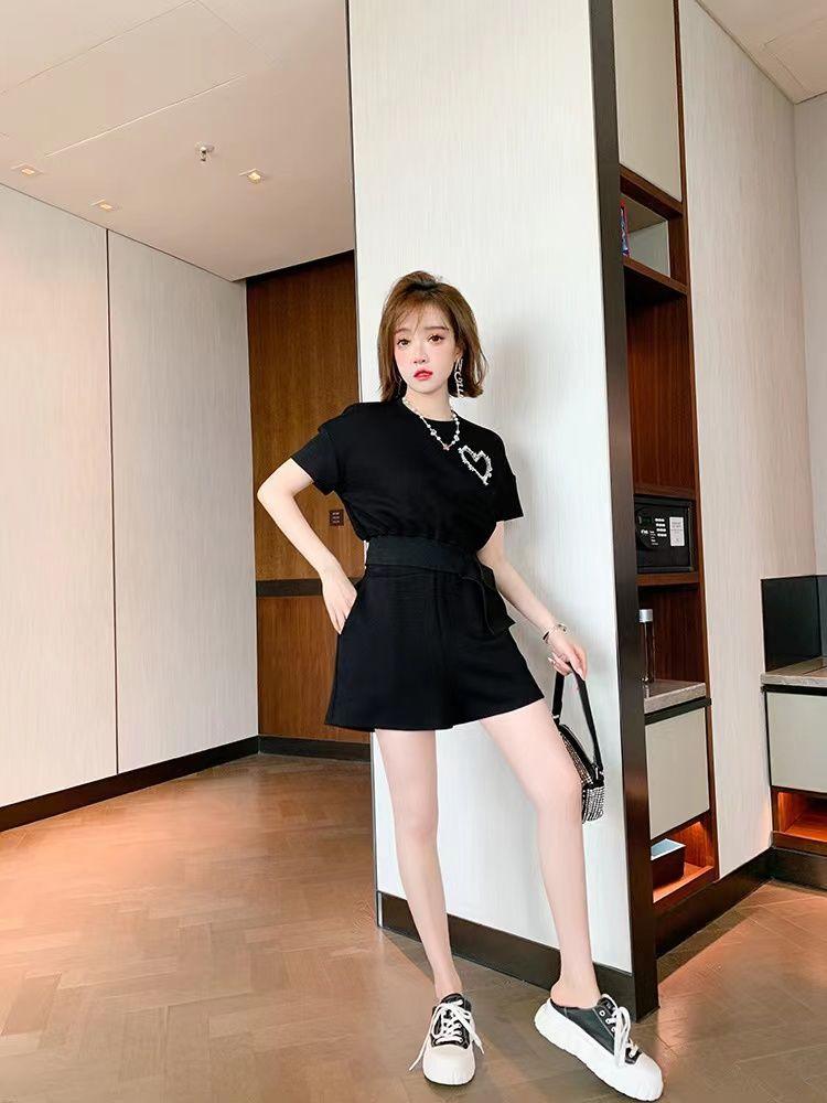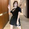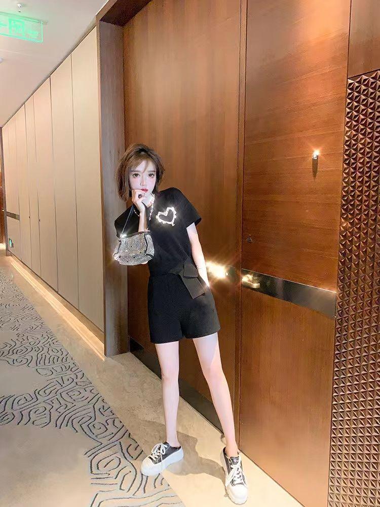 Traje de verano transfronterizo para mujer con sobrepeso, blanco, casual, deportivo, a la moda, que reduce la edad, de manga corta, shorts, holgado, conjunto de dos piezas