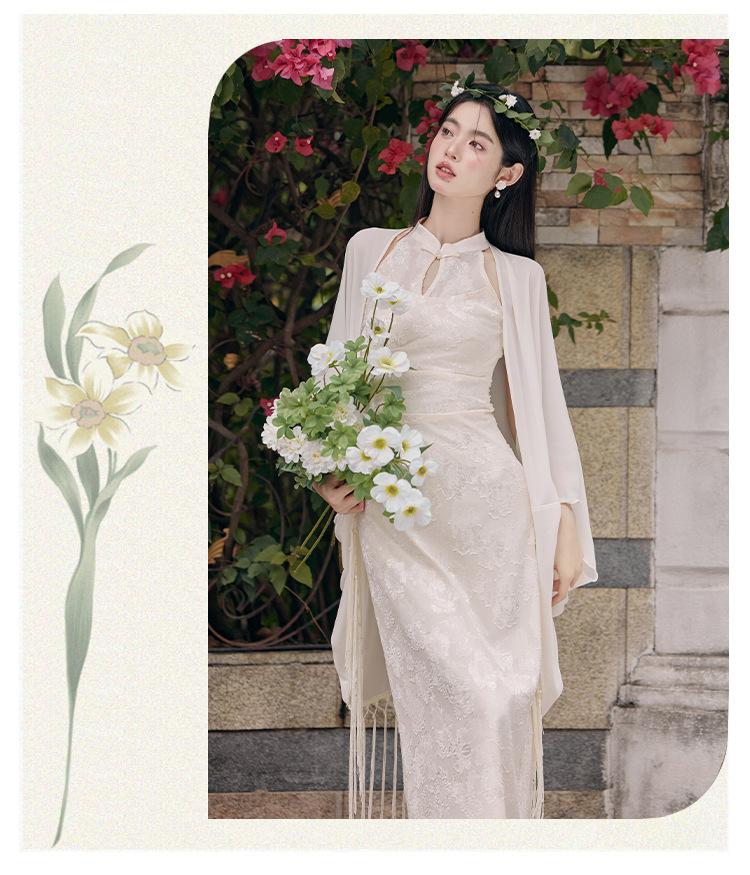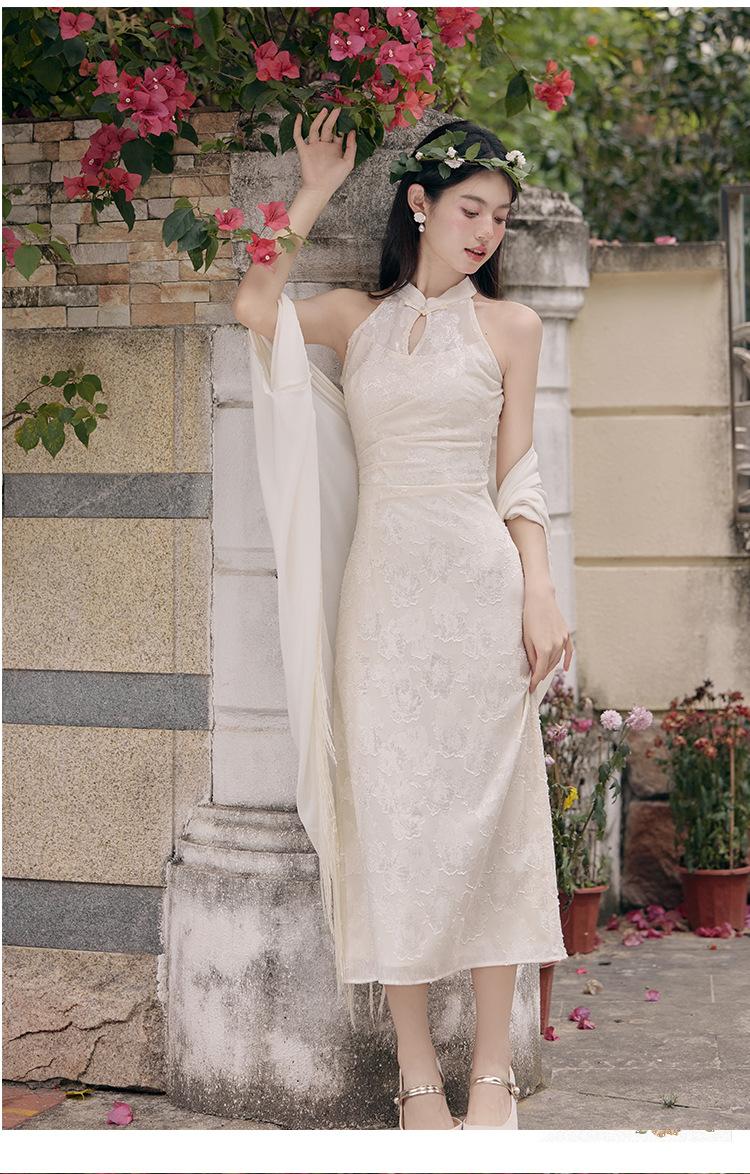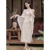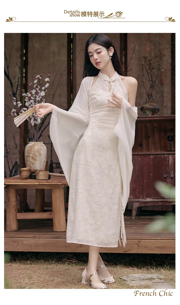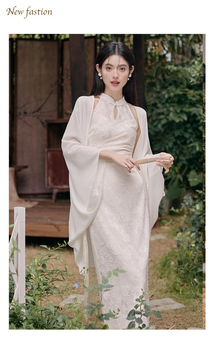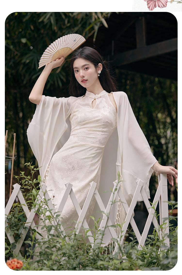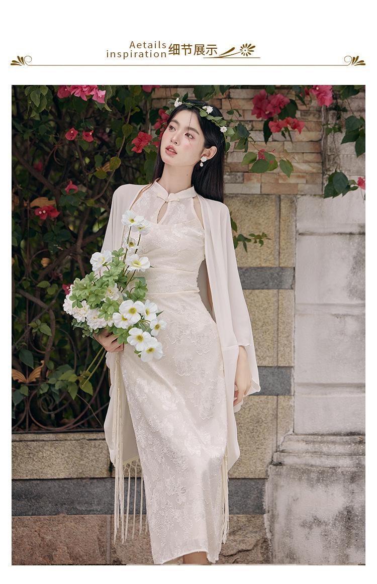 Foto real nuevo estilo chino sensación fresca cheongsam mejorado cárdigan vestido de dos piezas 40