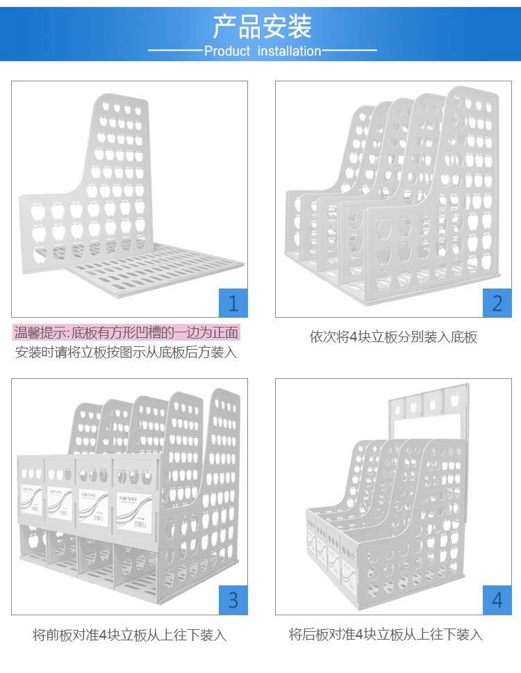 Estante para archivos de plástico engrosado directo de fábrica, barra para archivos cuádruple, suministros de oficina, caja de almacenamiento de archivos de escritorio