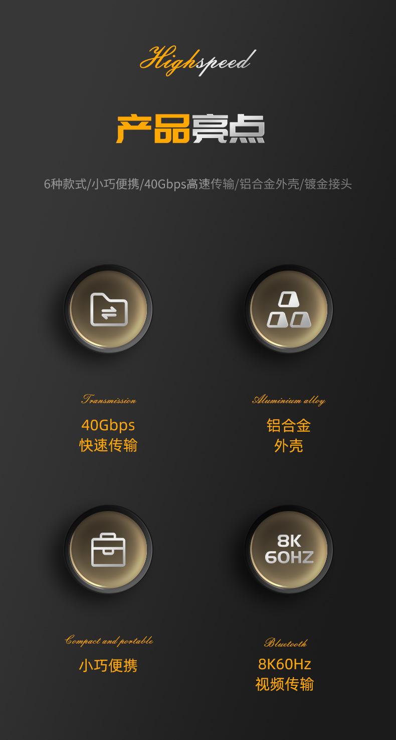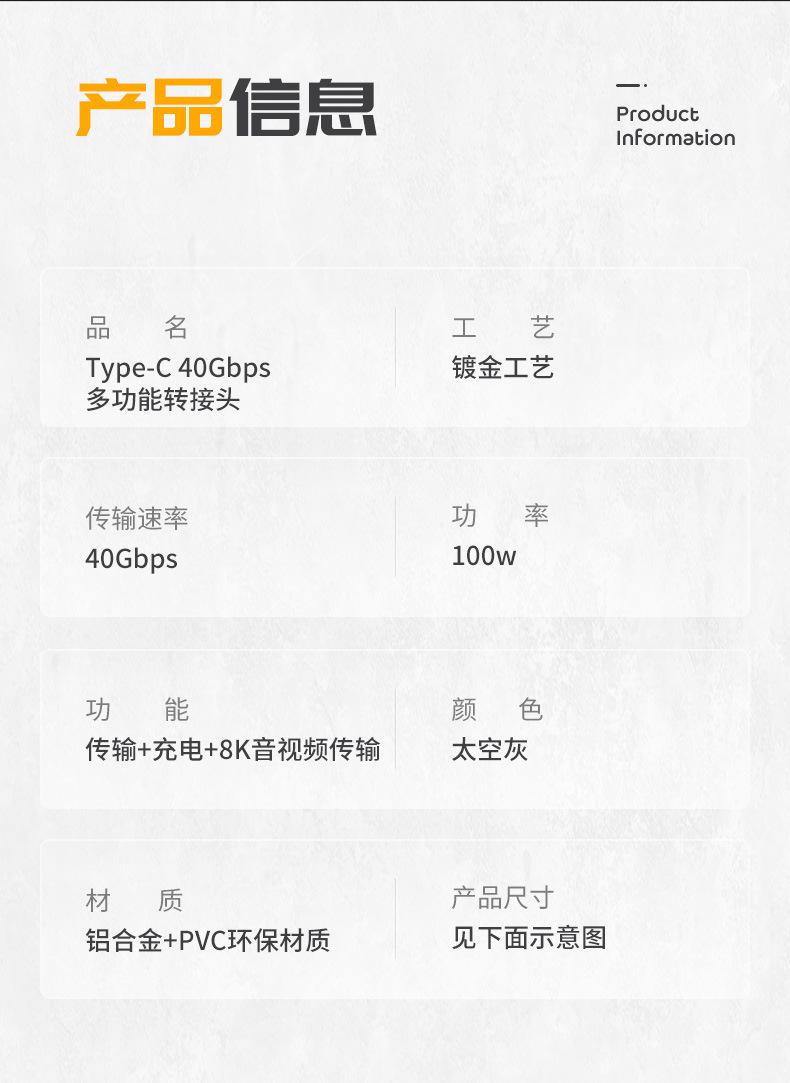 Support 8 K60HZ screen PD100W fast charging adapter 40Gbps transmission Type-c full-function adapter