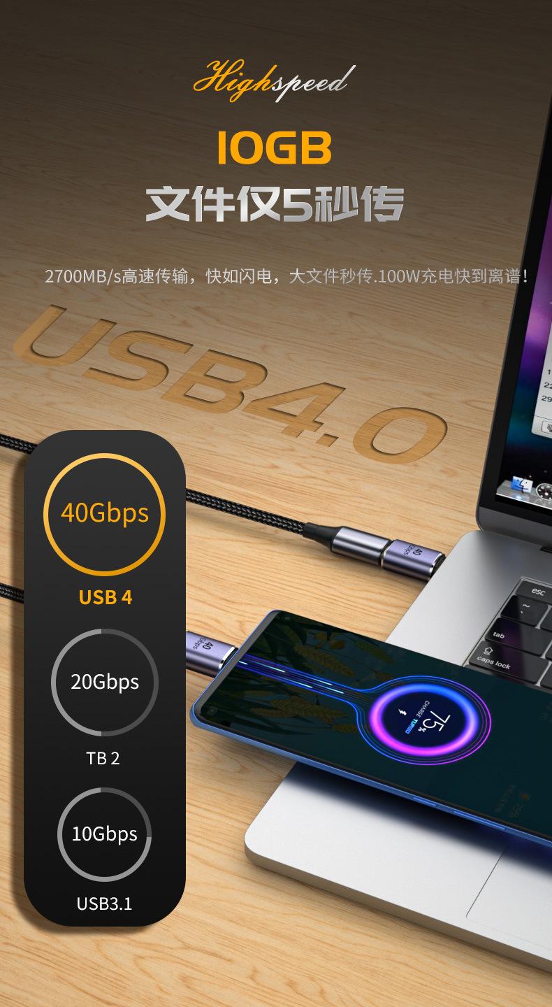 Adaptador USB4 Tipo C macho y hembra 100W carga rápida adaptador para computadora portátil lightning 4 convertidor de línea de datos