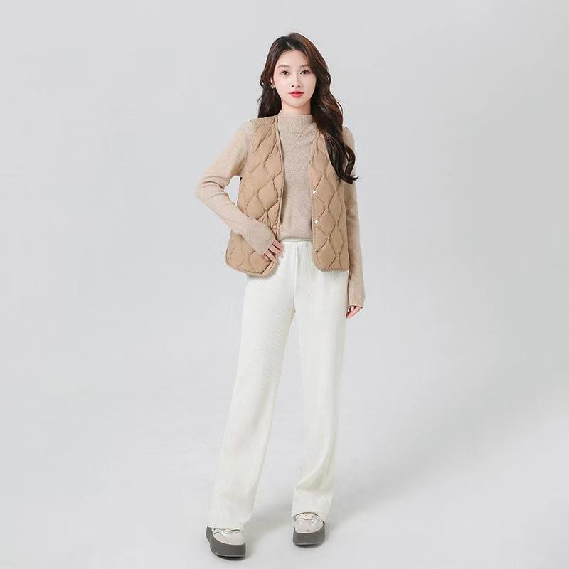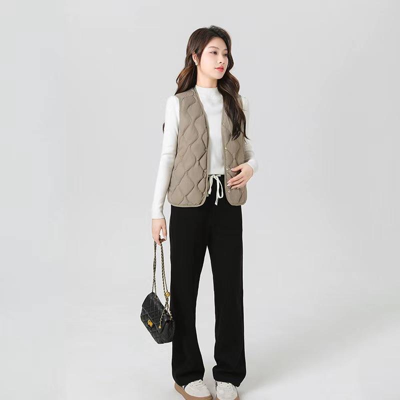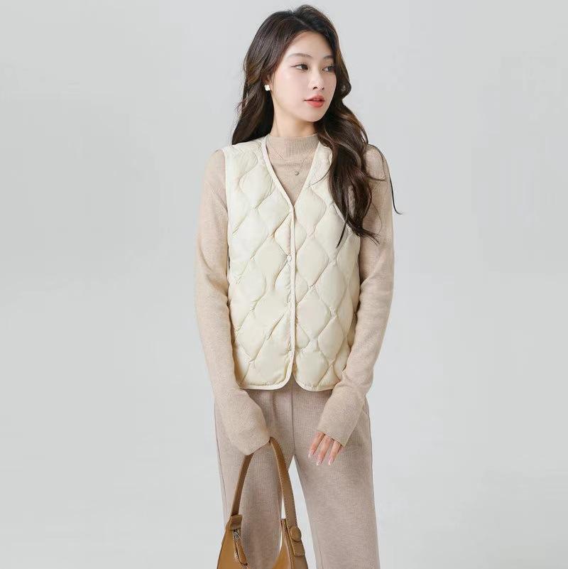 2024 Otoño e Invierno Nuevo Chaleco de Plumas Corto de Plumón de Pato Blanco para Mujer Ligero Chaleco con Cuello en V Chaqueta Chaleco Forro Interior