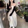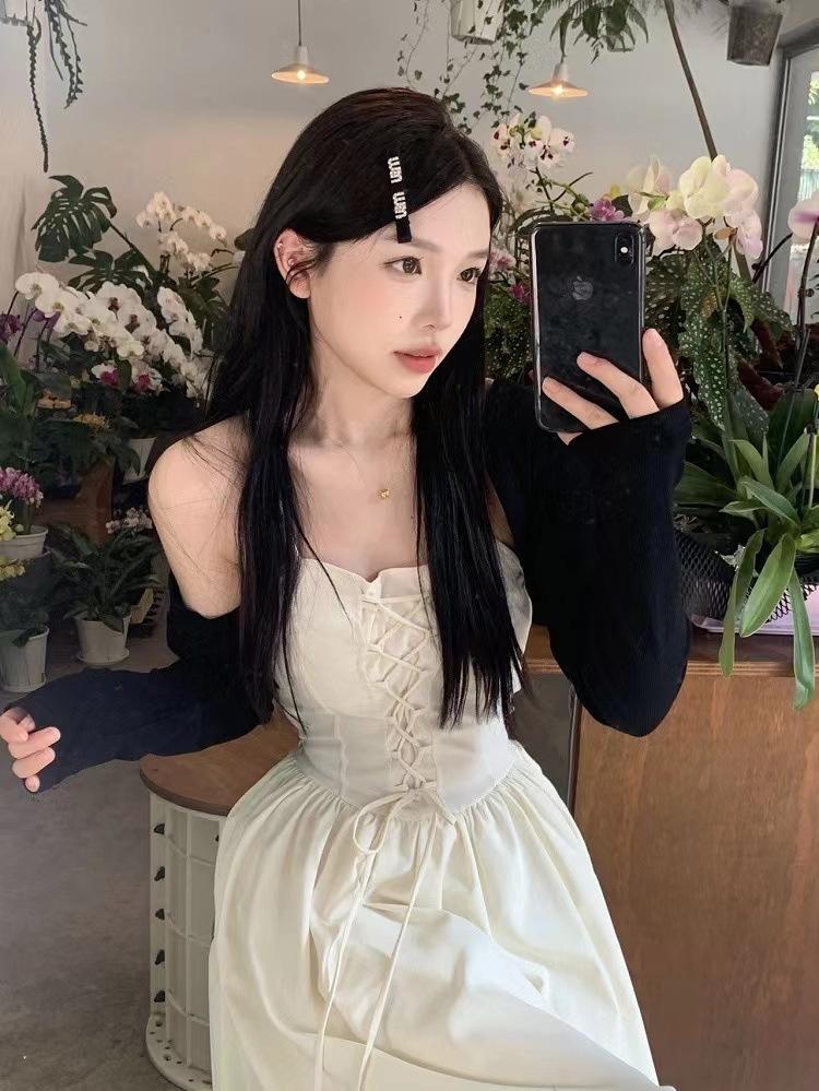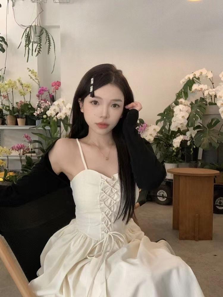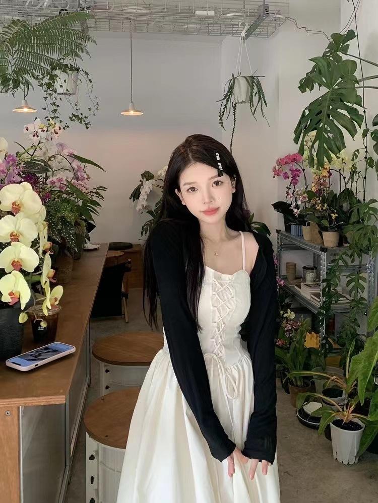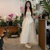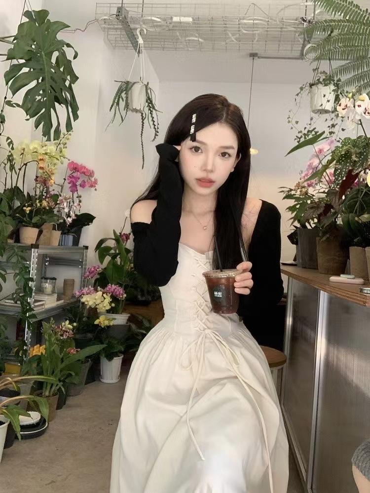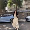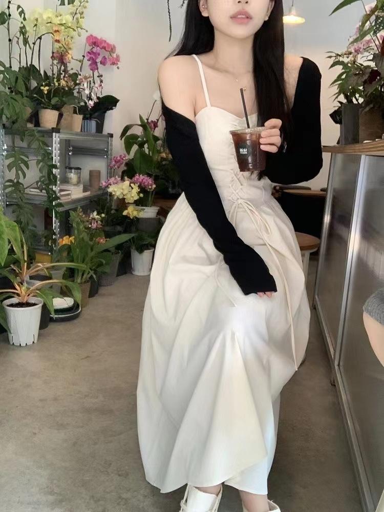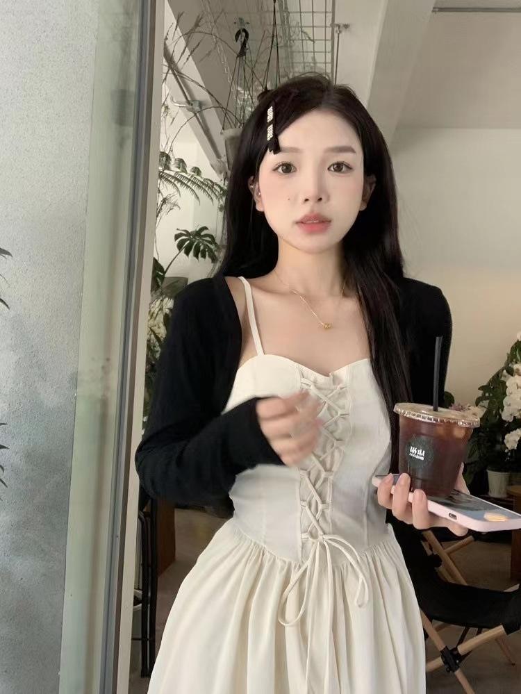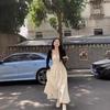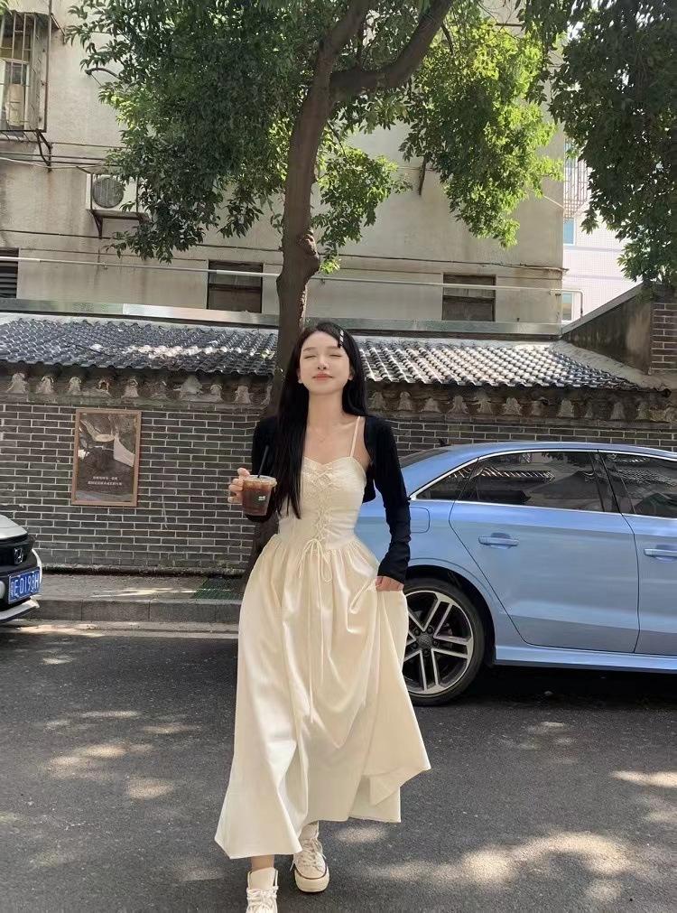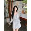 Elegante estilo suave estilo francés primavera y verano vestido con cinturón de cordones chal para mujer protección solar nicho conjunto de dos piezas